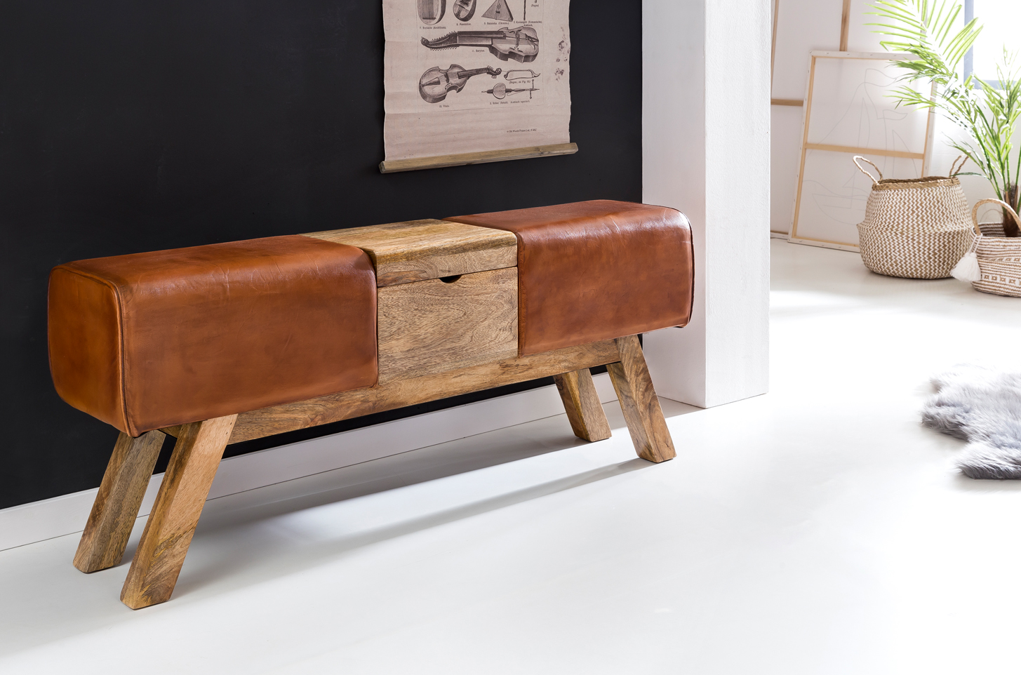 Produktinformationen "Turnbock Sitzbank Echtleder Braun mit Aufbewahrungsfach | 120 x 29 x 53 cm"