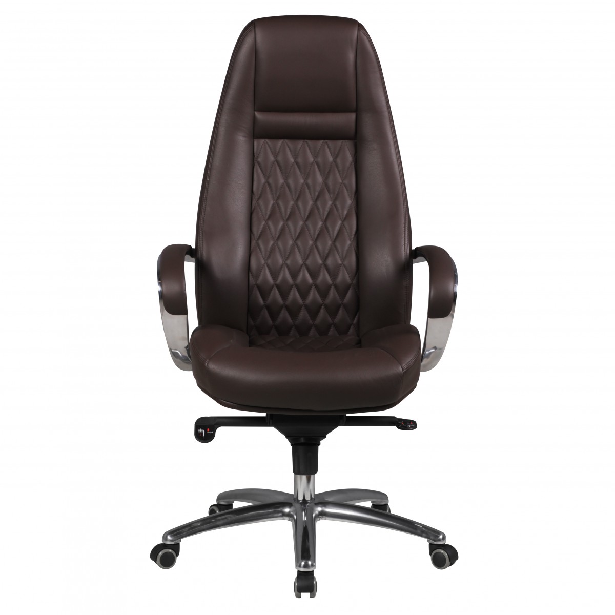 Bürostuhl AUSTIN Echt-Leder Braun | Aluminium Fußkreuz Silber | Höhe 120-130 cm | Breite 68 cm