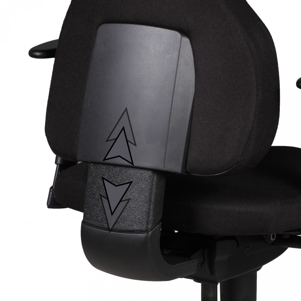 Die Rückenlehne ist 5-stufig höhenverstellbar (max. 5 cm), die 3-Punkt-Synchronmechanik erlaubt das Arretieren des Neigungswinkels in 3 Positionen für ergonomische Flexibilität. Die Sitztiefe ist um 5 cm verstellbar.