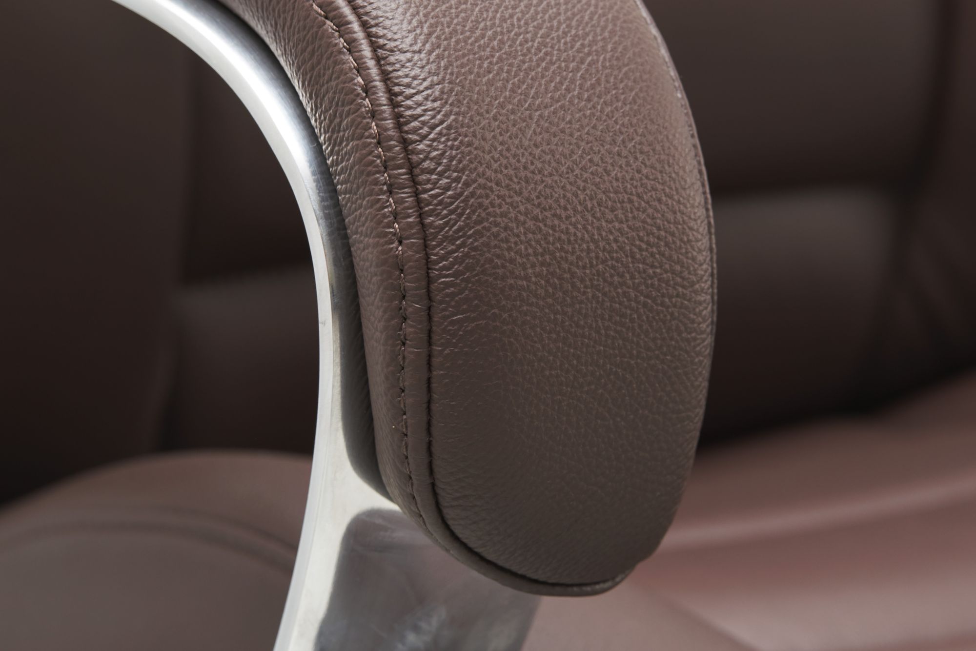 - Polierte Aluminium-Armlehnen mit weichen Kunstlederpolstern.