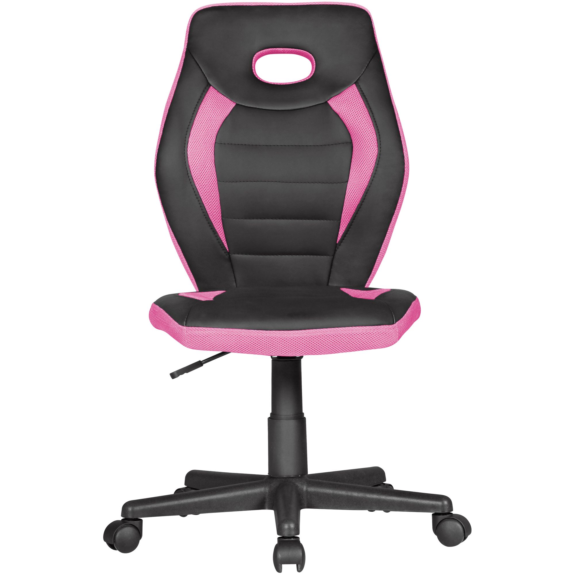 Der Kinderdrehstuhl LUAN kombiniert modernes Design und Funktionalität für Kinder ab 6 Jahren. Mit hoher Rückenlehne und integrierter Schulterstütze bietet er hohen Sitzkomfort. Der Bezug aus schwarzem Kunstleder und Mesh in Pink ist stilvoll und strapazierfähig. Sitzhöhe von 41 bis 53 cm höhenverstellbar, ideal mitwachsend.
