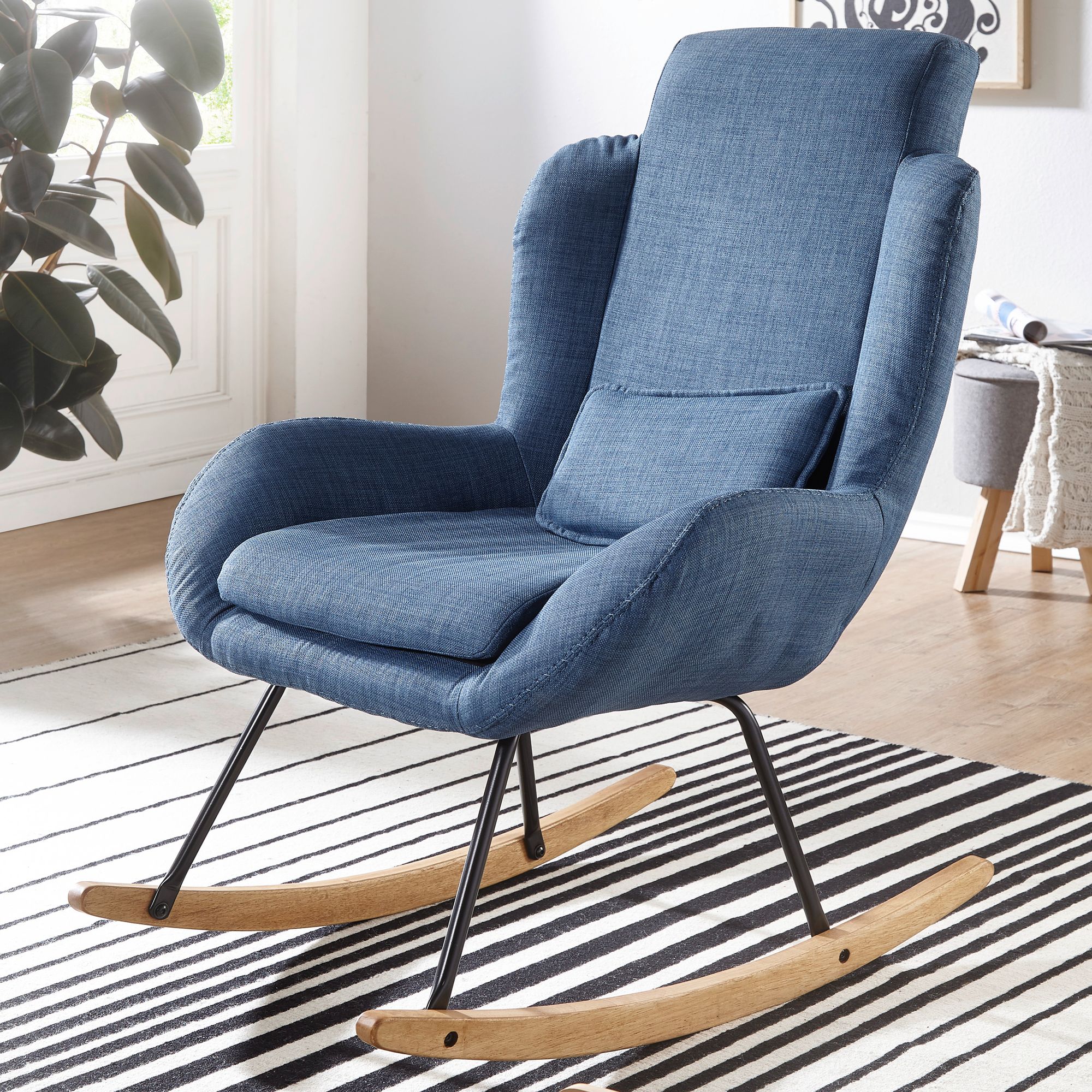 Wohnling schaukelstuhl capri relaxsessel blau schwingsessel stoff schwingstuhl