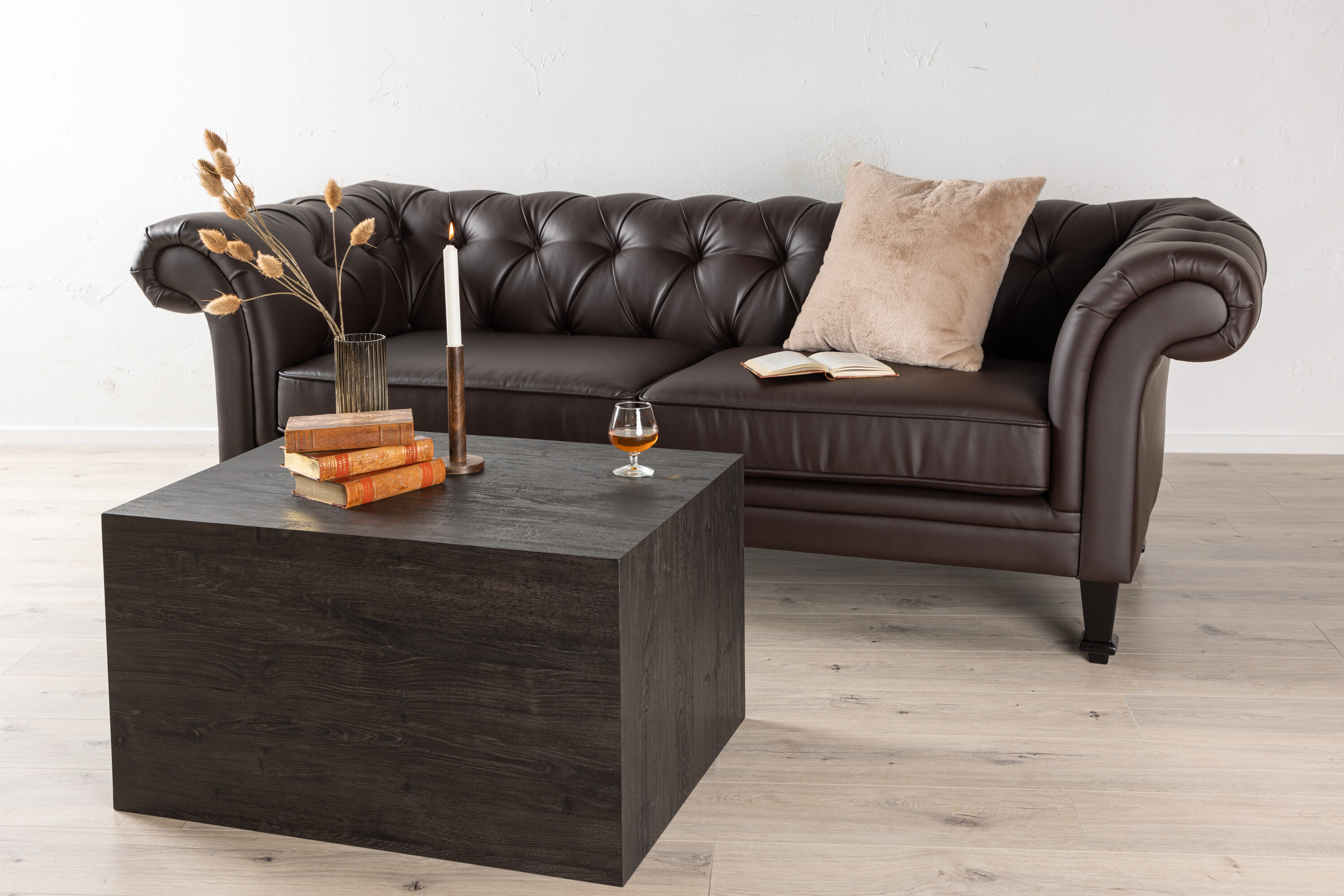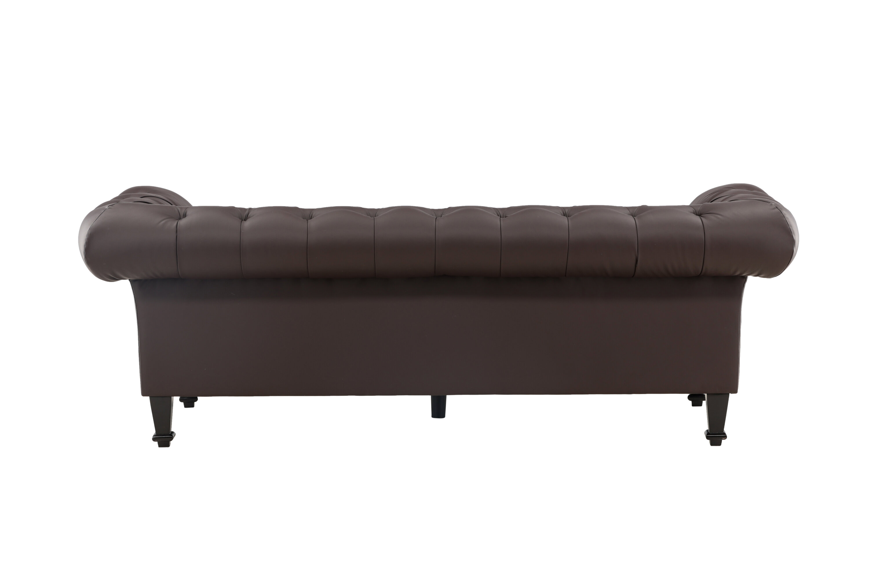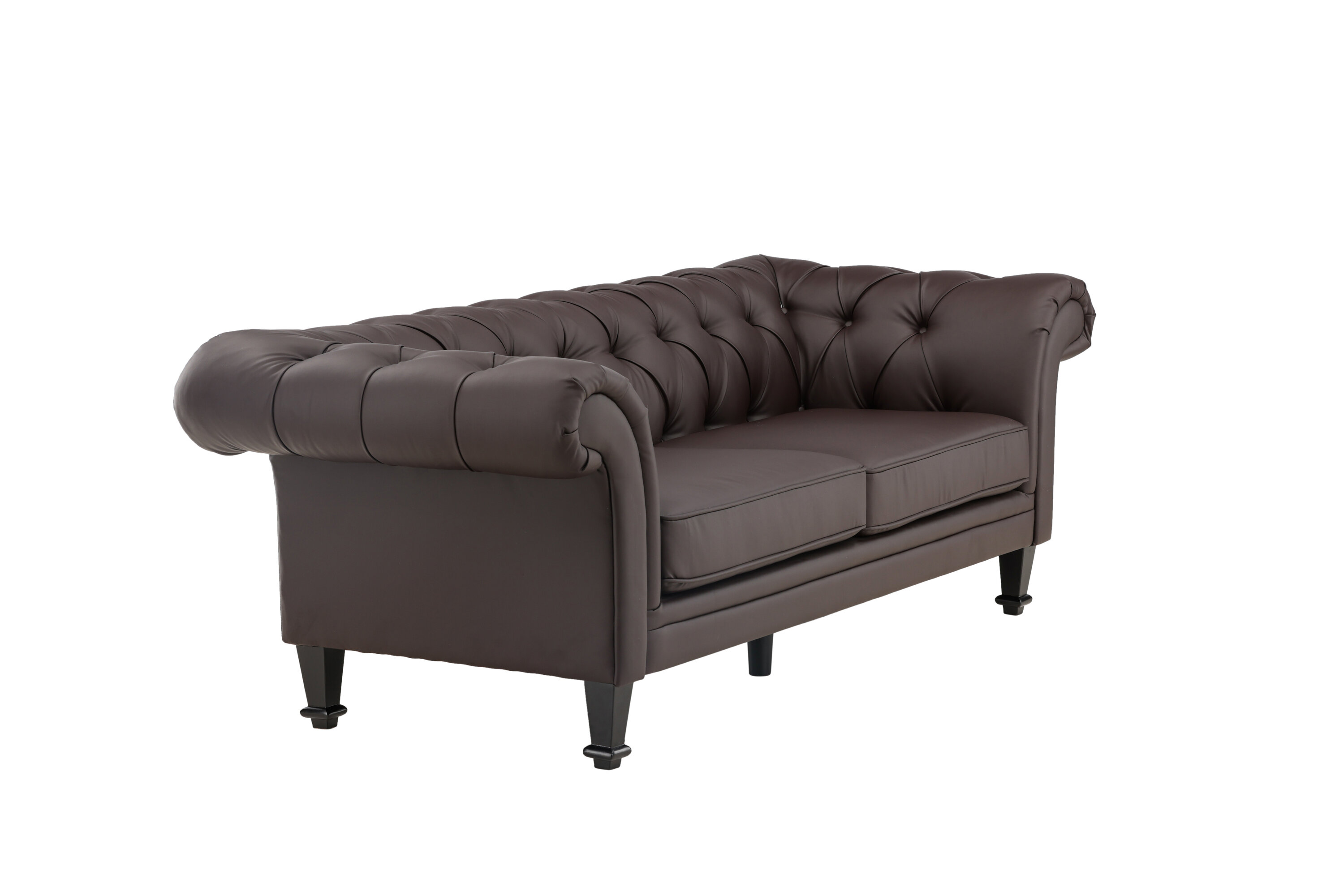Möblieren Sie Ihr Zuhause im nostalgischen Geist mit einem traditionellen Ledersofa aus der Etran-Serie! Dieses wunderbare Sofa mit 2-3 Sitzplätzen hat ein elegantes Design und ein historisches Design mit tief haftenden Knöpfen in der dunkelbraunen PU-Polsterung. Die Armlehnen lassen sich leicht anheben und winken schön über die Sofakante. Die Beine passen zum robusten Gesamtdesign und geben dem Sofa einen angemessenen Auftrieb, um den Staubsauger zu erleichtern. Dieses Sofa passt gut in das moderne Zuhause, aber auch wenn Sie ein wenig mehr pompöse Nostalgie einbringen möchten, die dieses Sofa wirklich repräsentiert. Außerdem müssen Sie keine Kompromisse zwischen Stil und Komfort eingehen, denn hier sitzen Sie bequem lange!
