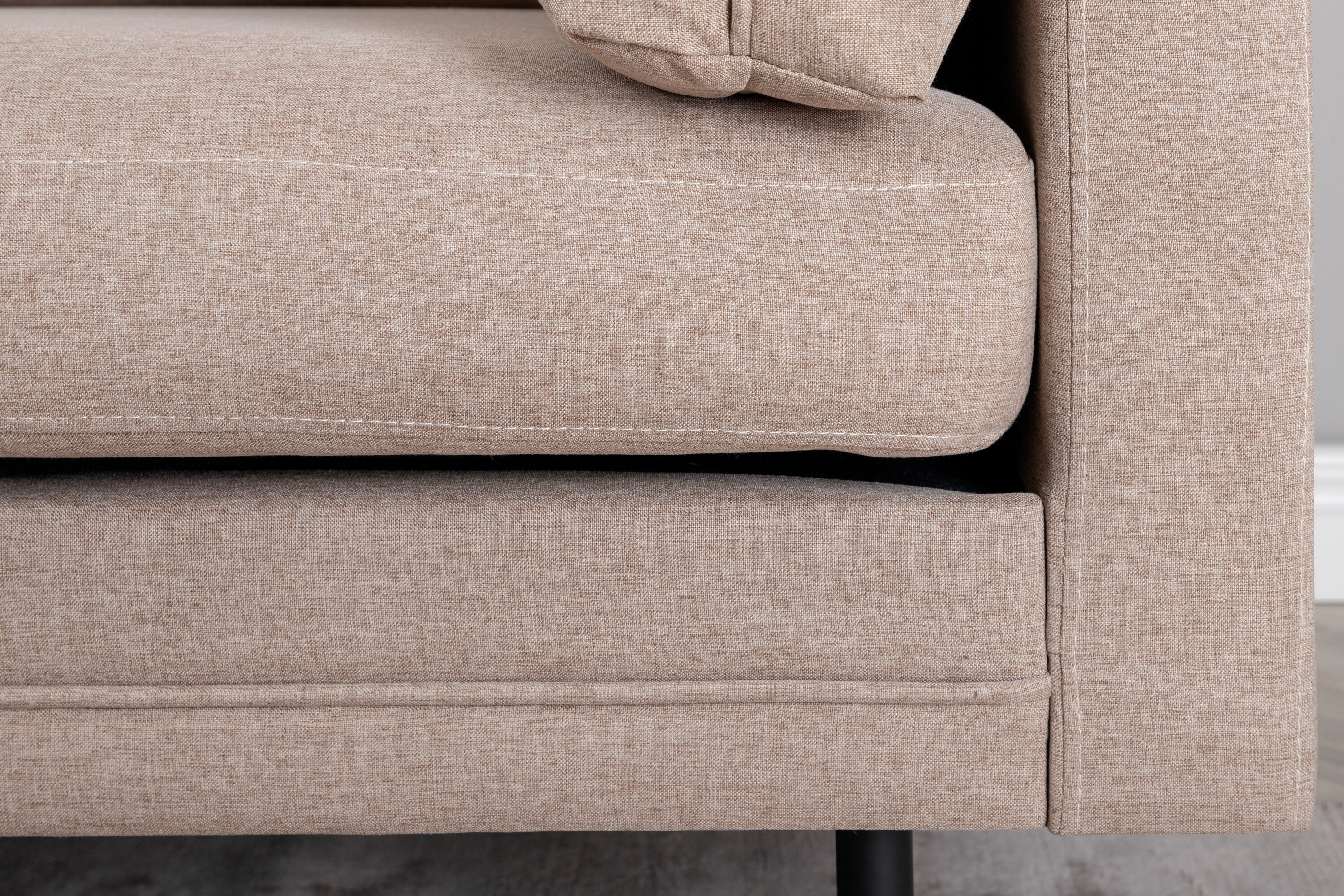 Dekorieren Sie Ihr Zuhause mit einem stilvollen 2-Sitzer-Sofa in beige Farbe und lassen Sie die Zeit hier zu einem der heutigen Highlights werden! Das Sofa Boom hebt mit seinem trendigen geraden Design, der eleganten Formensprache und dem guten Sitzkomfort Ihr Interieur auf die nächste Stufe. Die hohen Beine aus schwarzem Metall tragen zum stilvollen Eindruck bei und die Tiefe des Sofas lädt zu langen und bequemen Sofa-Momenten ein. Sofa Maße: Breite: 201 cm, Tiefe: 53 cm, Höhe: 90 cm.