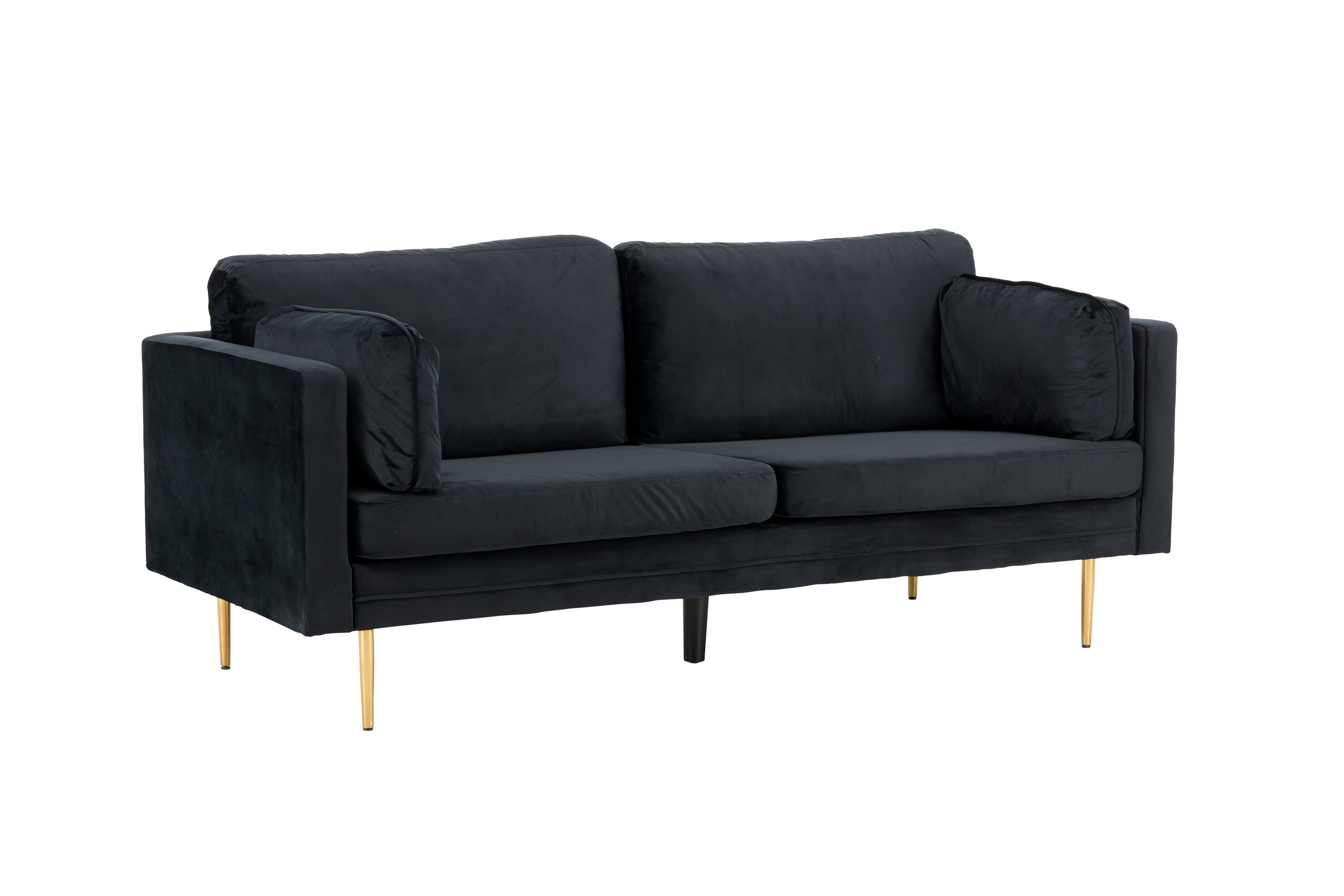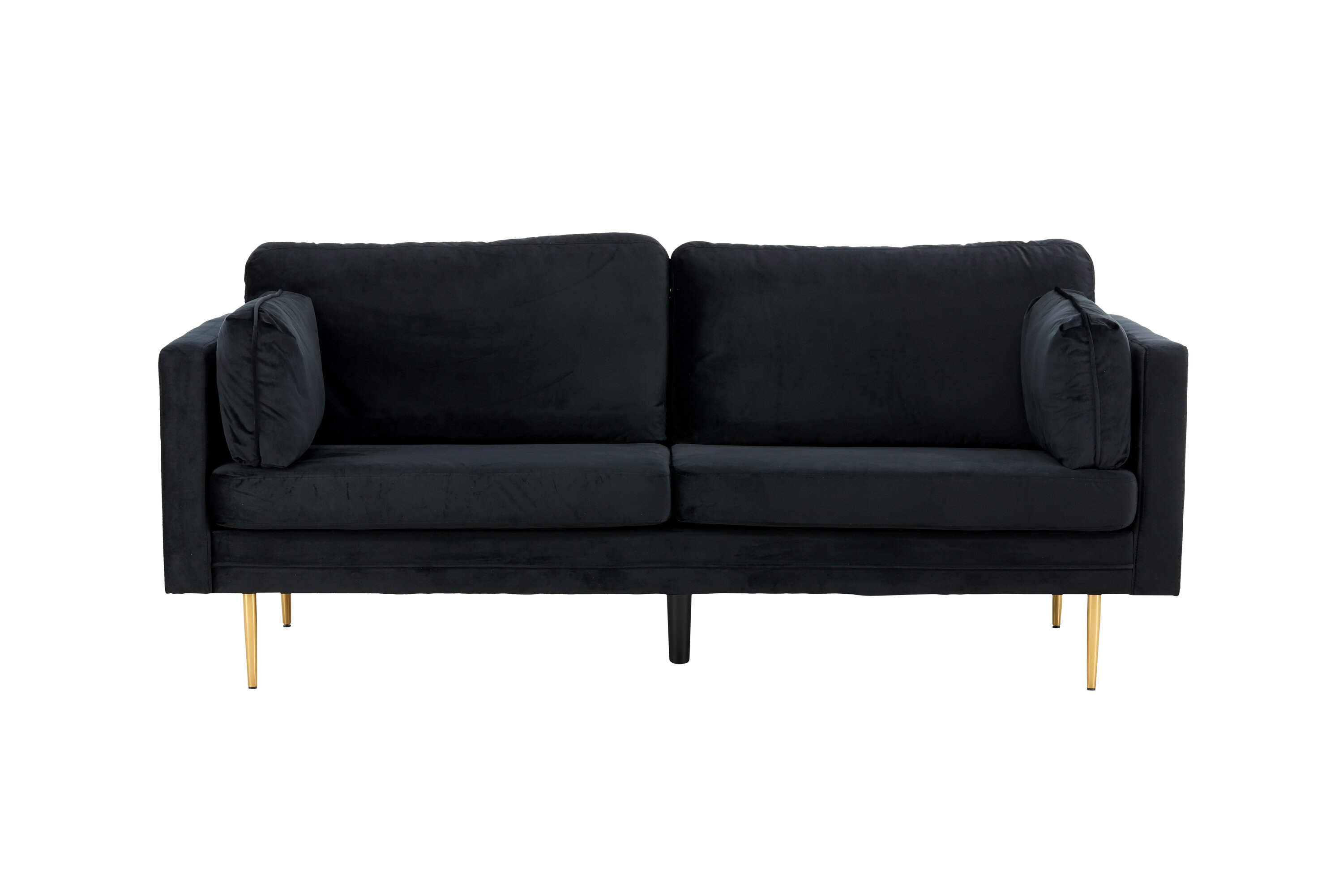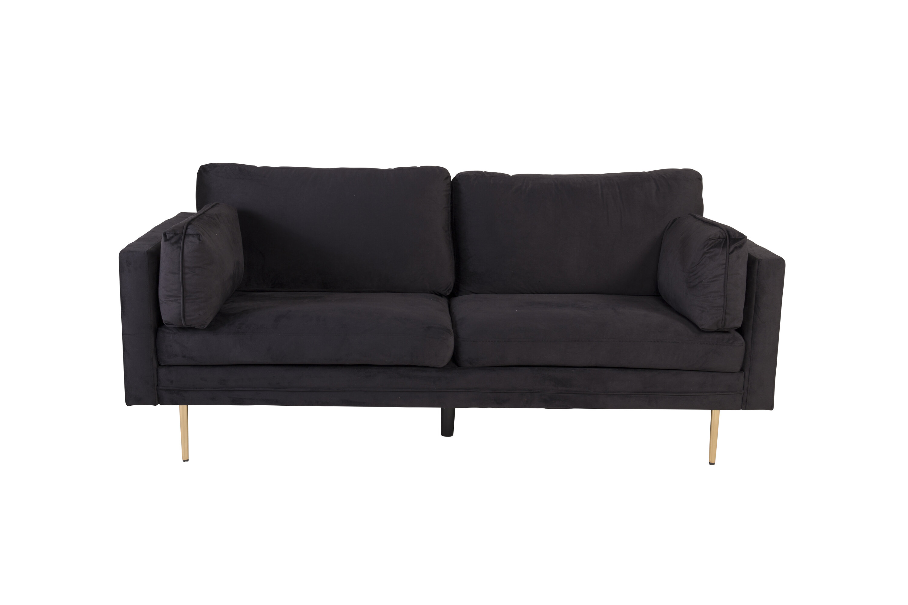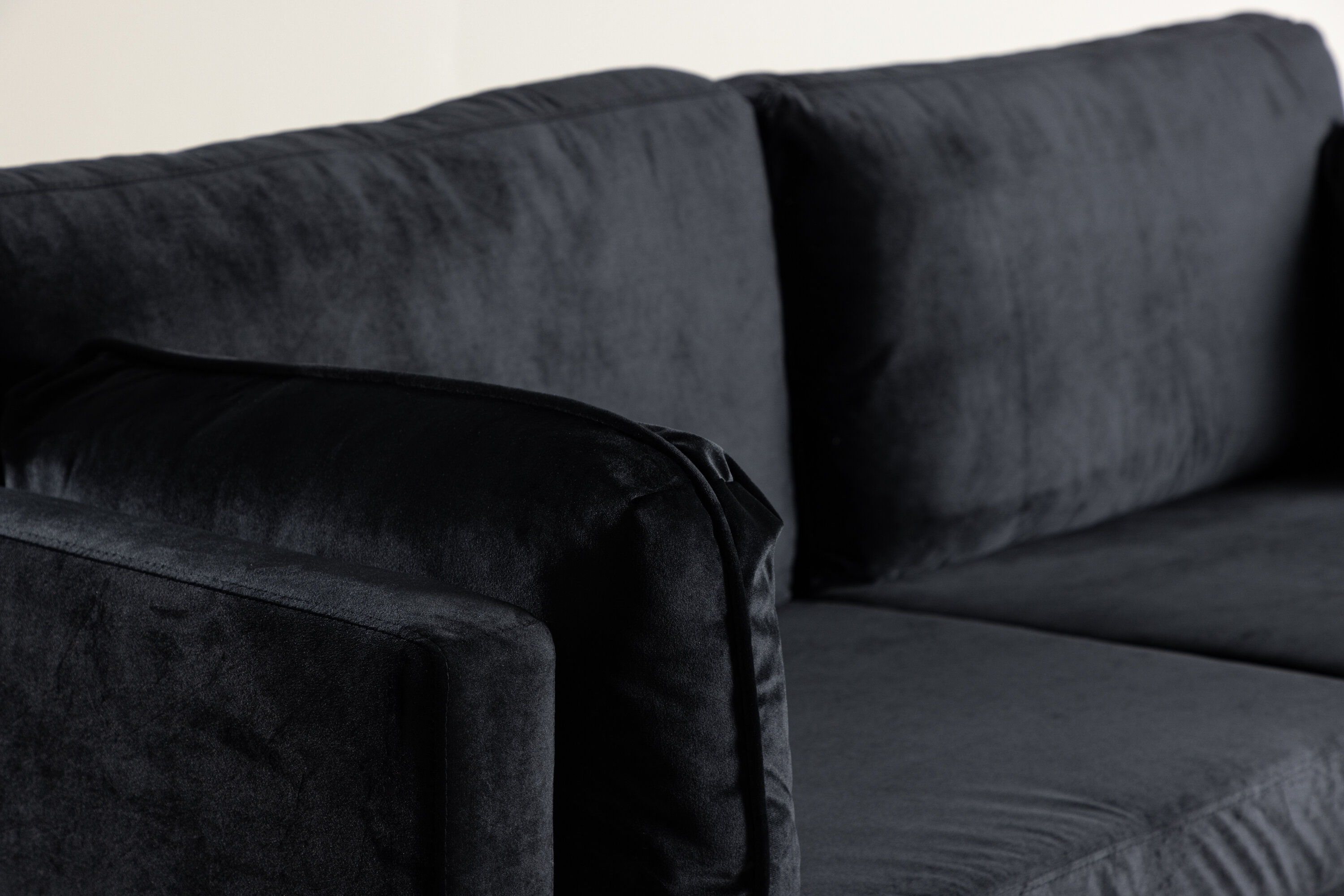 Die Boom Sofa-Serie bietet sowohl elegantes Design als auch hohen Sitzkomfort. Dekorieren Sie Ihr Zuhause mit diesem pompösen Sofa mit 2-3 Sitzplätzen in frecher schwarzer Samtkleidung und verleihen Sie dem Raum ein luxuriöses Gefühl. Das Design ist zeitlos mit geraden nordischen Formen und stilvollen schmalen Metallbeinen. Ein moderner Sofatraum ganz einfach!