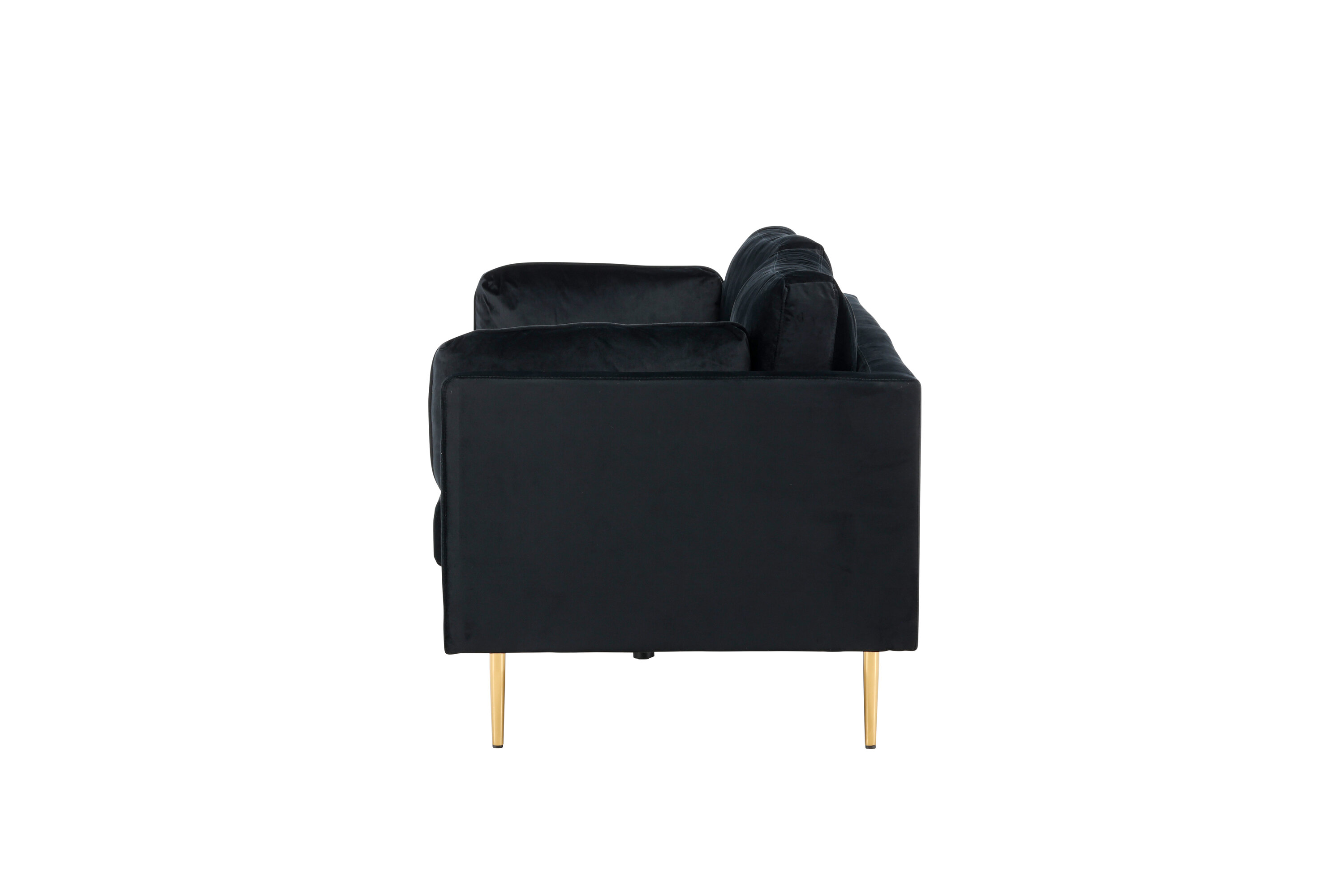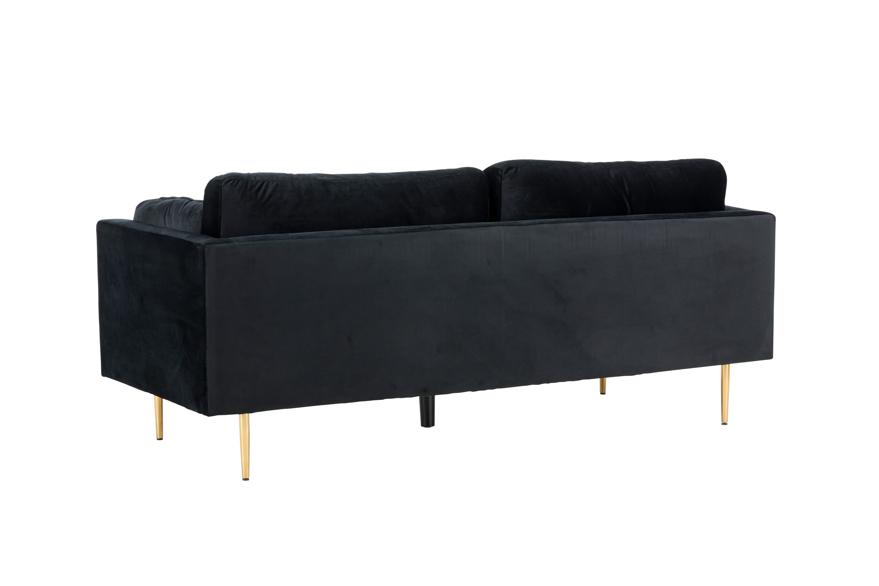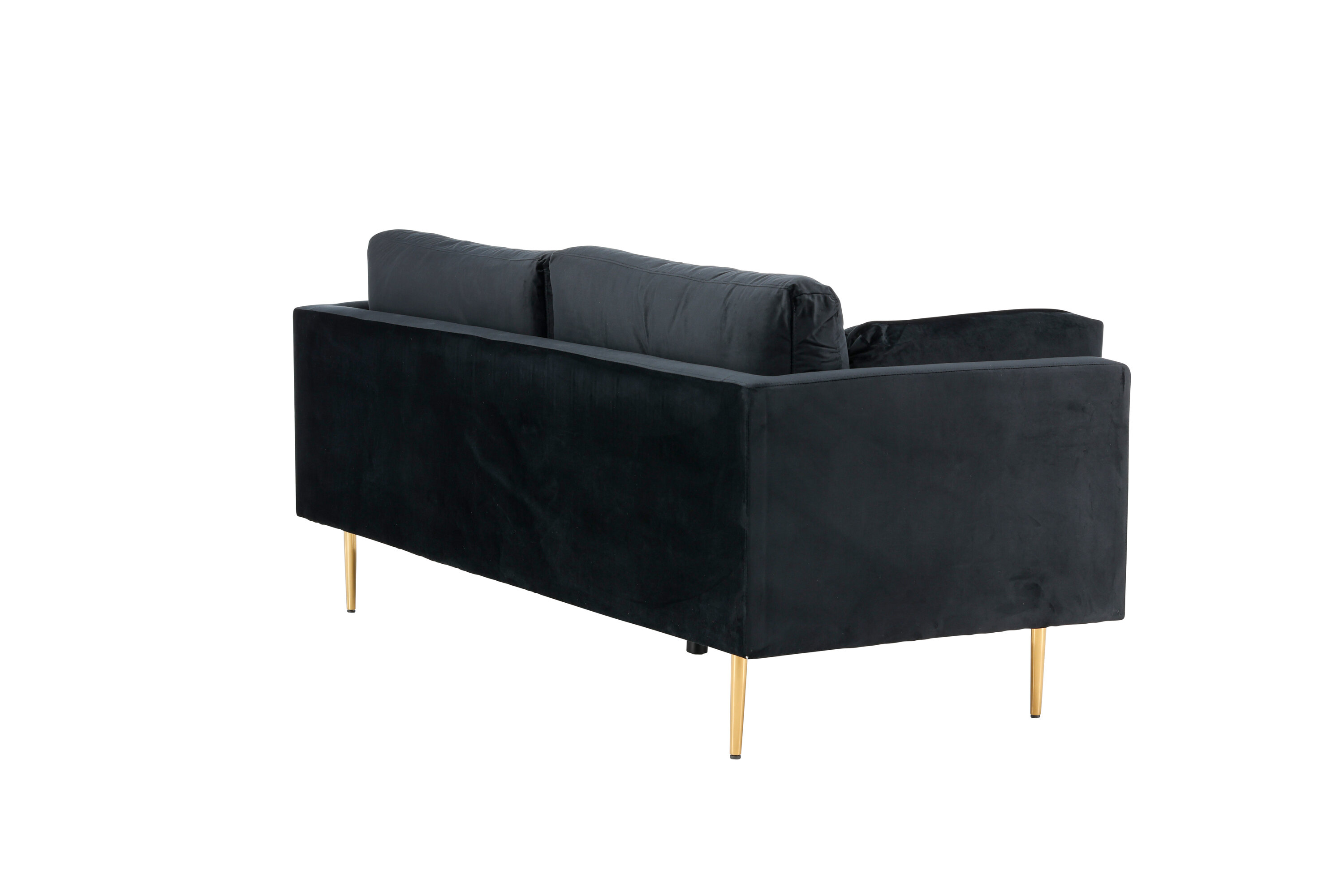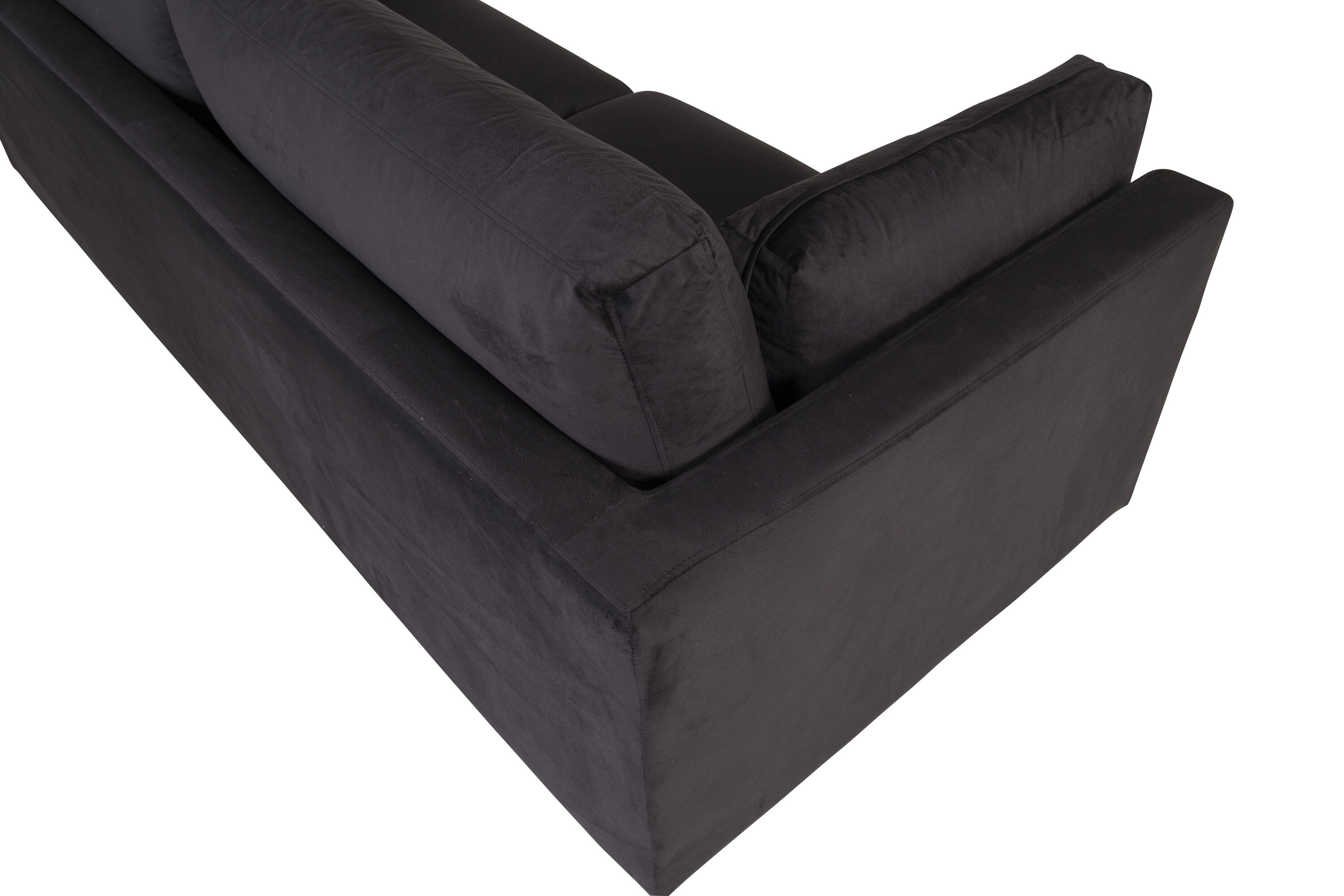 Die Boom Sofa-Serie bietet sowohl elegantes Design als auch hohen Sitzkomfort. Dekorieren Sie Ihr Zuhause mit diesem pompösen Sofa mit 2-3 Sitzplätzen in frecher schwarzer Samtkleidung und verleihen Sie dem Raum ein luxuriöses Gefühl. Das Design ist zeitlos mit geraden nordischen Formen und stilvollen schmalen Metallbeinen. Ein moderner Sofatraum ganz einfach!