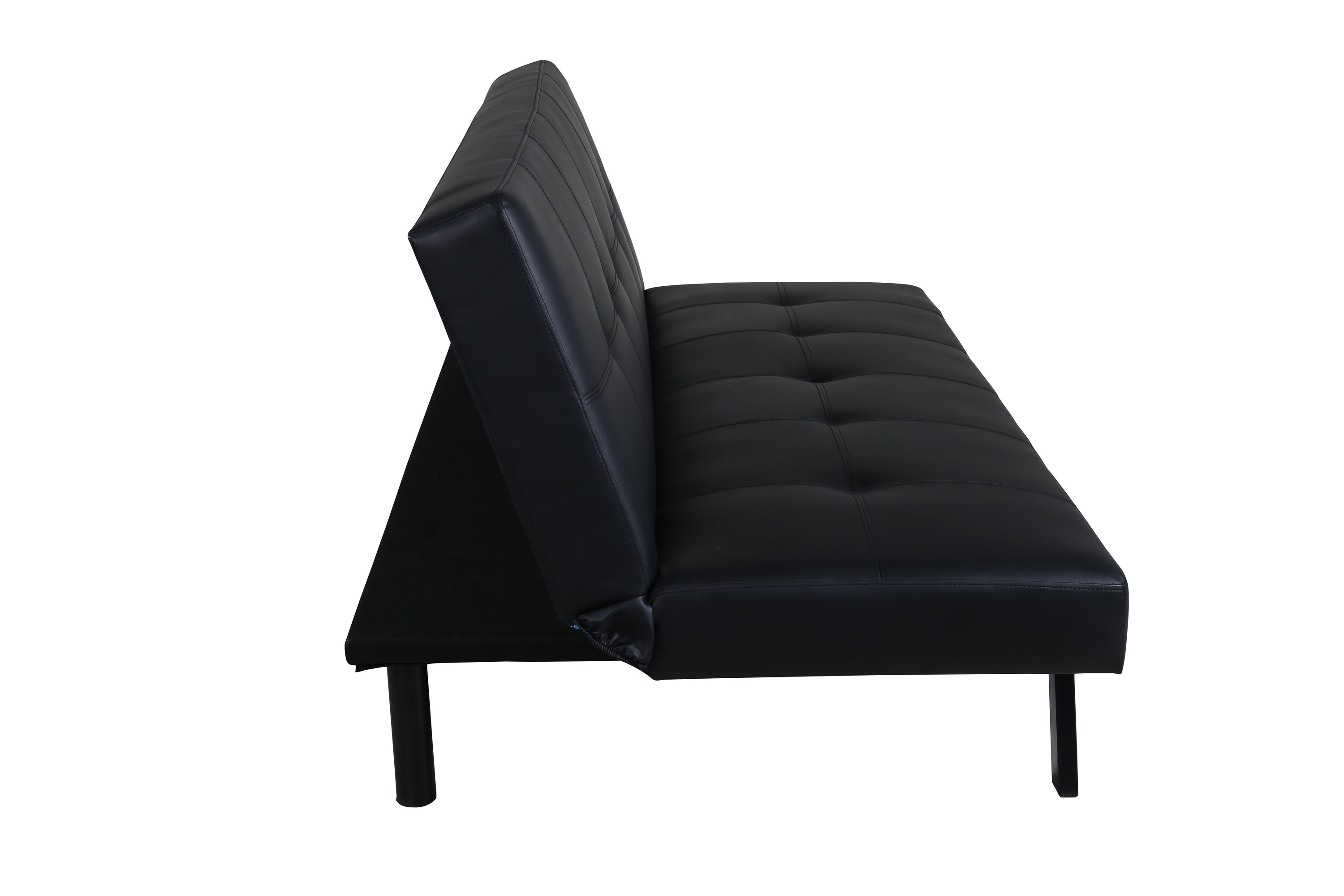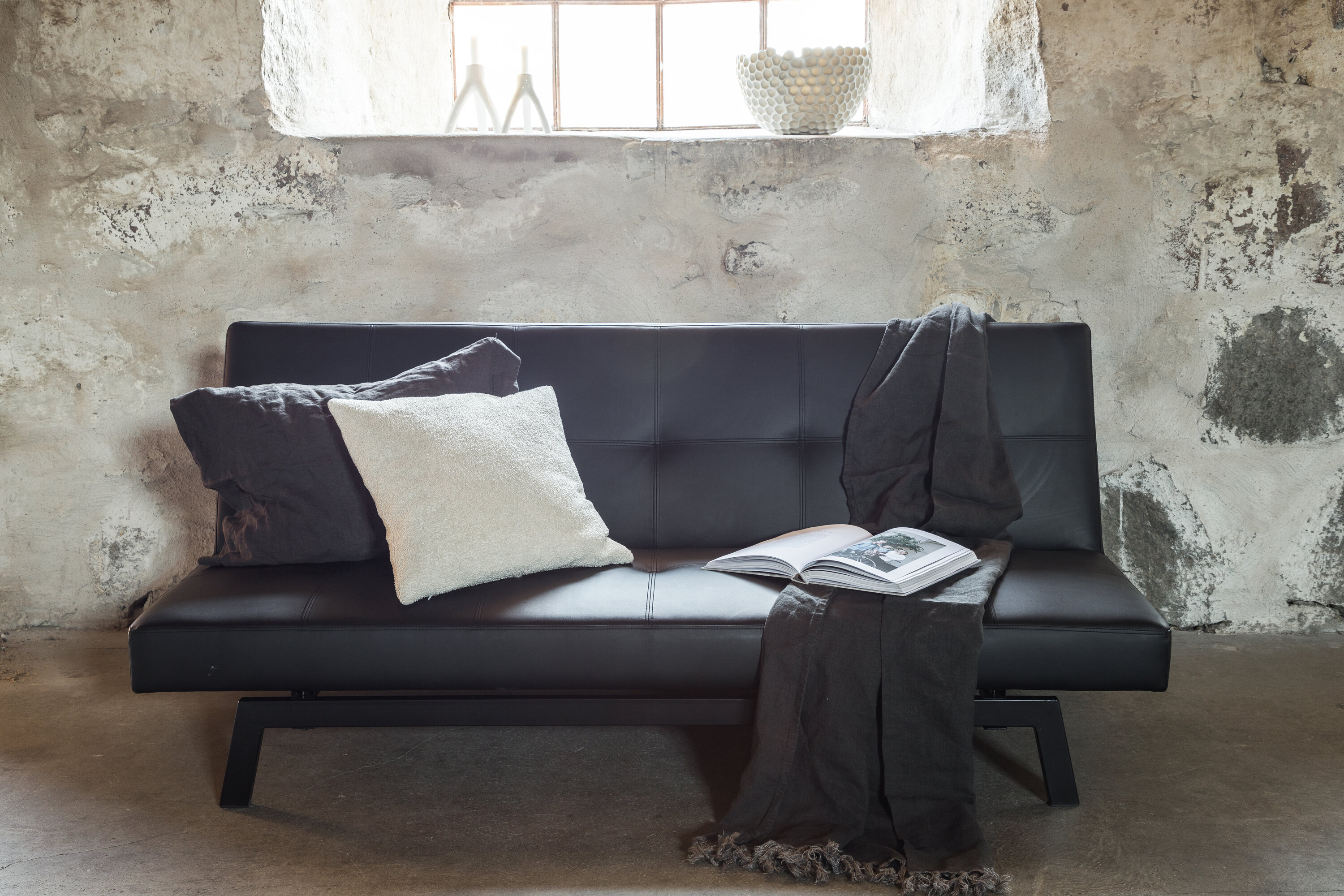 Einfach und reibungslos verwandeln Sie Ihr trendiges 2-3sit Sofa in eine bequeme Chaiselongue oder ein schönes Doppelbett - perfekt für gemütliche Filmabende oder Übernachtungsgäste! Bodil Schlafsofa hat ein gut durchdachtes Design mit geraden nordischen Formen, einfachem Design und dekorativem, tief verschmutztem Muster, das ein modebewusstes Ganzes im Wohnzimmer schafft. Aus strapazierfähigem Kunstleder in schwarzer Farbe und Holzbeinen. Eine clevere und ordentliche Ergänzung für zu Hause.