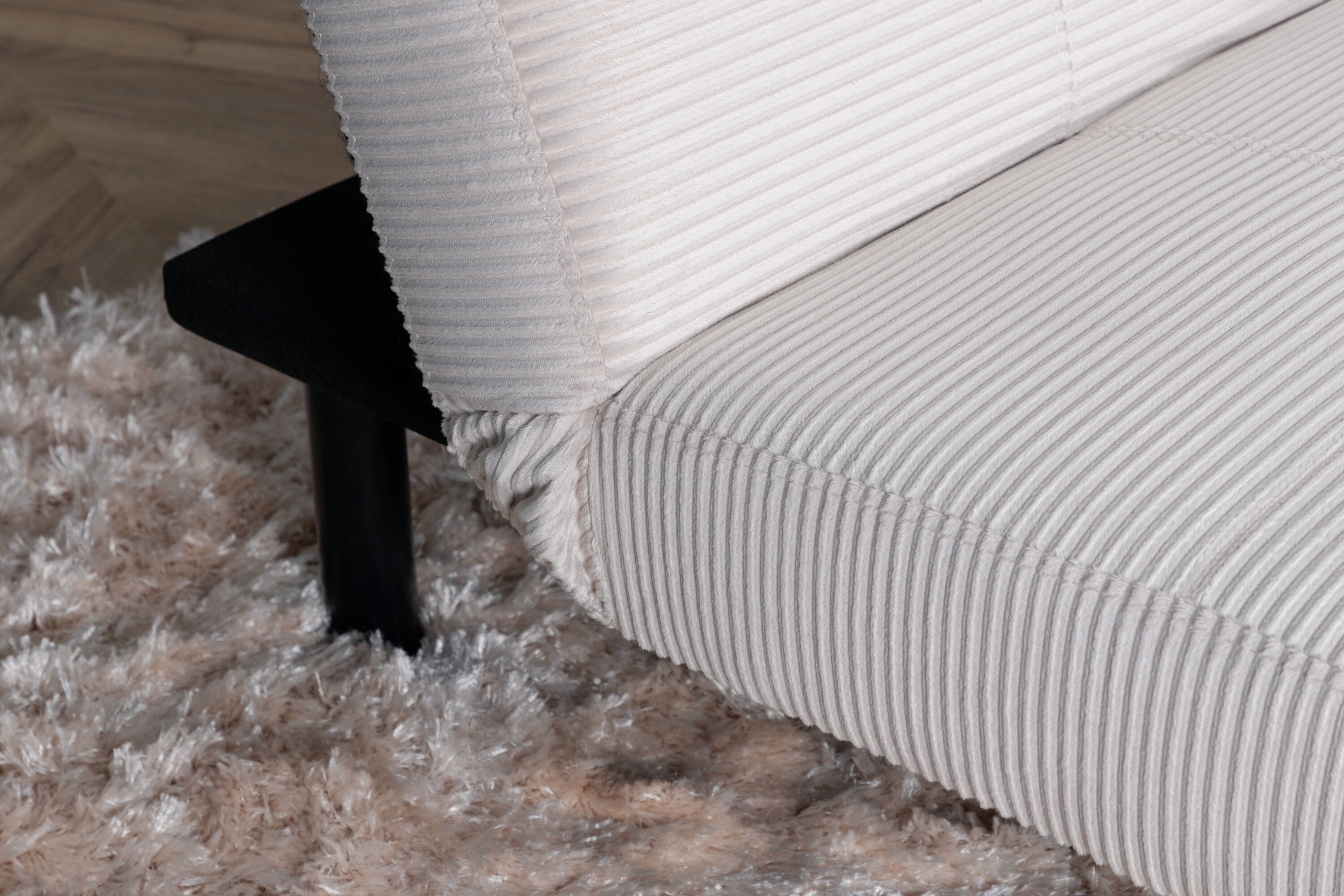 Dekorieren Sie Ihr Zuhause modebewusst und elegant mit einem Schlafsofa aus der Bodil-Serie. Einfach und reibungslos verwandeln Sie Ihr 2-3Sit-Sofa in eine bequeme Chaiselongue oder ein schönes Doppelbett - perfekt für gemütliche Filmabende oder Übernachtungsgäste! Das durchdachte Design mit geraden nordischen Formen und schlichtem Design schafft ein stilvolles Ganzes im Wohnzimmer. Aus strapazierfähigem Manchester-Stoff in weißer Farbe und schwarzen Holzbeinen. Einfach eine smarte Ergänzung für zu Hause.