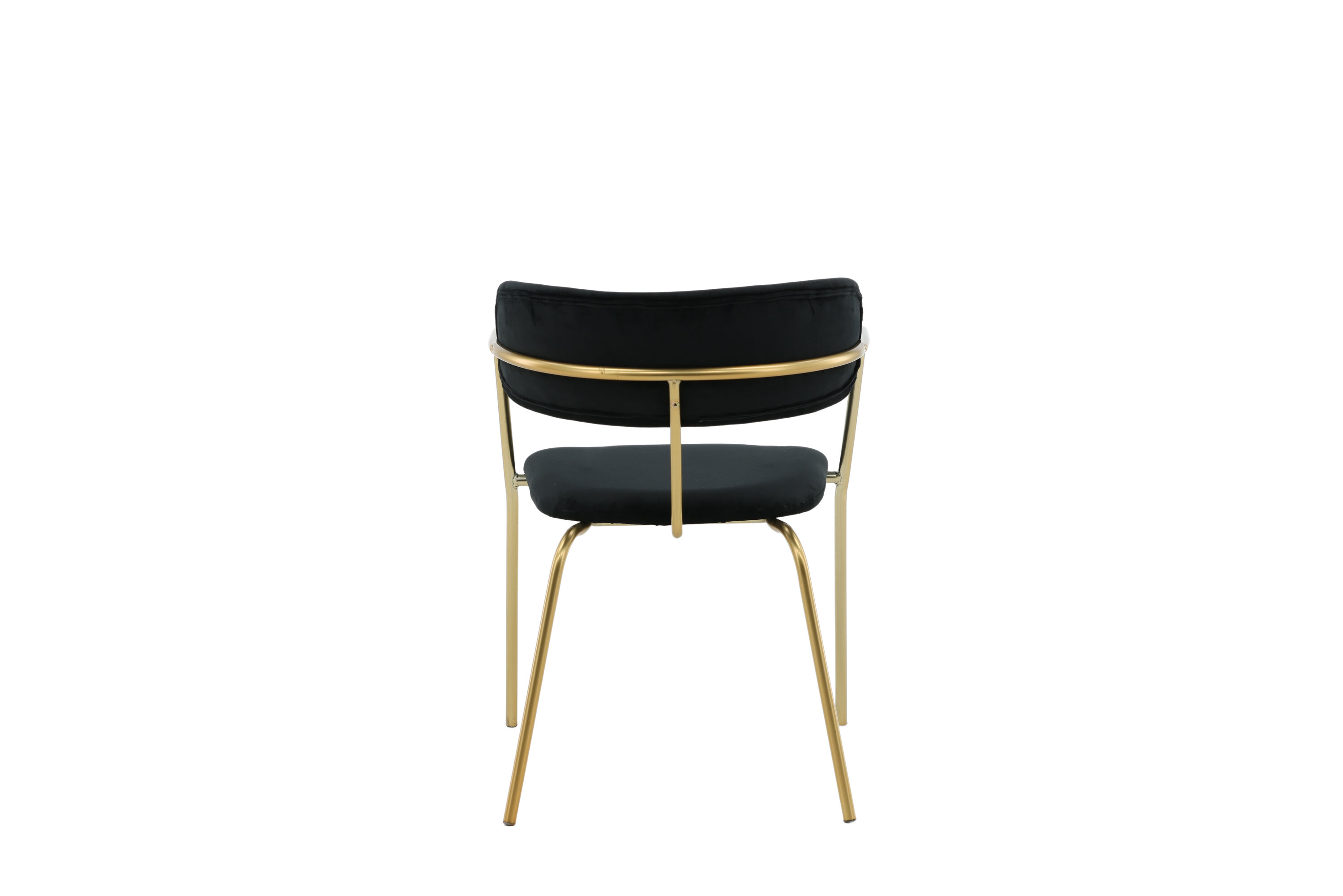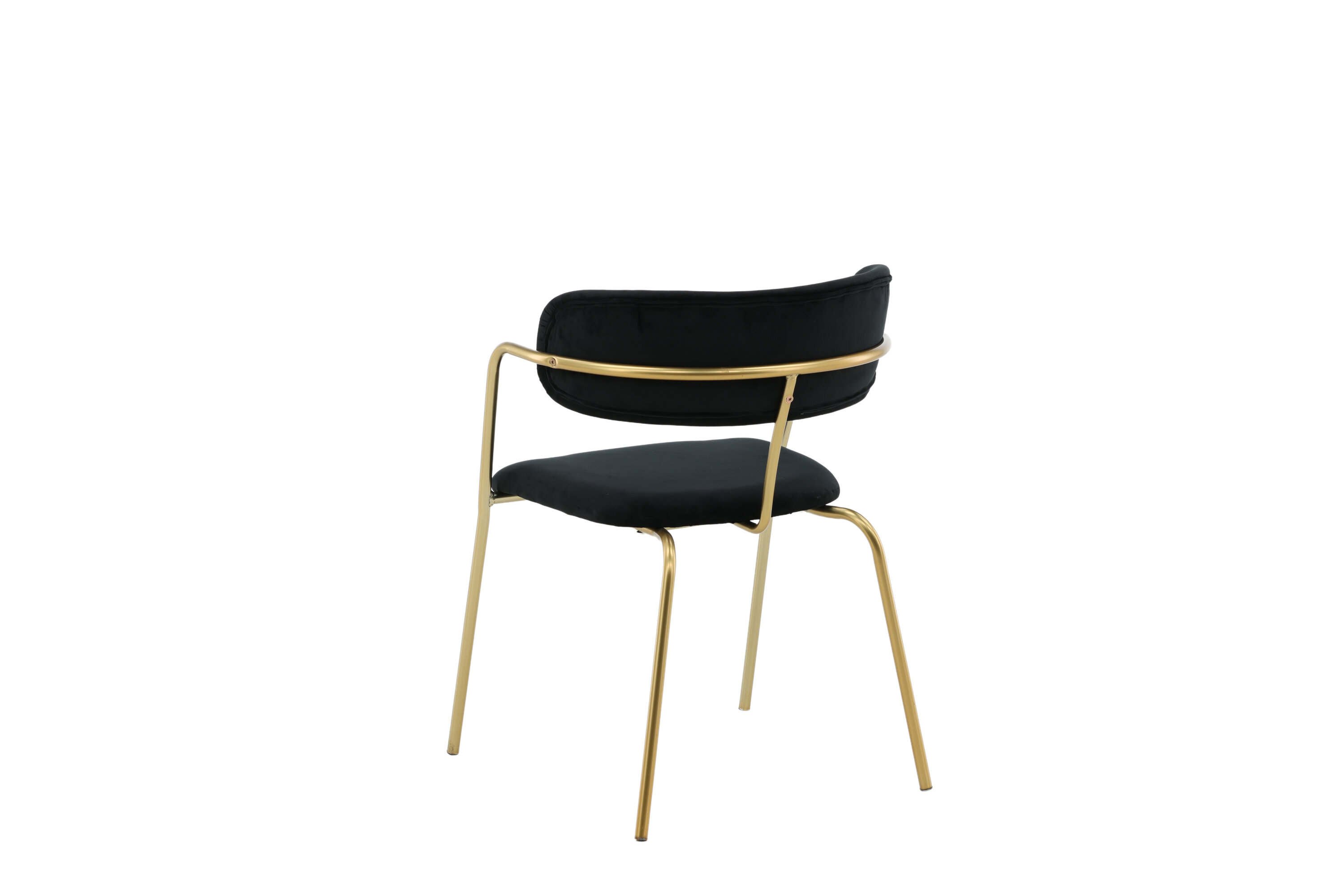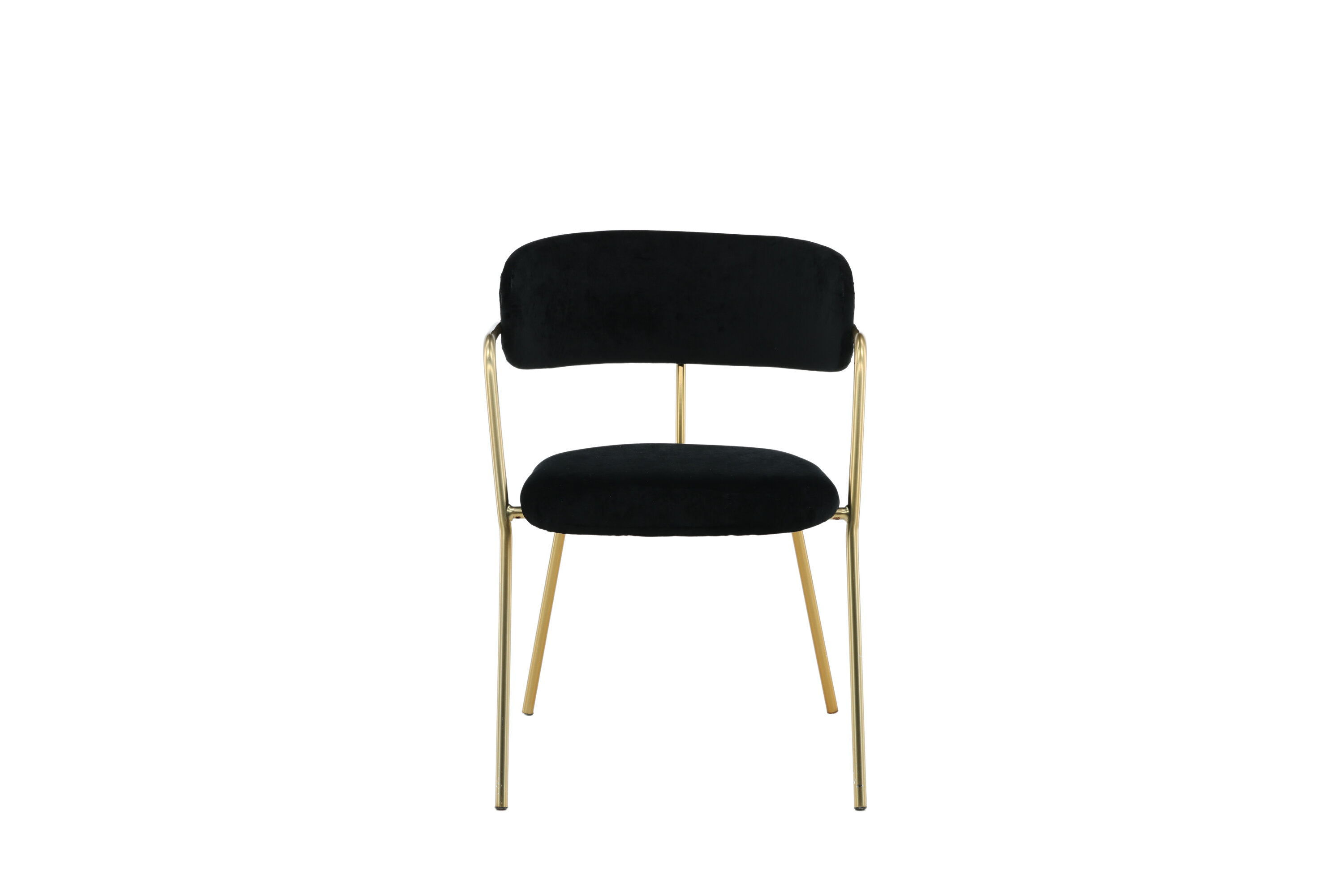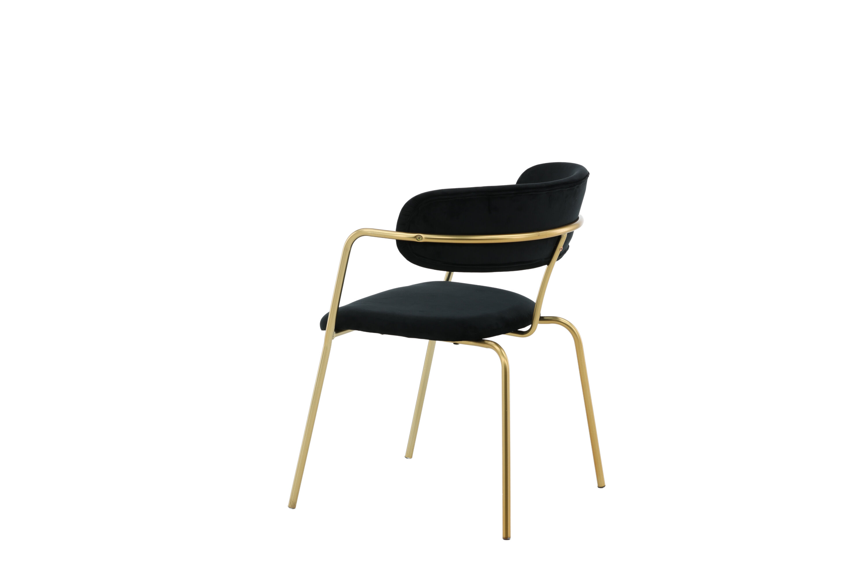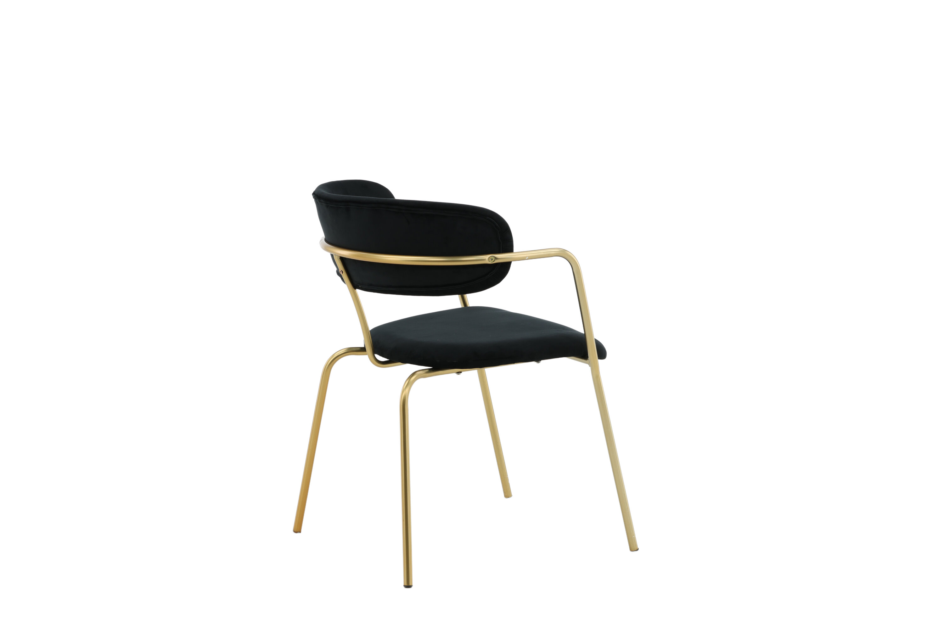 Kreieren Sie einen trendigen Hingucker im Herzen des Hauses! Dieser stilvolle Esszimmerstuhl aus der Arrow-Serie verfügt über einen modernen Rahmen mit Beinen und integrierten Armlehnen aus Messingfolienmetall. Die Rückenlehne ist im gleichen Material wie der Sitz leicht abgerundet, schwarzer Samtstoff gestoppt. Heben Sie die Einrichtung in Ihrem Zuhause auf das nächste Level! Leichtere Montage ist erforderlich.
