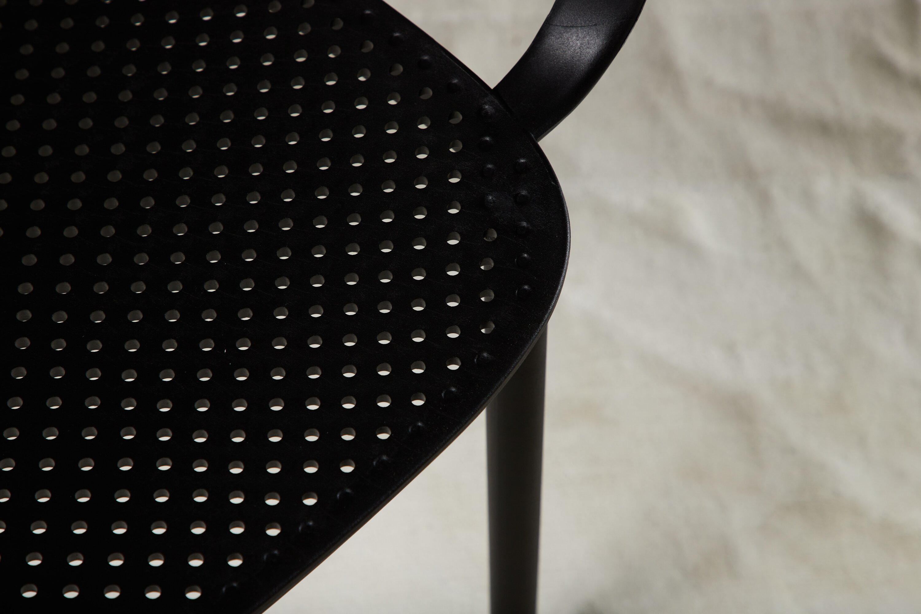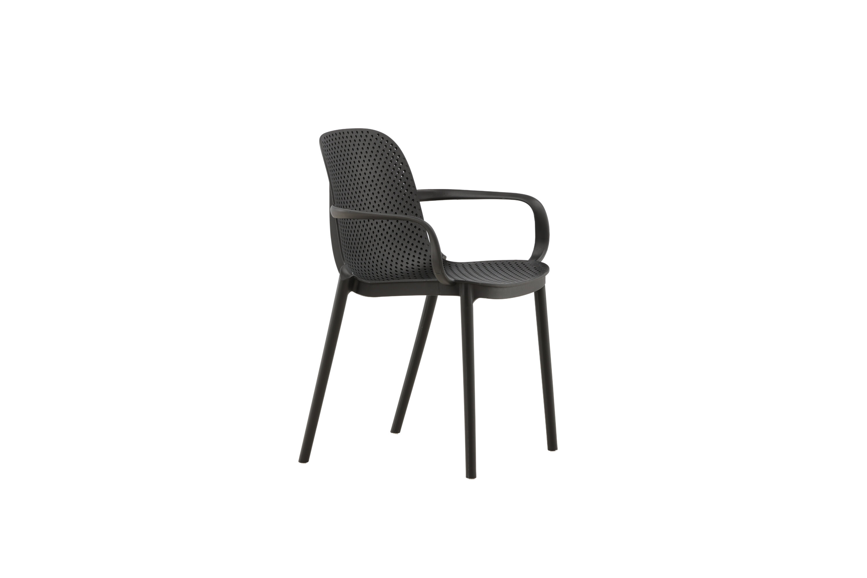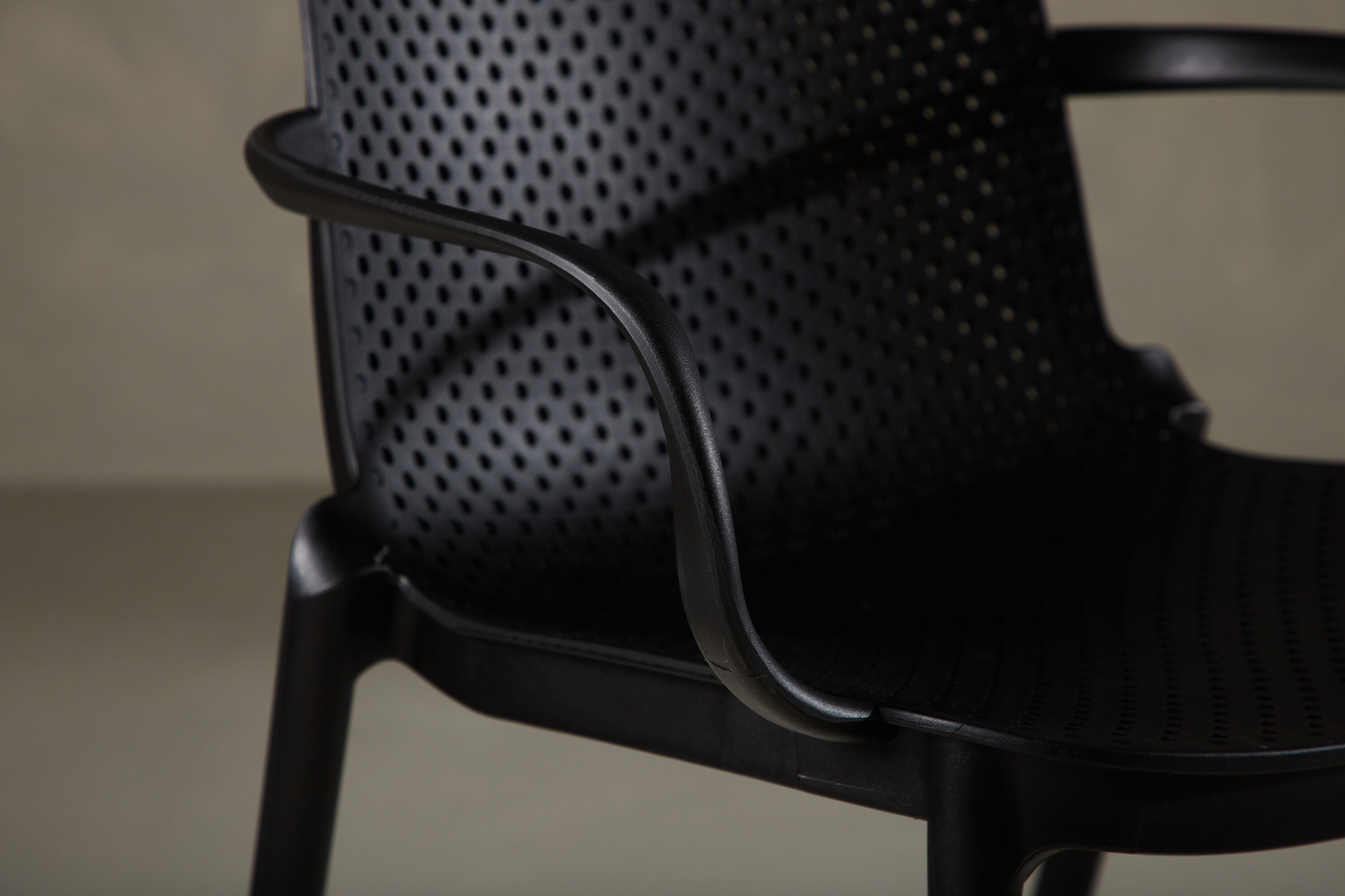 Ein eleganter Esszimmerstuhl mit strapazierfähigem Material und flexiblem Design! Dieser Esszimmerstuhl stammt aus der Baltimore-Serie und gehört zur Venture Home-Kollektion. Konsequent aus schwarzem Kunststoff, der pflegeleicht ist und Ihnen einen Esszimmerstuhl bietet, der die Zeit überdauert. Das Design ist auffällig mit geraden nordischen Formen und integrierten Armlehnen für zusätzlichen Komfort. Kombinieren Sie es mit einem stilvollen Esstisch, um ein komplettes Ess-Set für zukünftige Mahlzeiten zu erstellen!
