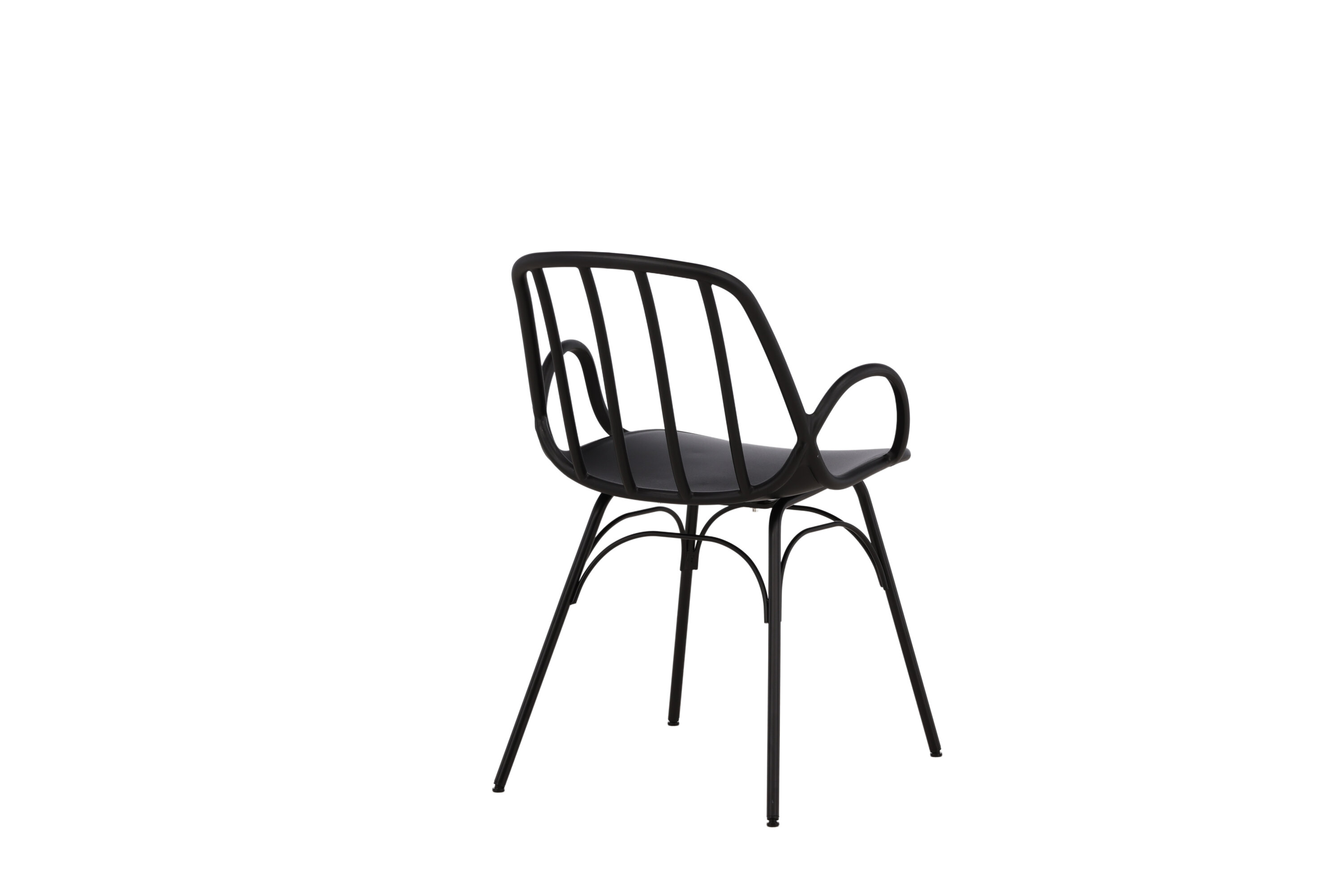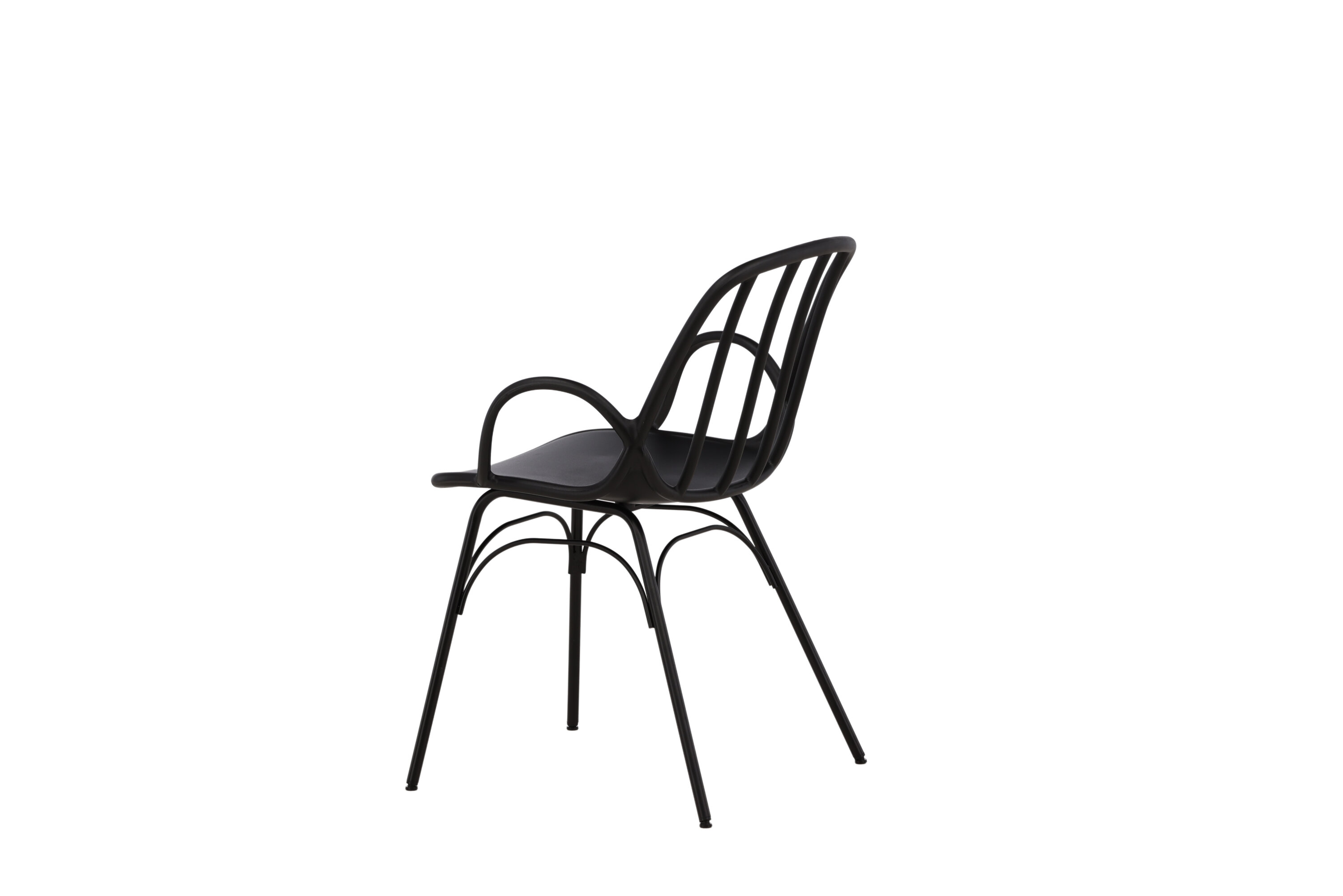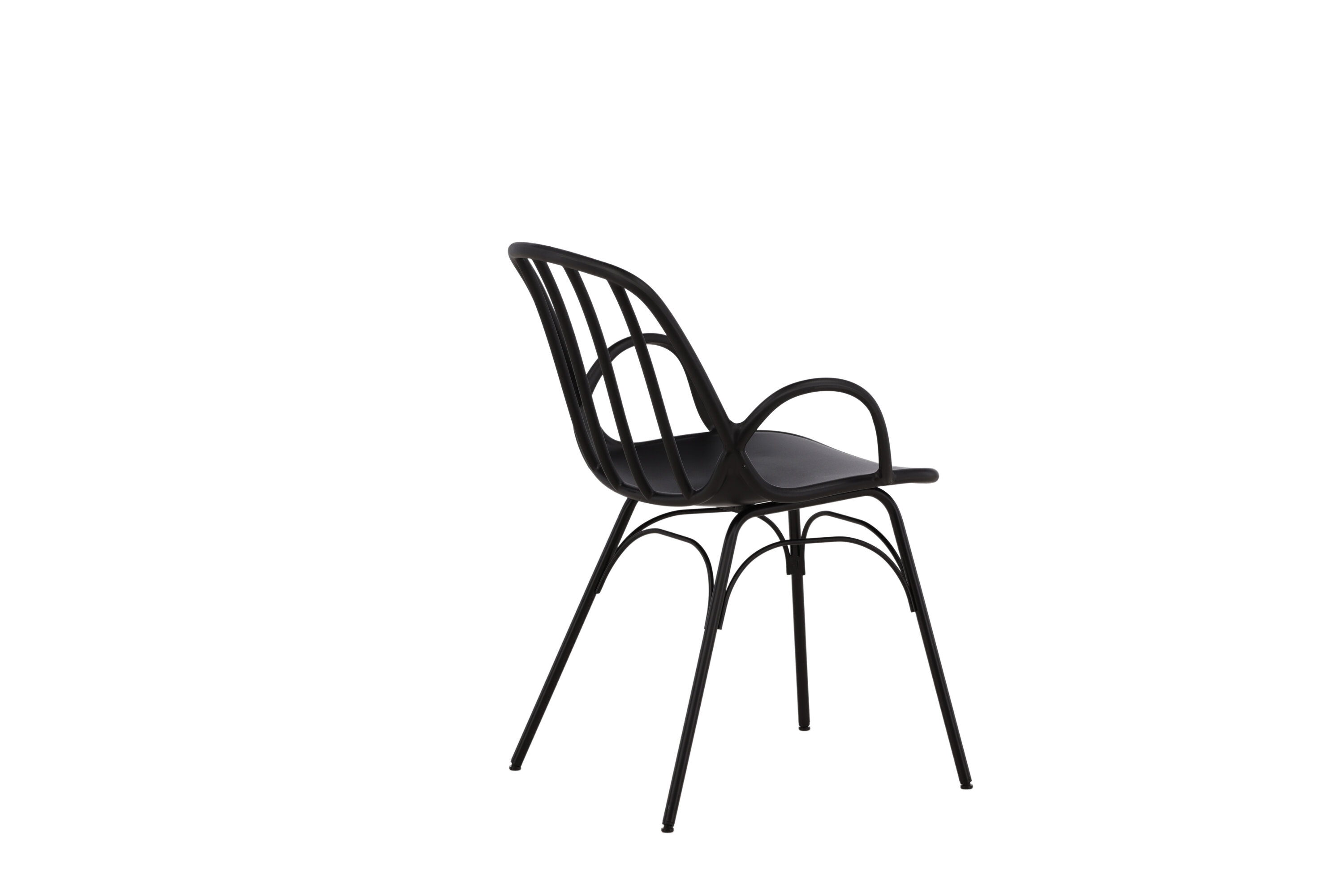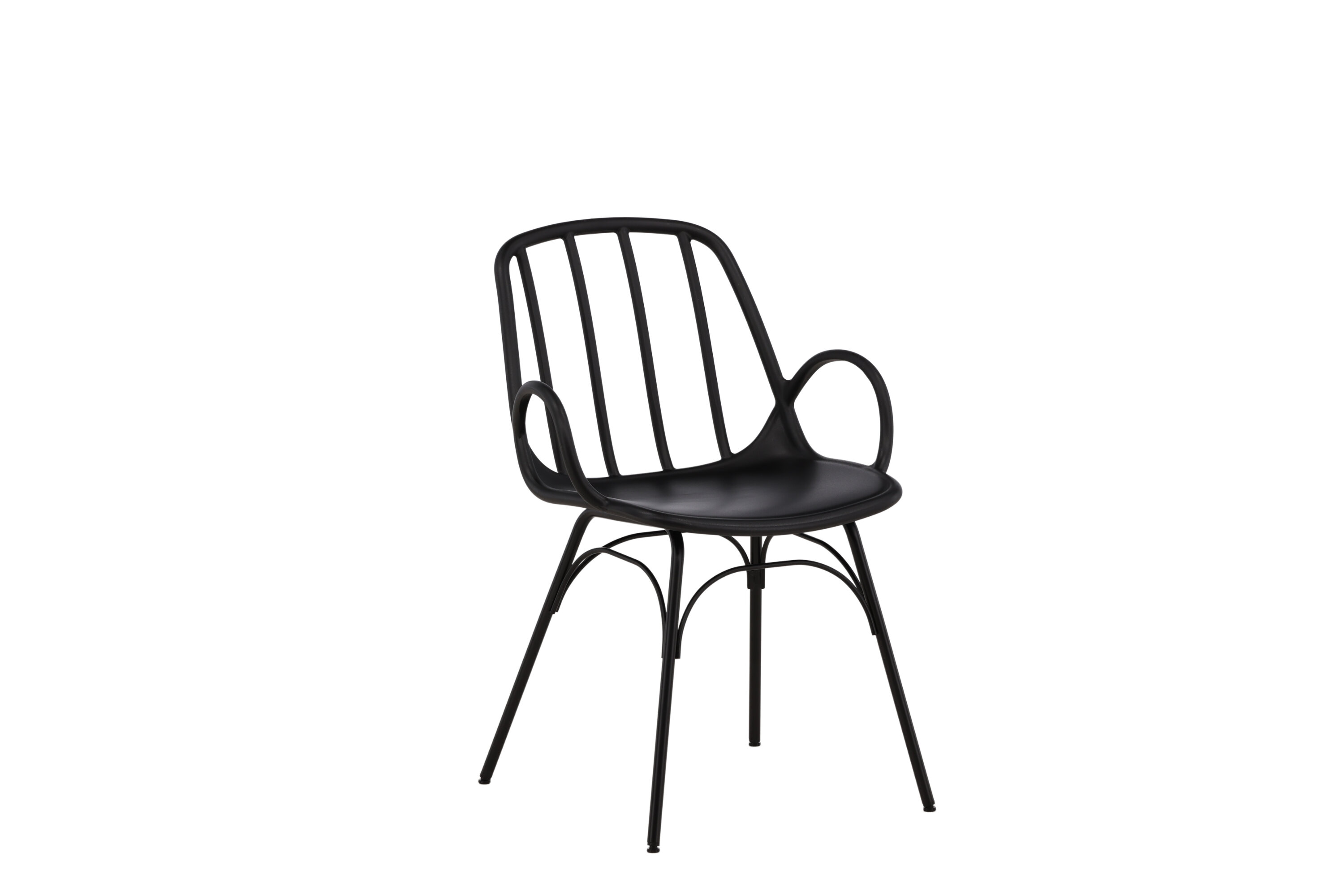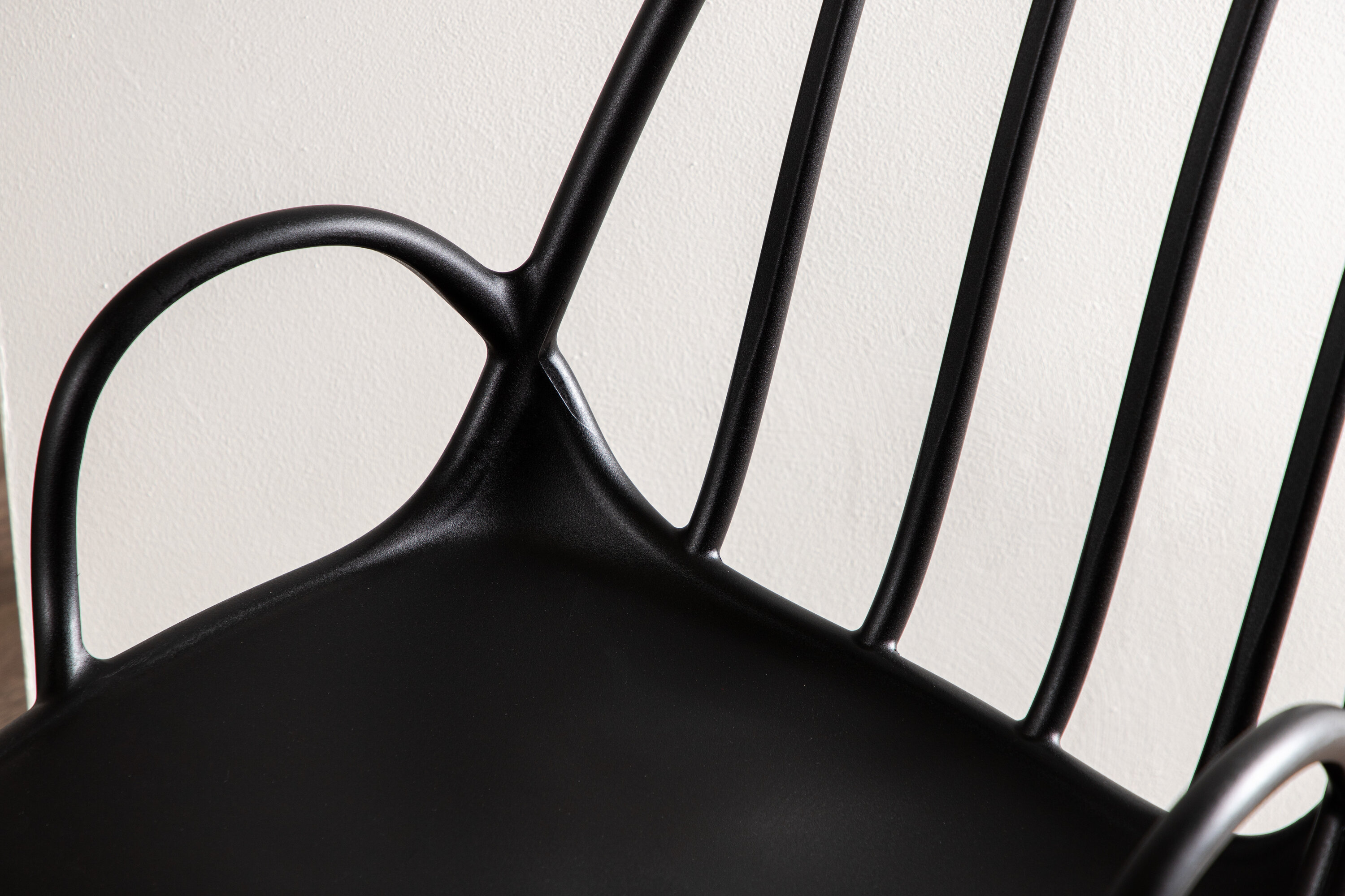 Dyrön - Ein schwarzer Esszimmerstuhl, der eine persönliche und modebewusste Atmosphäre in Ihrem Zuhause schafft! Dieser schöne Esszimmerstuhl ist so elegant wie praktisch, aus schwarzem Kunststoff und Stahl. Der Sitz verfügt über integrierte Armlehnen und ein geripptes Design im sanft abgerundeten Rücken. Die Stuhlbeine sind elegant schlank und im skandinavischen Design sanft ausgestellt. Umgeben Sie einen passenden Esstisch, um ein komplettes Ess-Set zu kreieren, mit dem Sie Ihre Mahlzeiten genießen können!