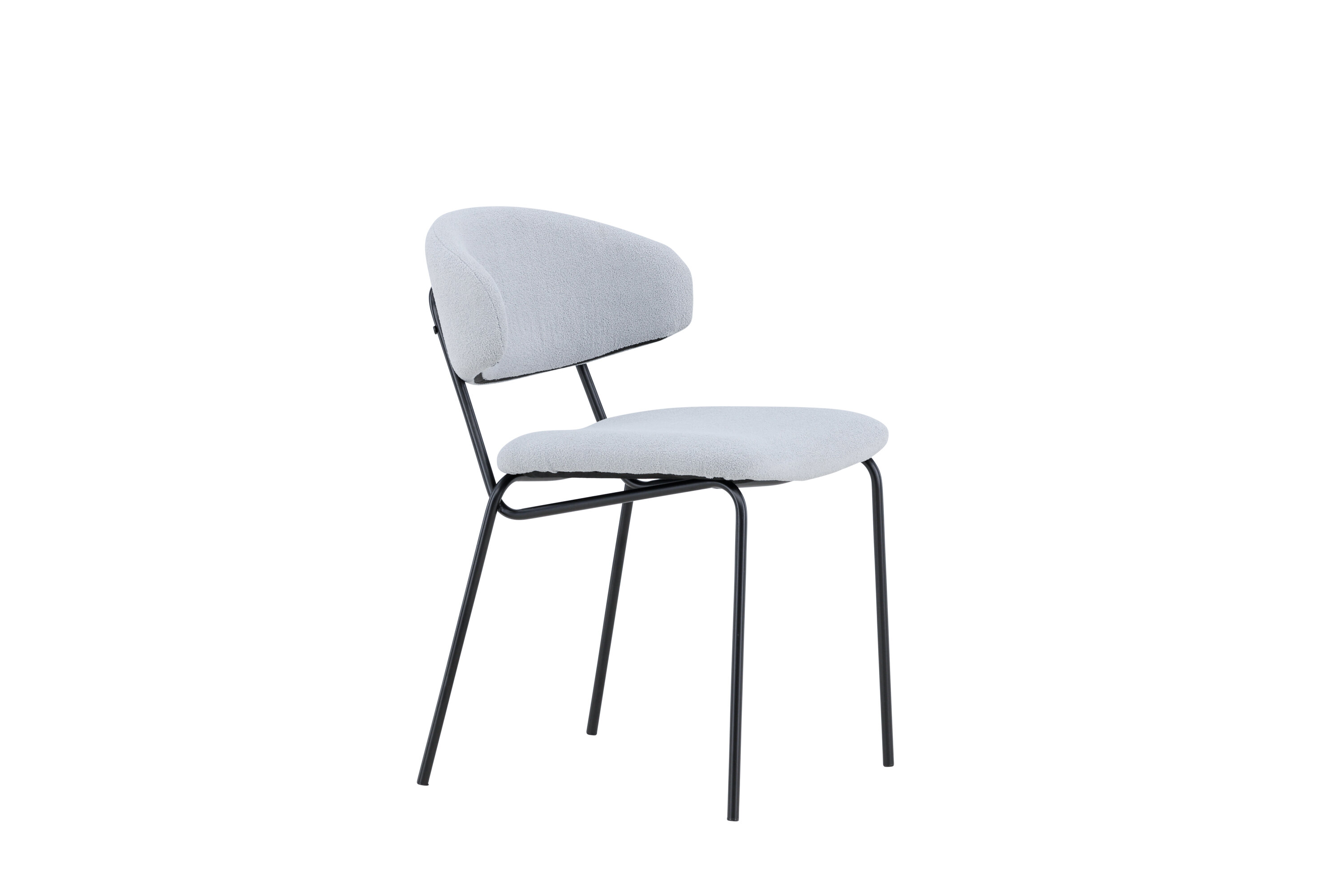Entdecken Sie Chico - den eleganten Stuhl, der die Atmosphäre Ihres Esszimmers aufwerten wird. Der Sitz des Stuhls ist mit blauem Bouclé gepolstert und die Beine sind aus schwarzem Stahl gefertigt, was einen beeindruckenden Kontrast schafft. Chico wird in einer praktischen Packung mit zwei Stühlen geliefert.