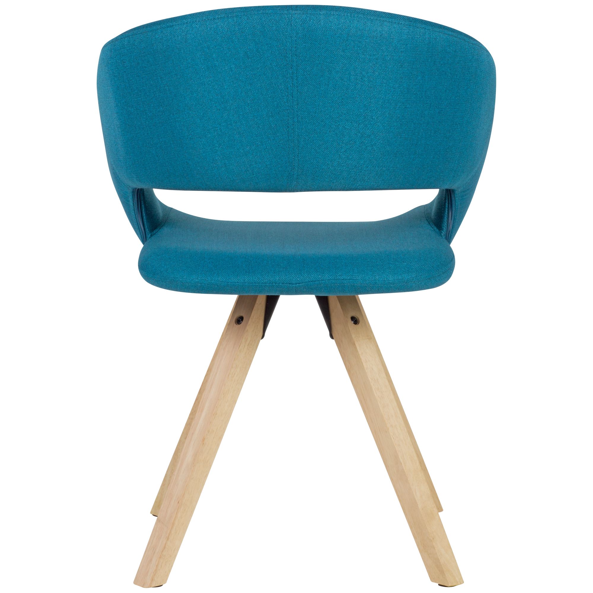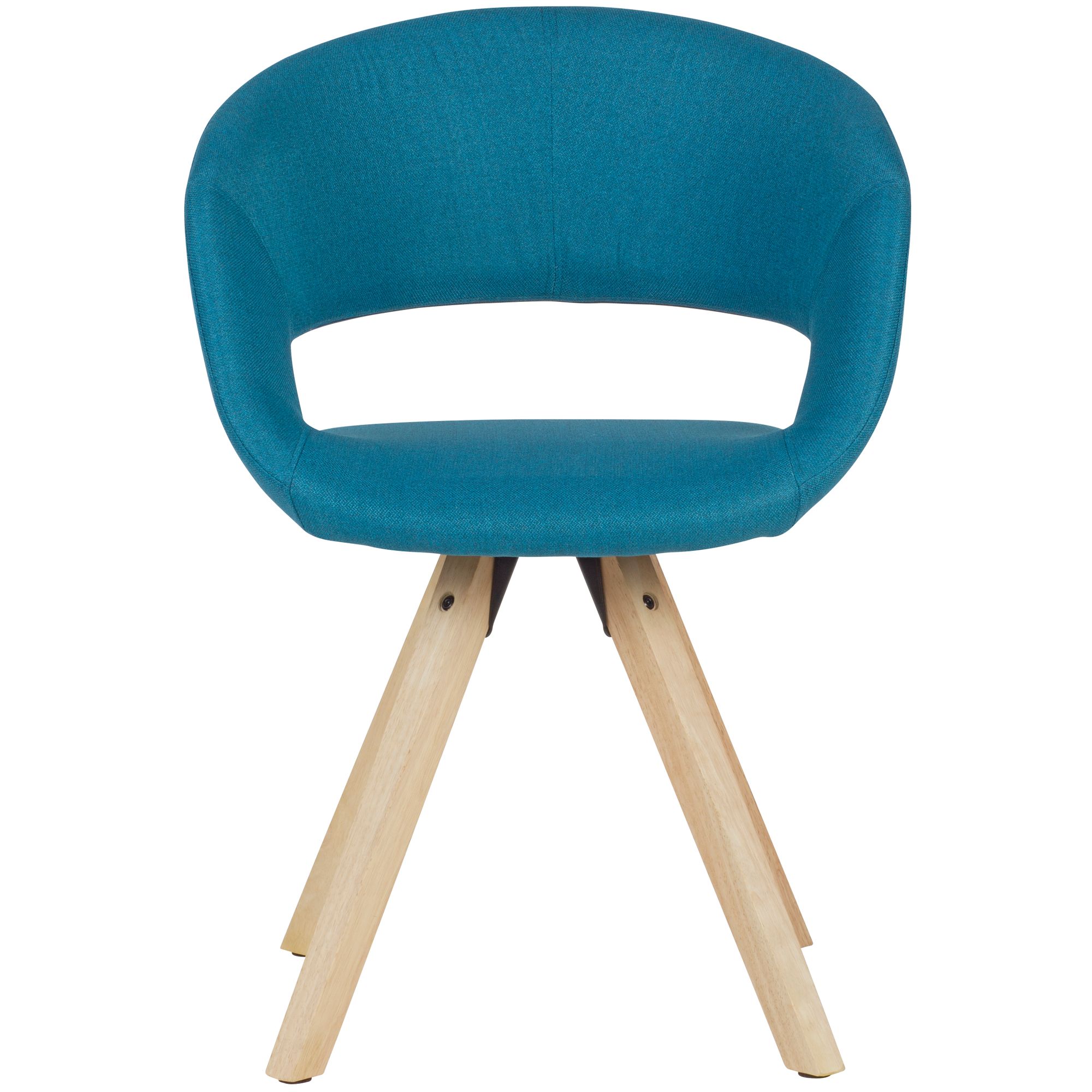 Erleben Sie diesen Esszimmerstuhl im Retro-Stil mit einer geschwungenen, gepolsterten Sitzschale aus petrolfarbenem Stoff. Die Beine aus massivem Heveaholz sorgen für stabile Unterstützung und passen perfekt zum Vintage-Look.
