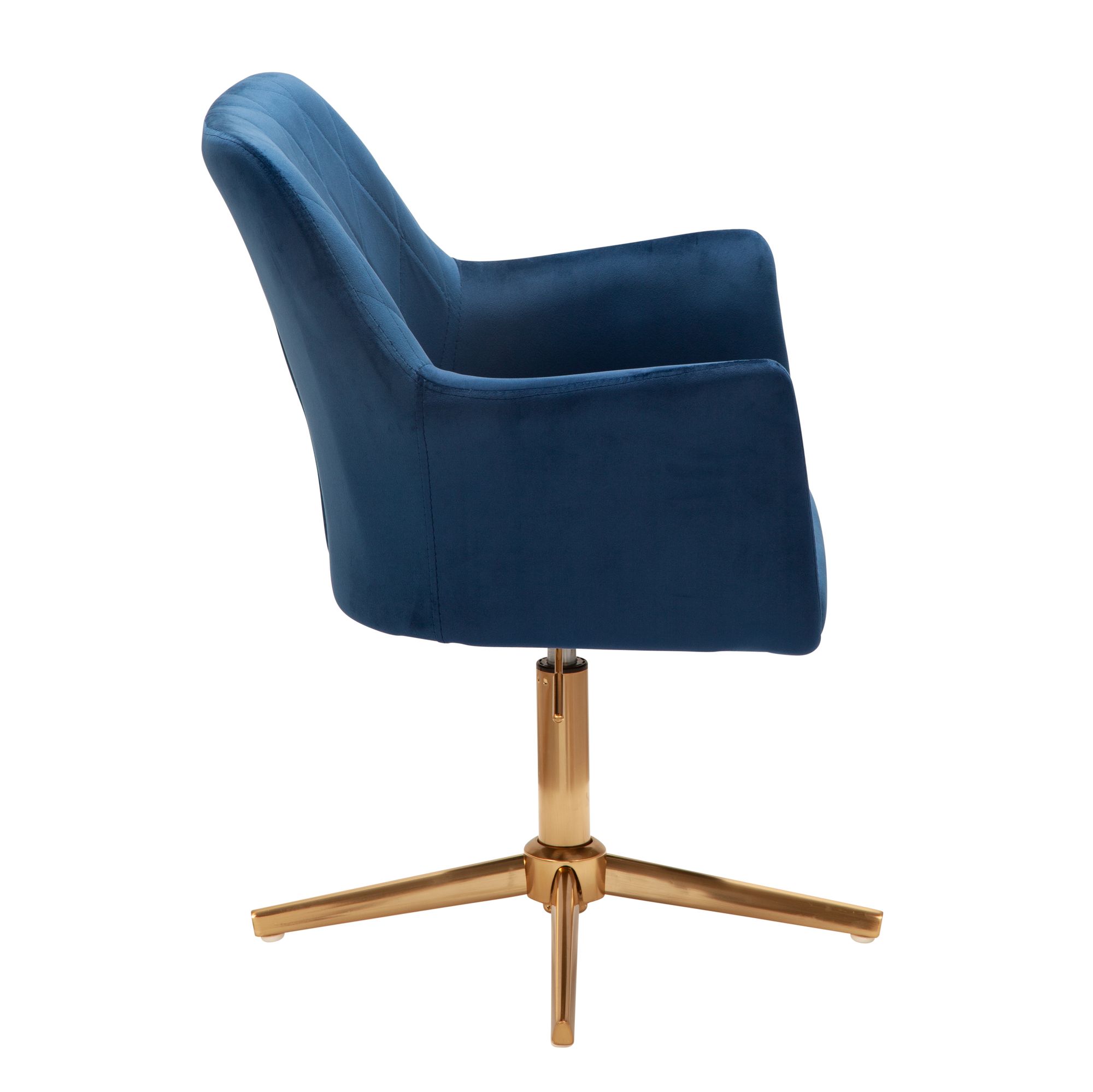 Schreibtischstuhl Dunkelblau Samt | Metallgestell Gold | Höhenverstellbar 80-97 cm