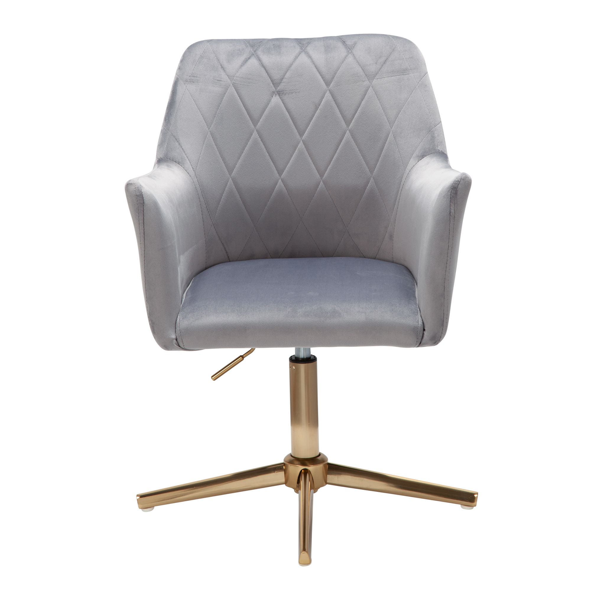 Schreibtischstuhl Grau Samt mit Armlehnen | Gold lackiertes Eisen | Höhenverstellbar 80-97 cm