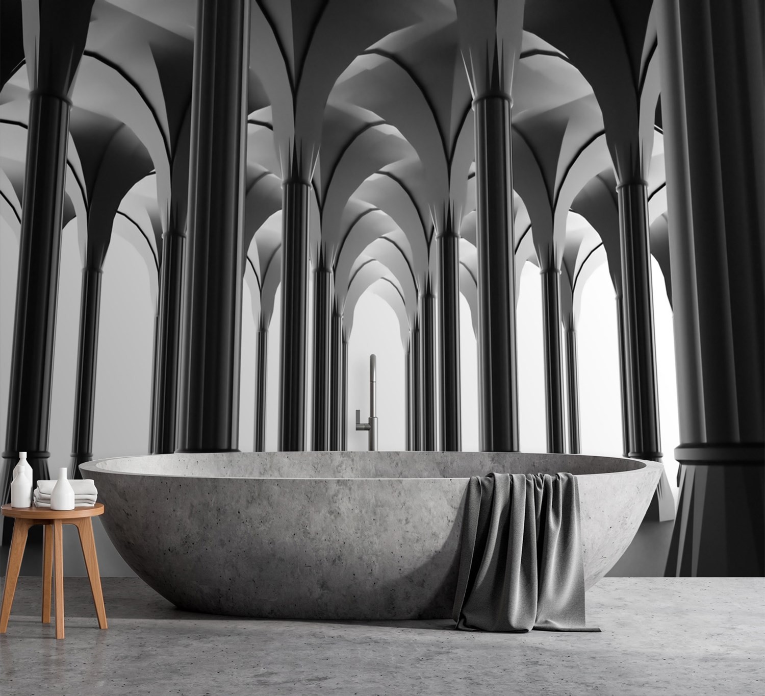Auf leinwand gedruckte tapete mit leimfinish in grau und weiß