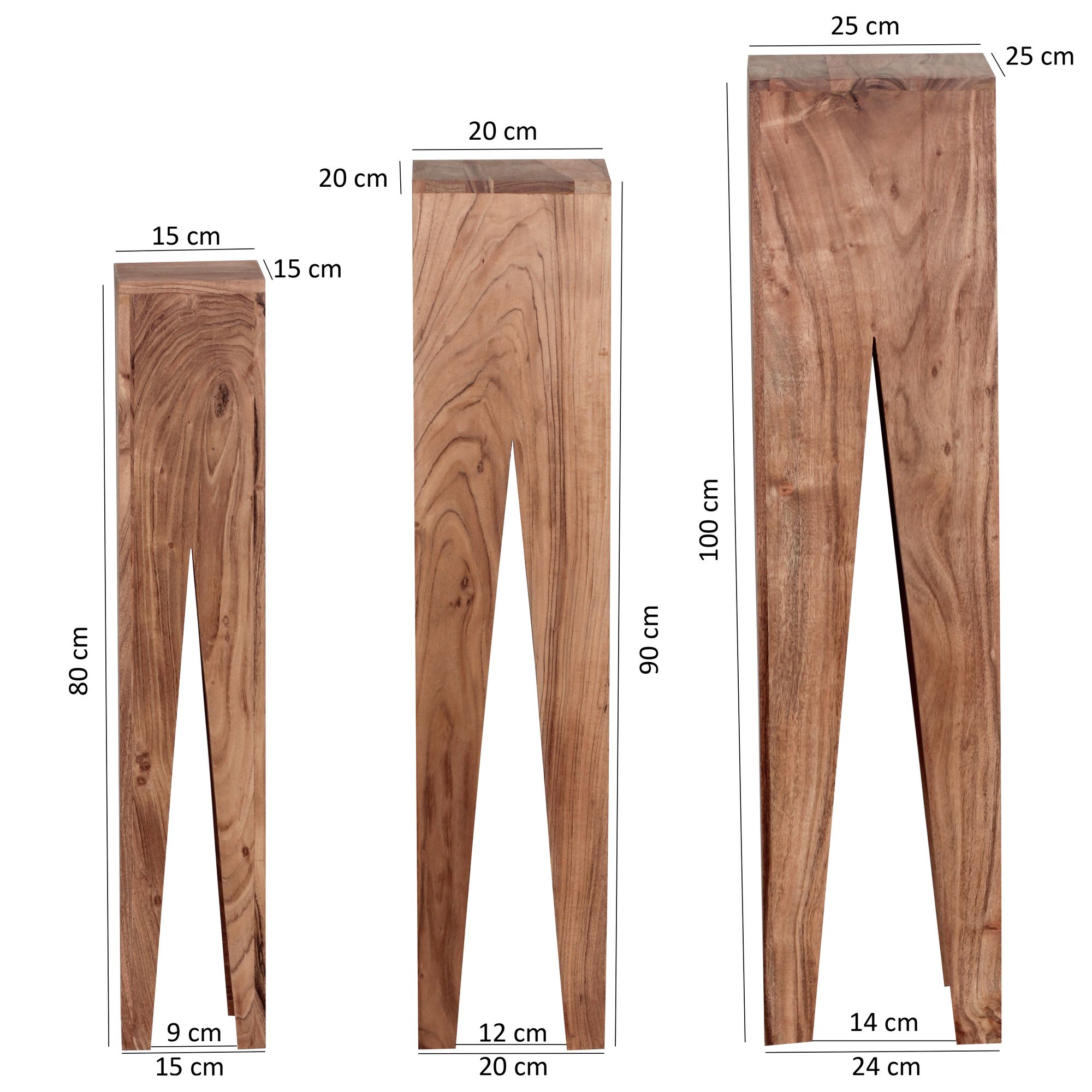 Produktinformationen "3er Set Beistelltische Akazie Massivholz Natur | 15-25x80-100x15-25 cm | Modernes quadratisches Design"