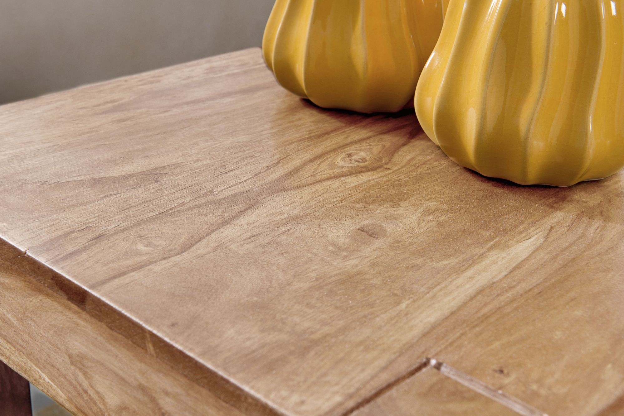 Dieses 3-teilige Set aus Satztischen aus massivem Akazienholz eignet sich perfekt zur optimalen Raumnutzung im Wohnzimmer. Die kleineren Tische lassen sich unter den größeren schieben und sind auch einzeln nutzbar. Die natürliche Holzmaserung verleiht dem Set einen rustikalen Charme und praktische Funktion.