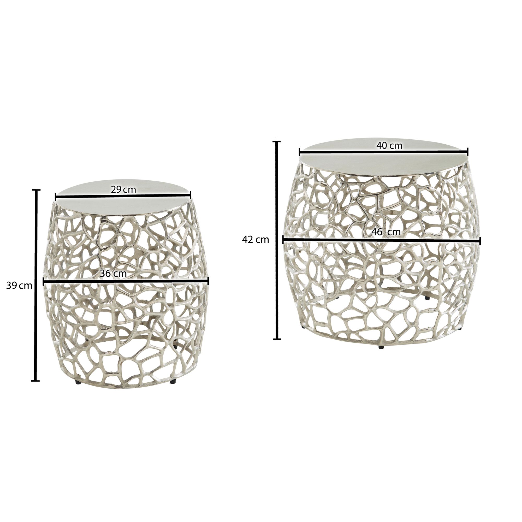 Beistelltisch 2er Set Aluminium Silber | Modernes Design mit Aststruktur | Maße 46x46x42 cm & 36x36x39 cm