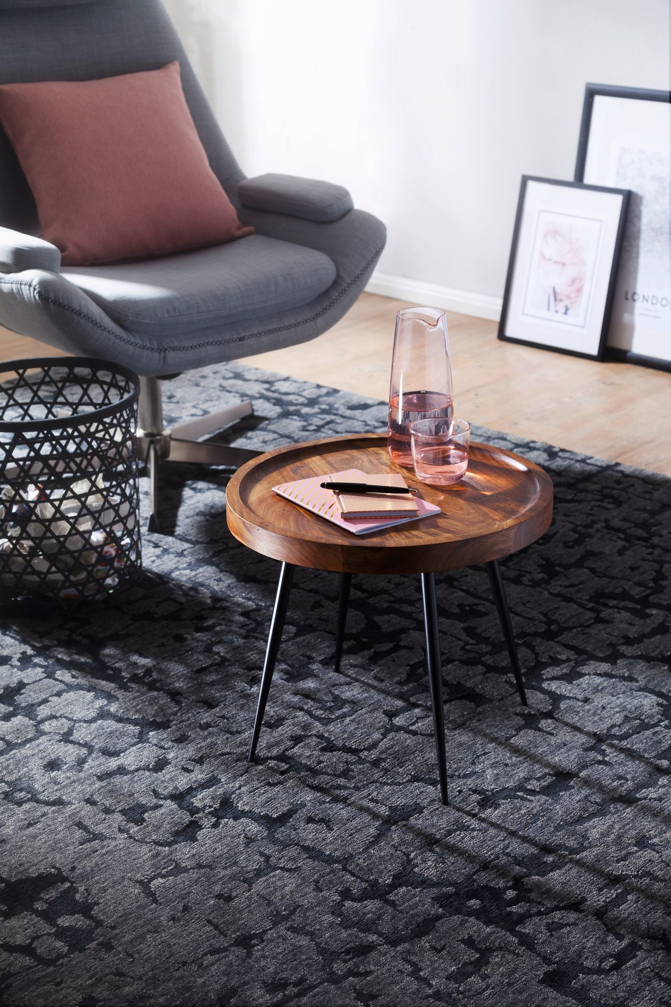 - Materialien: Sheesham Massivholz und Metall
