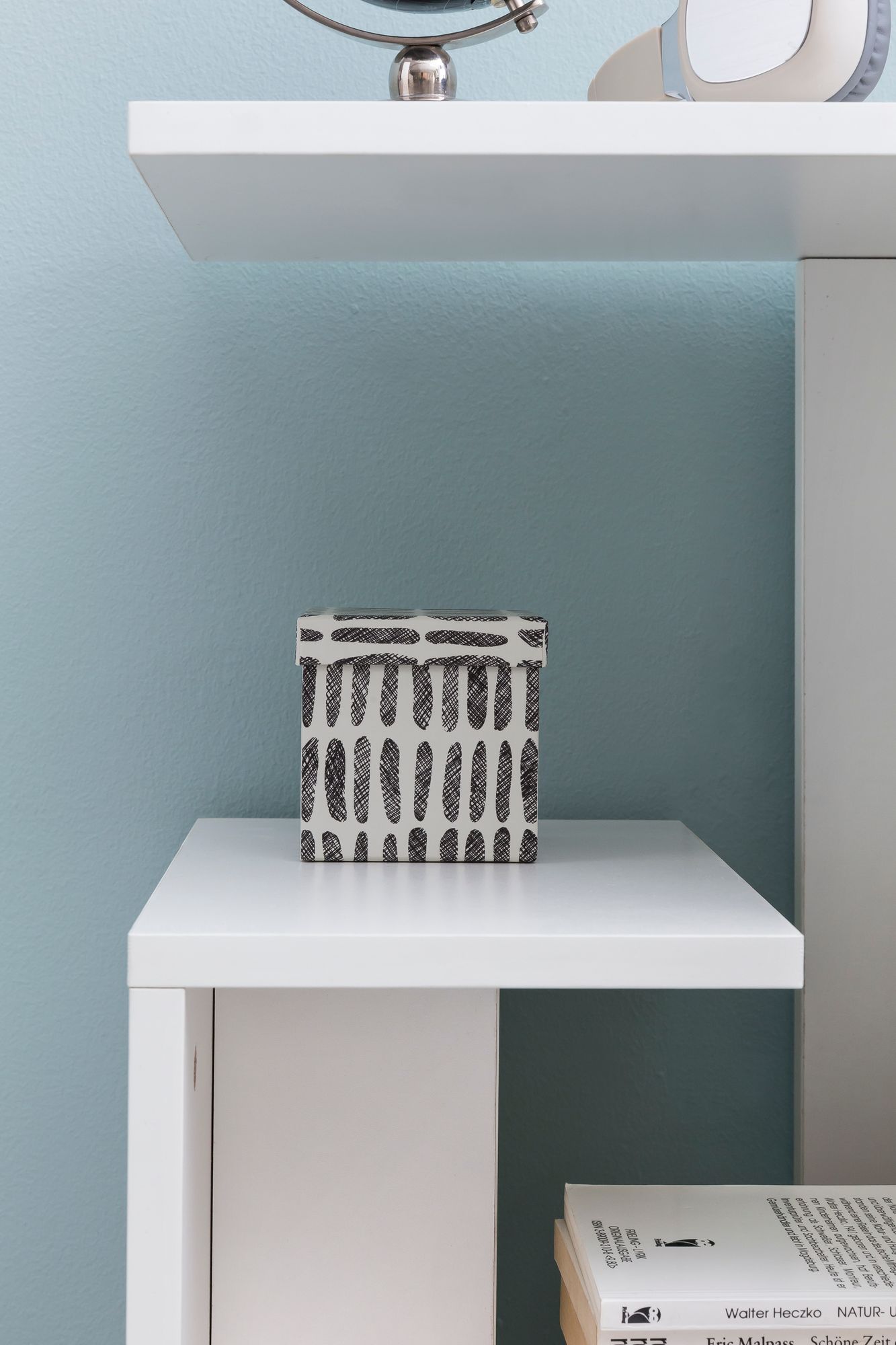 Die Abmessungen von 35 cm Breite, 29,5 cm Tiefe und 61 cm Höhe sowie das Material aus weiß folierter Spanplatte mit melaminharzbeschichteter Oberfläche gewährleisten Kratzfestigkeit und Wasserabweisung.