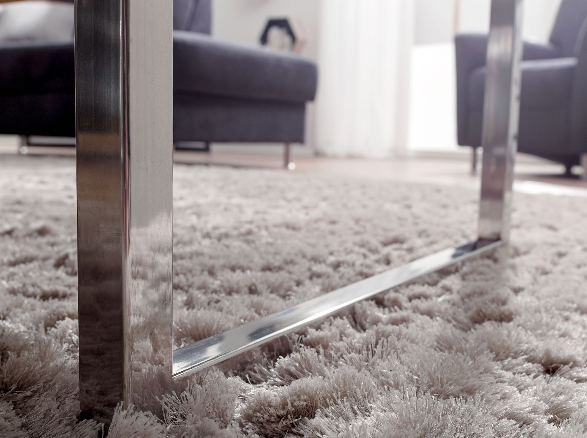 Das dunkle Holz mit einzigartiger Maserung kombiniert mit eleganten Chromfüßen macht ihn zu einem Blickfang. Handgefertigt aus hochwertigen Materialien, ist die Oberfläche naturbelassen und leicht zu pflegen.