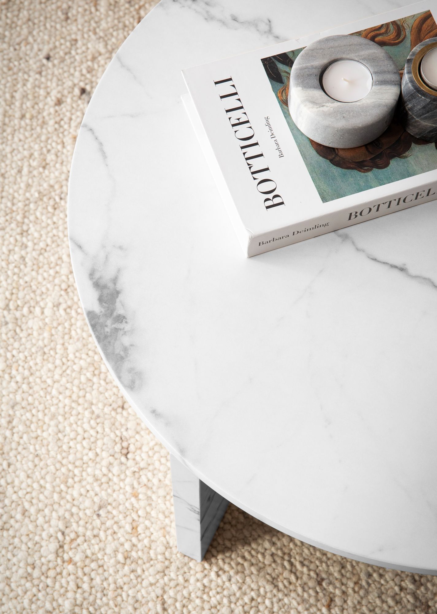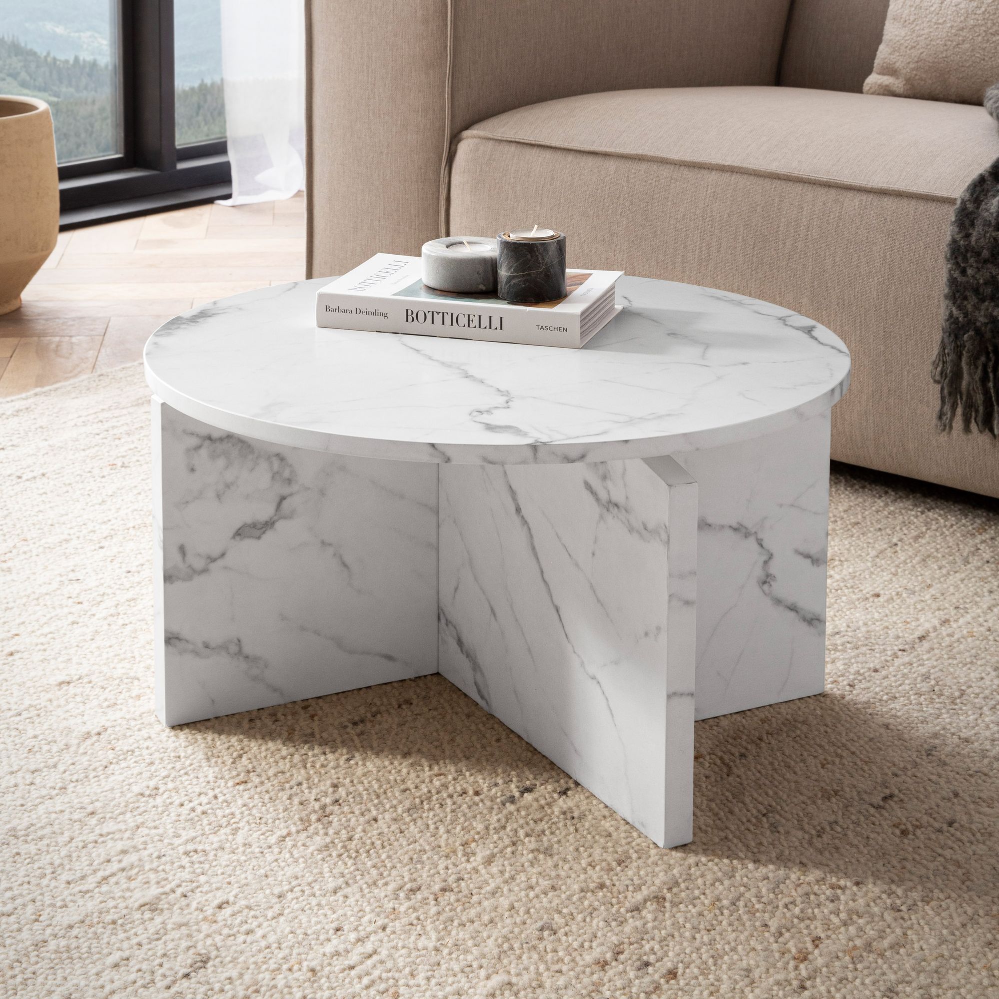Couchtisch Weiß in matter Marmor-Optik aus MDF | 60x60x33 cm | Runde Tischplatte Modern