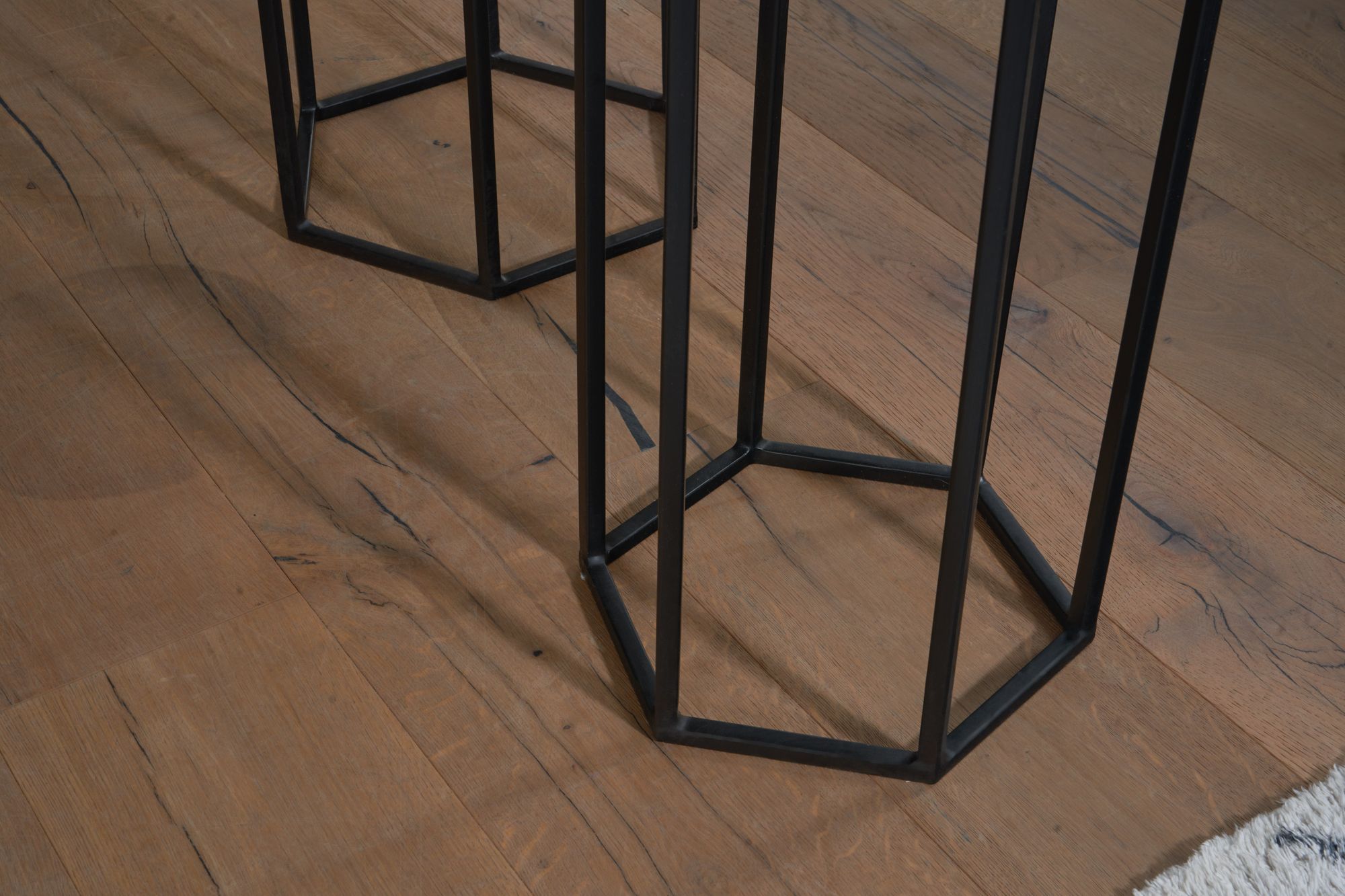 Design Beistelltisch 3er Set Mango Massivholz / Metall Schwarz | Sechseckige Tische | Maße 35x35x90 cm, 30x30x74 cm, 25x25x60 cm