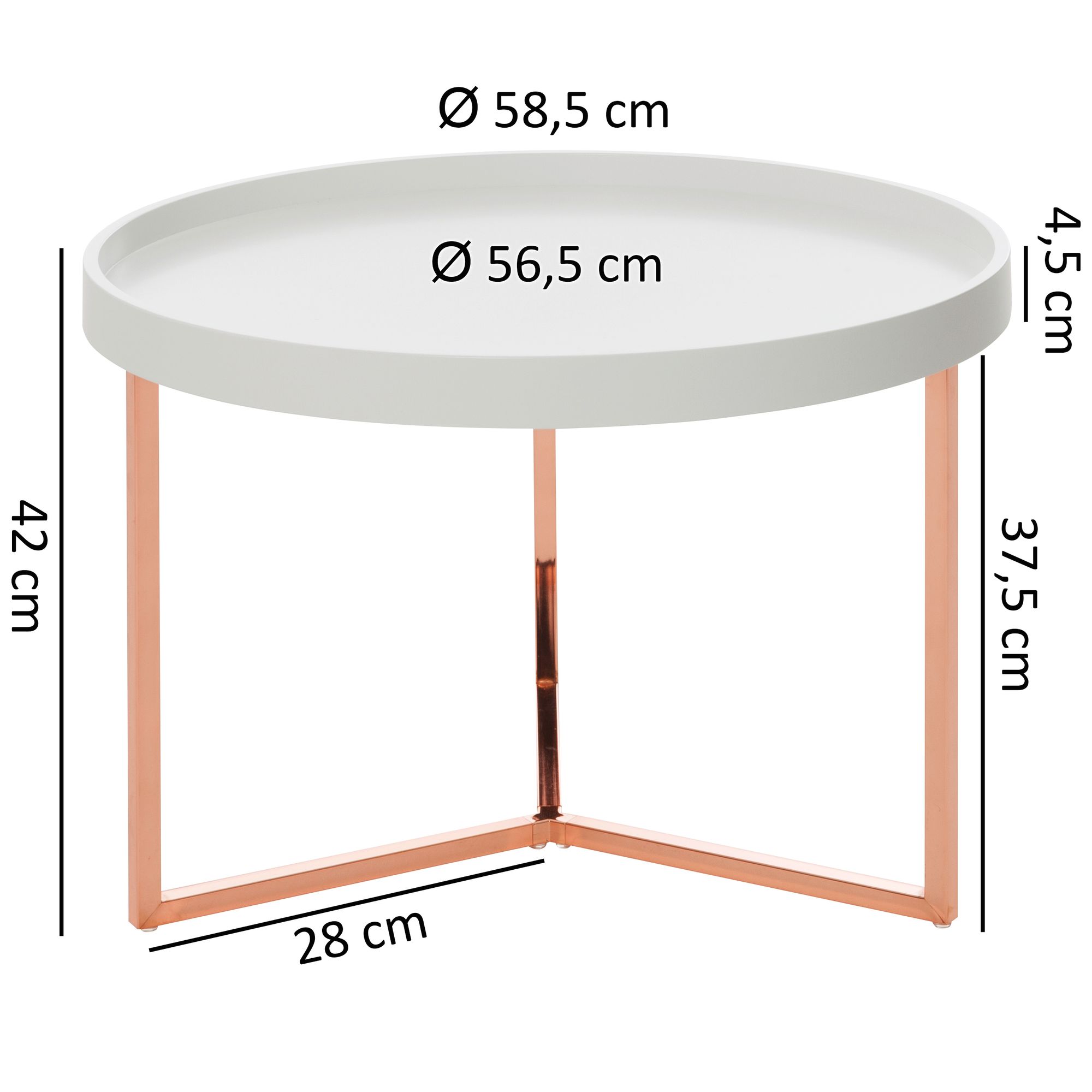Produktinformationen "Runder Couchtisch Weiß/Kupfer Metall | Weiße Holzplatte | 58,5 x 42 x 58,5 cm"