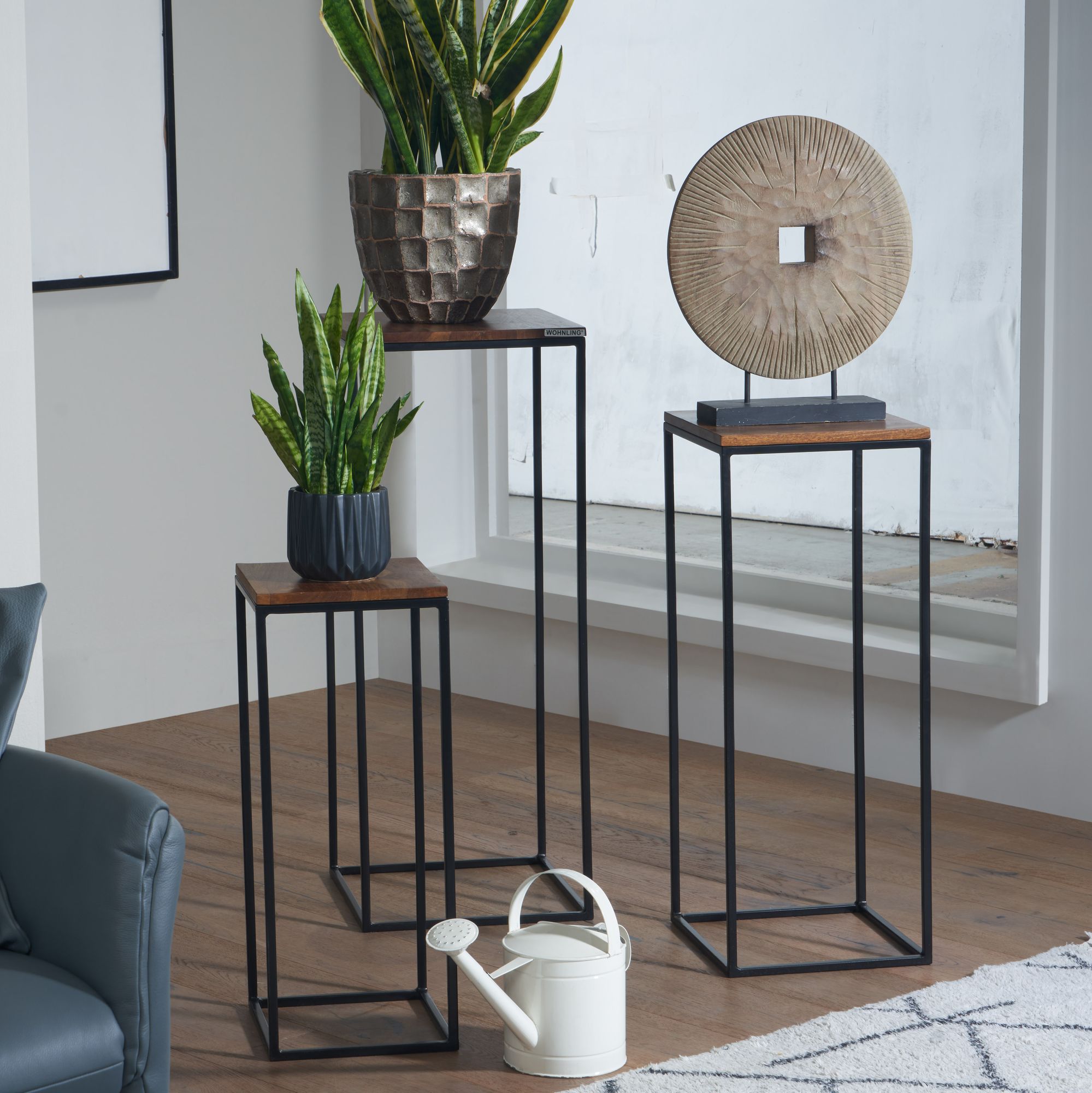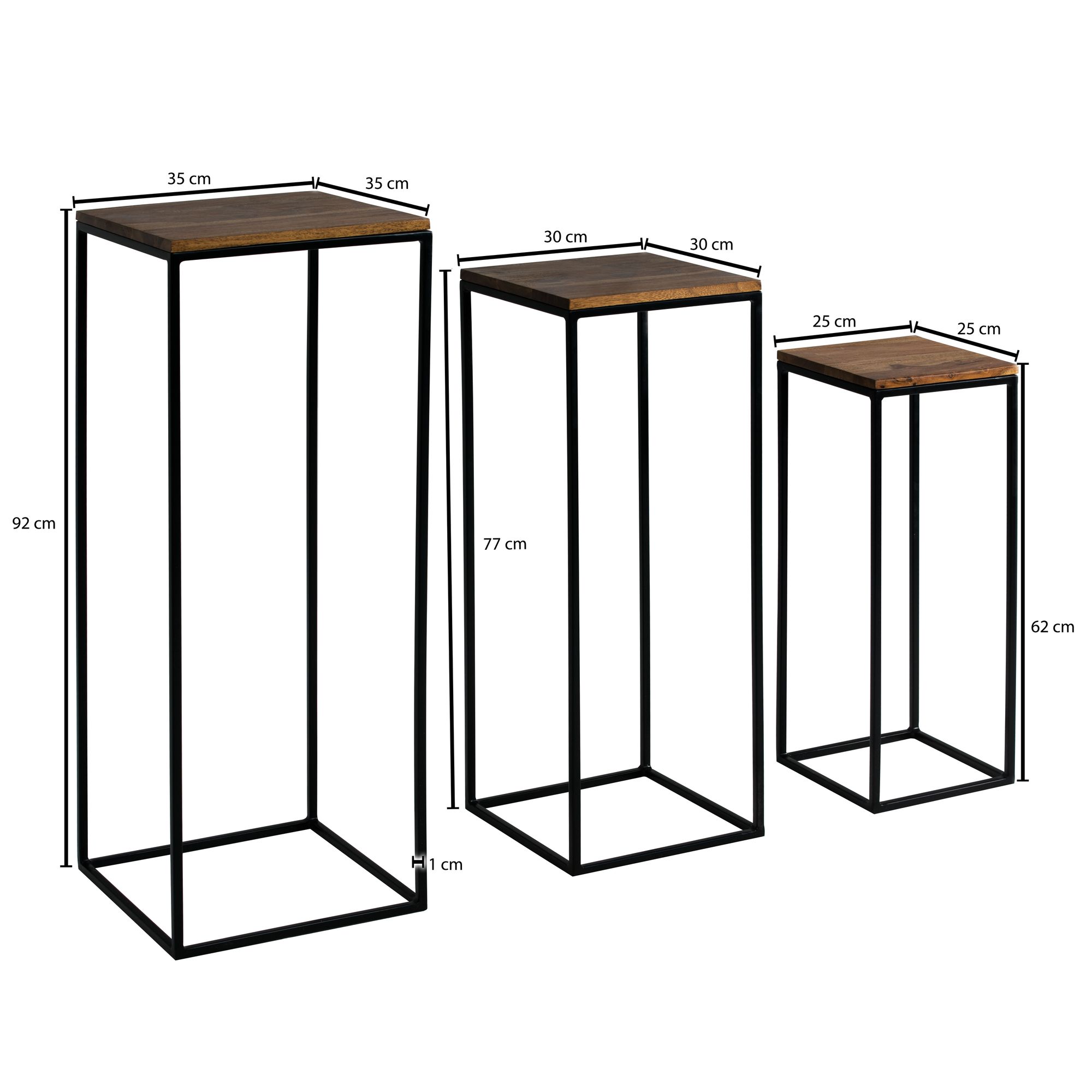 Wohnling sheesham massivholz blumentisch 3er set satztisch säulentisch dekosäule
