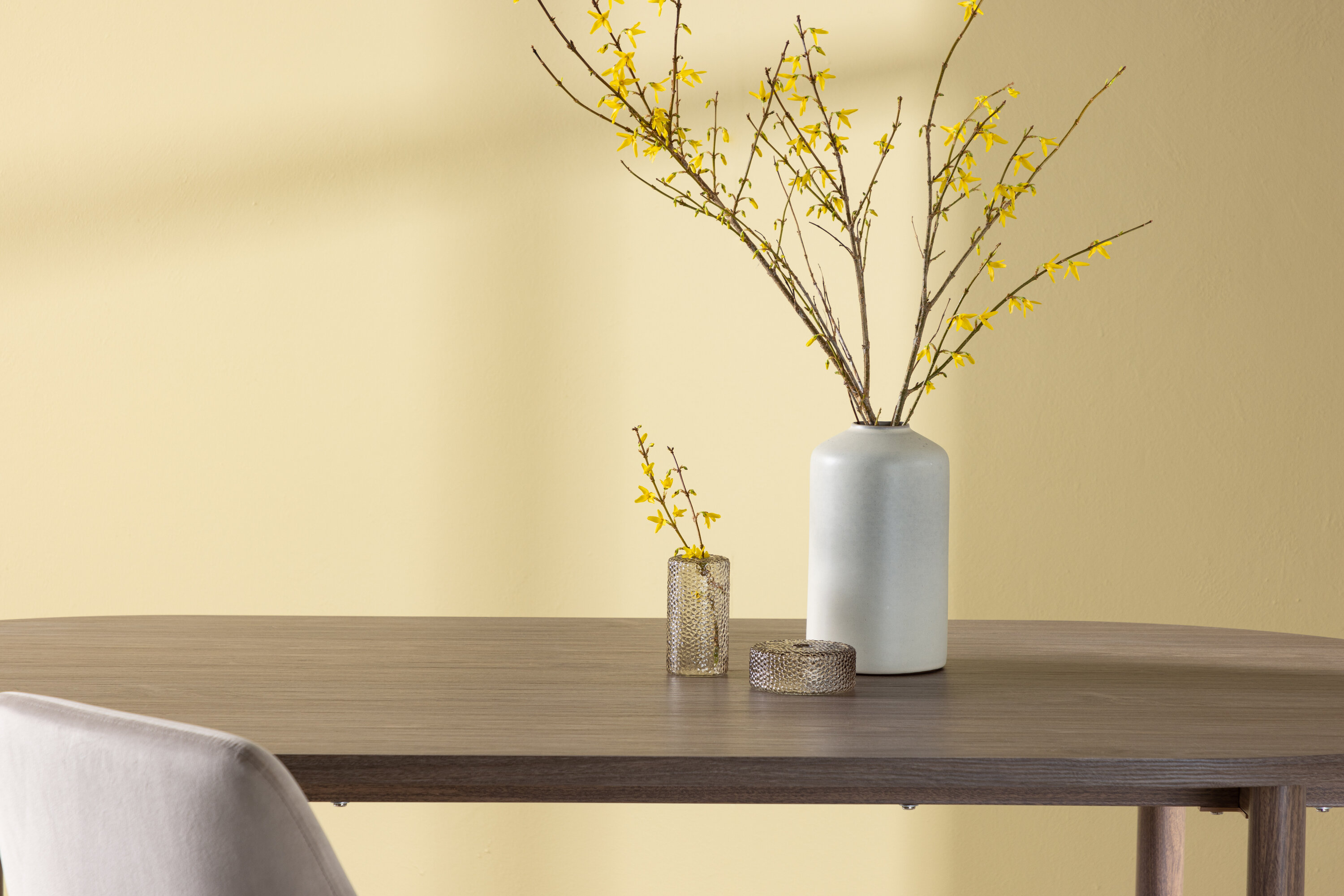 Esstisch Andy ist die perfekte Kombination aus Minimalismus und Charme! Dieser ovale Tisch hat ein schönes und elegantes Design mit einer dünnen oberen Platte aus MDF und zylinderförmigen Beinen. Die kontinuierliche natürliche Farbe lässt sich leicht anpassen und geht nie aus der Zeit. Kombinieren Sie es mit einem Paar bequemer Esszimmerstühle und genießen Sie ein angenehmes Mobiliar, bei dem niemand am Rande landet! Tischabmessungen: 180x75cm.