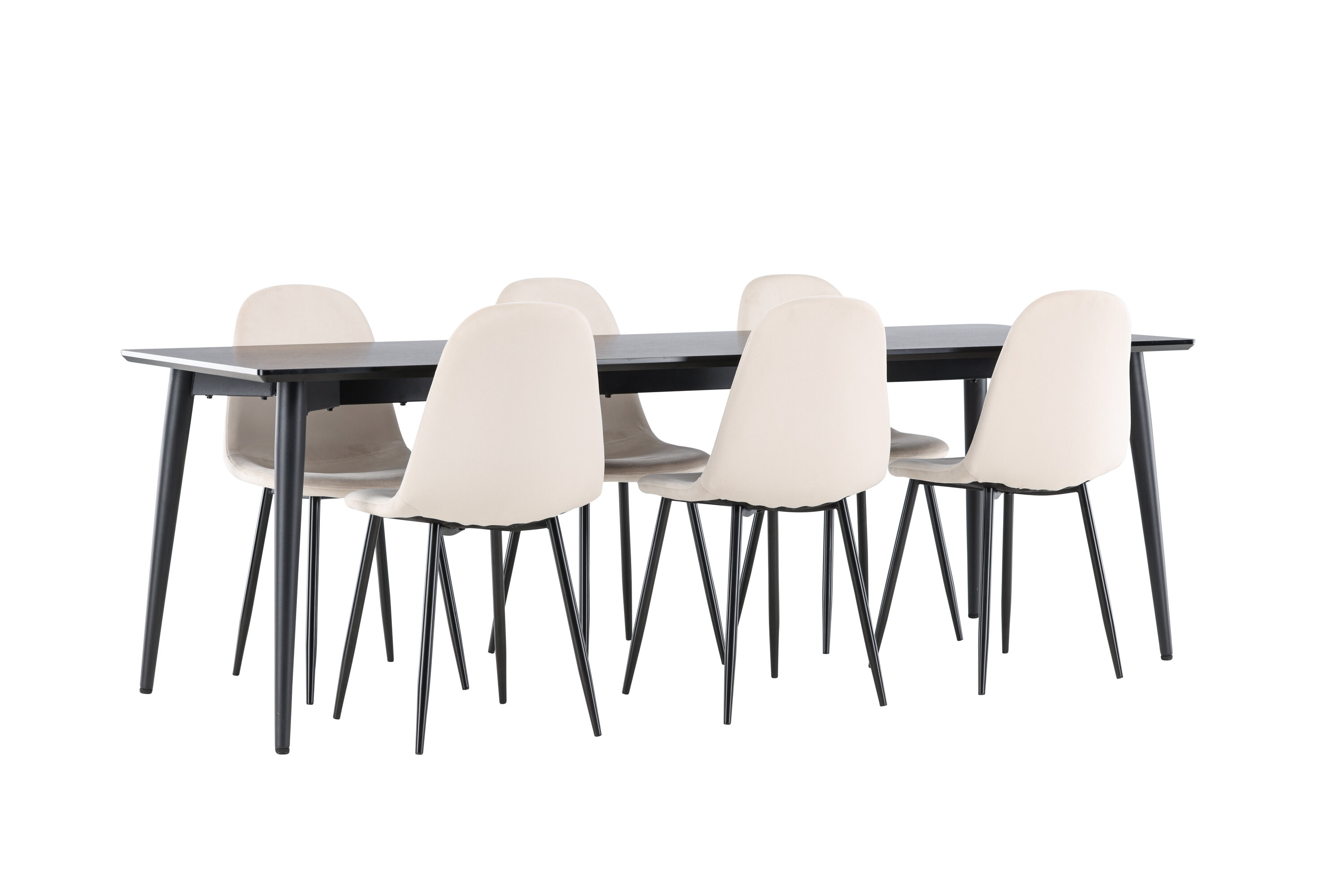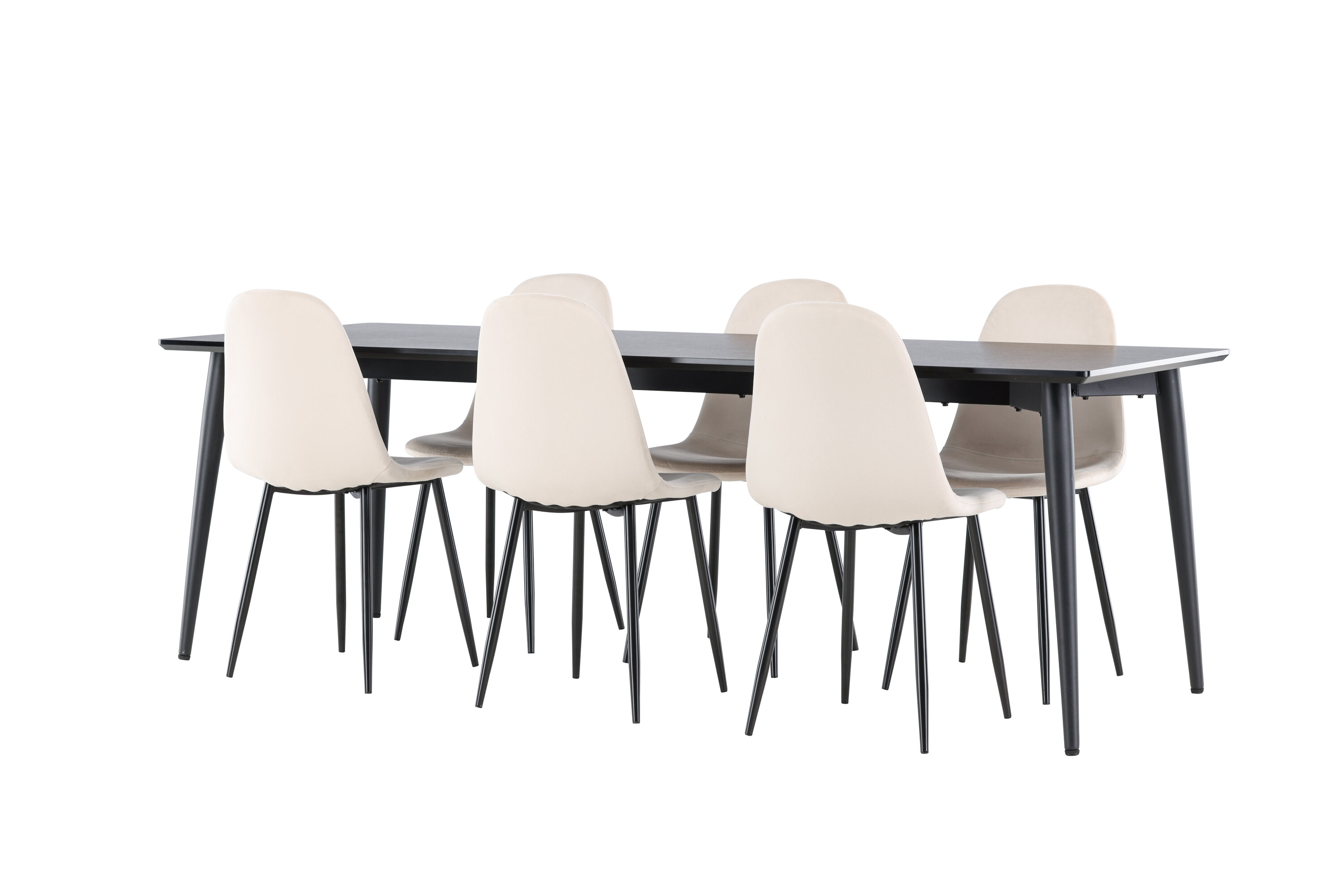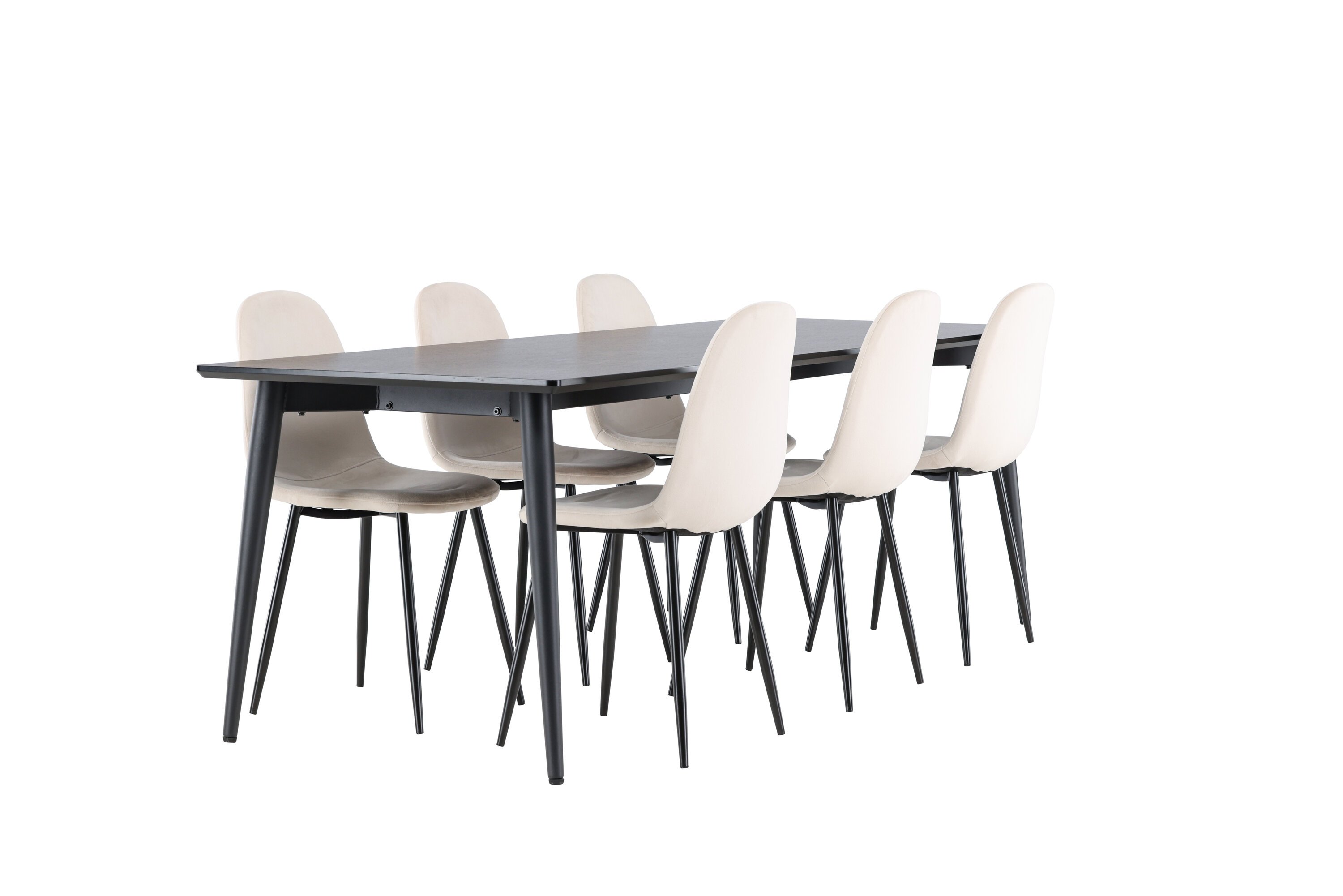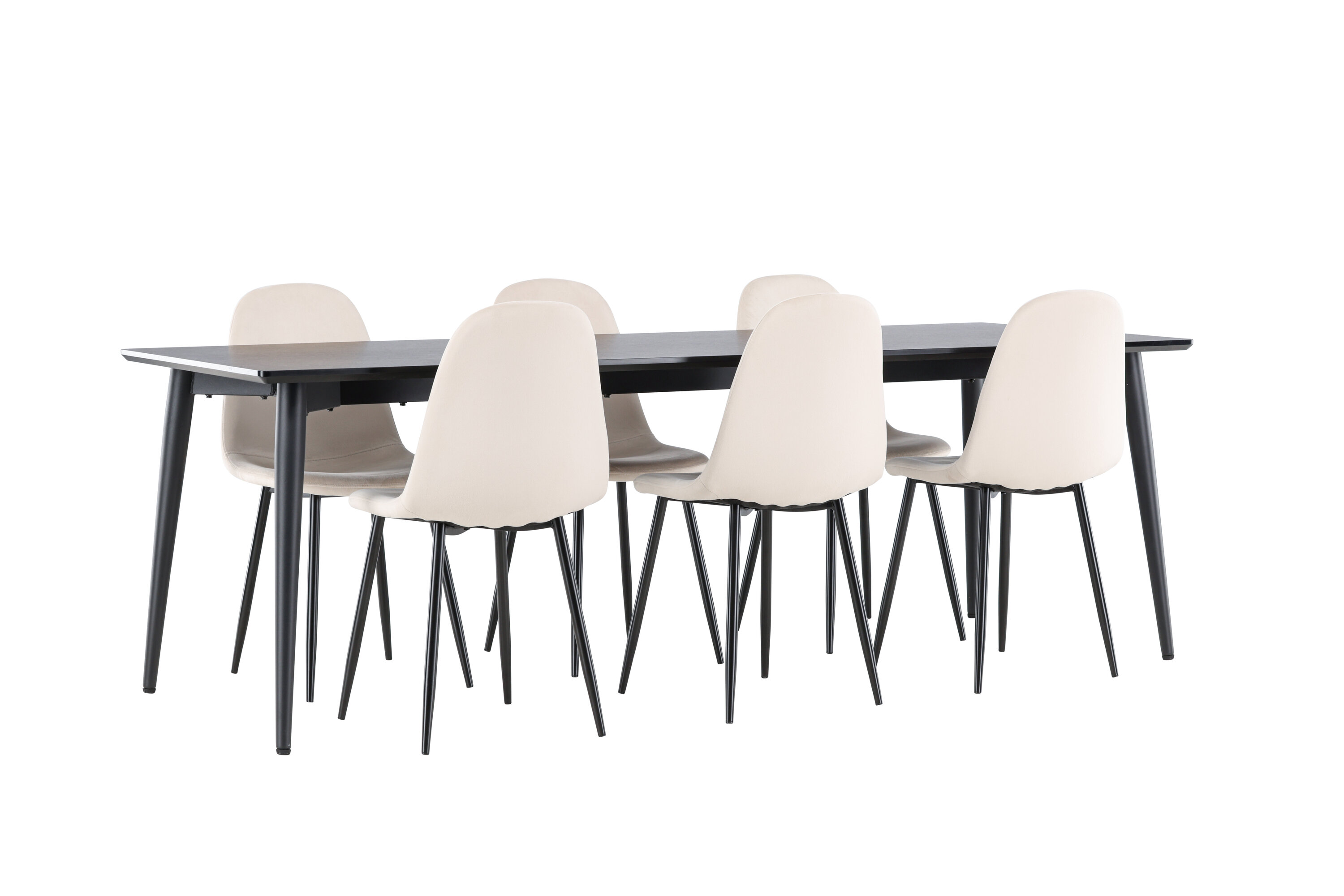 Entdecken Sie das perfekte Esszimmer-Set mit dem Polar Esszimmerstuhl und dem Ellis Esstisch - eine Kombination, die sowohl Eleganz als auch Robustheit für Ihr Zuhause ausstrahlt. Polar ist ein moderner Traumstuhl in stilvollem Beige. Dieser Esszimmerstuhl verfügt über ein komplett gepolstertes Design mit einer leicht abgerundeten Rückenlehne und Sitzfläche aus Samt sowie Beinen aus schwarzem, pulverbeschichtetem Metall. Es ist sowohl komfortabel als auch auffällig und eignet sich perfekt, um das Herz des Hauses einladend und gemütlich einzurichten. Genießen Sie köstliche Mahlzeiten mit Familie und Freunden! Entdecken Sie Ellis, den robusten Esstisch, der zum Herzstück Ihrer Essumgebung wird. Mit seiner schwarzen Farbe verleiht Ellis Ihrem Zimmer eine elegante und moderne Note. Der Tisch besteht aus Stahlbeinen und einer MDF-Tischplatte, die eine perfekte Balance zwischen Robustheit und Stil bietet. Mit seinen großzügigen Abmessungen von 230 x 85 cm eignet sich der Ellis-Tisch perfekt für gesellschaftliche Abendessen und Zusammenkünfte mit Freunden und Familie. Verleihen Sie Ihrem Essbereich mit dem Polar Esszimmerstuhl und dem Ellis Esstisch ein aktualisiertes Gefühl von Eleganz und Stil. Dieses Ess-Set schafft eine trendige und stilvolle Atmosphäre und bietet eine Balance zwischen zeitlosem Design und modernen Details, was es zur perfekten Wahl für alltägliche Abendessen und festliche Anlässe macht.