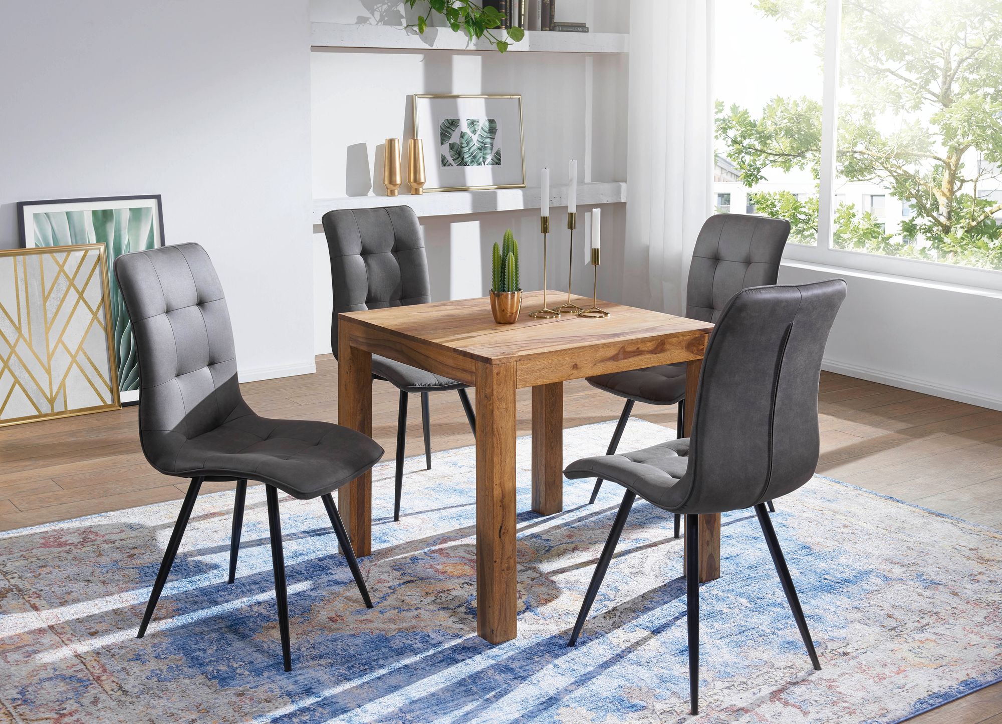 Esstisch MUMBAI Massivholz Sheesham Dunkelbraun 80 x 80 cm Quadratisch | 4 Beine