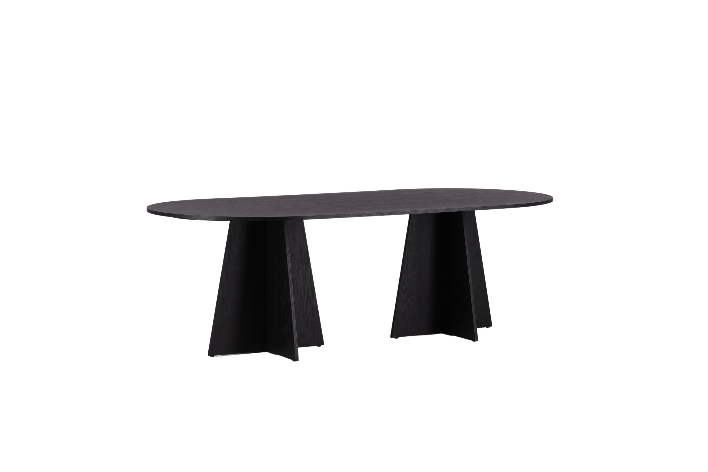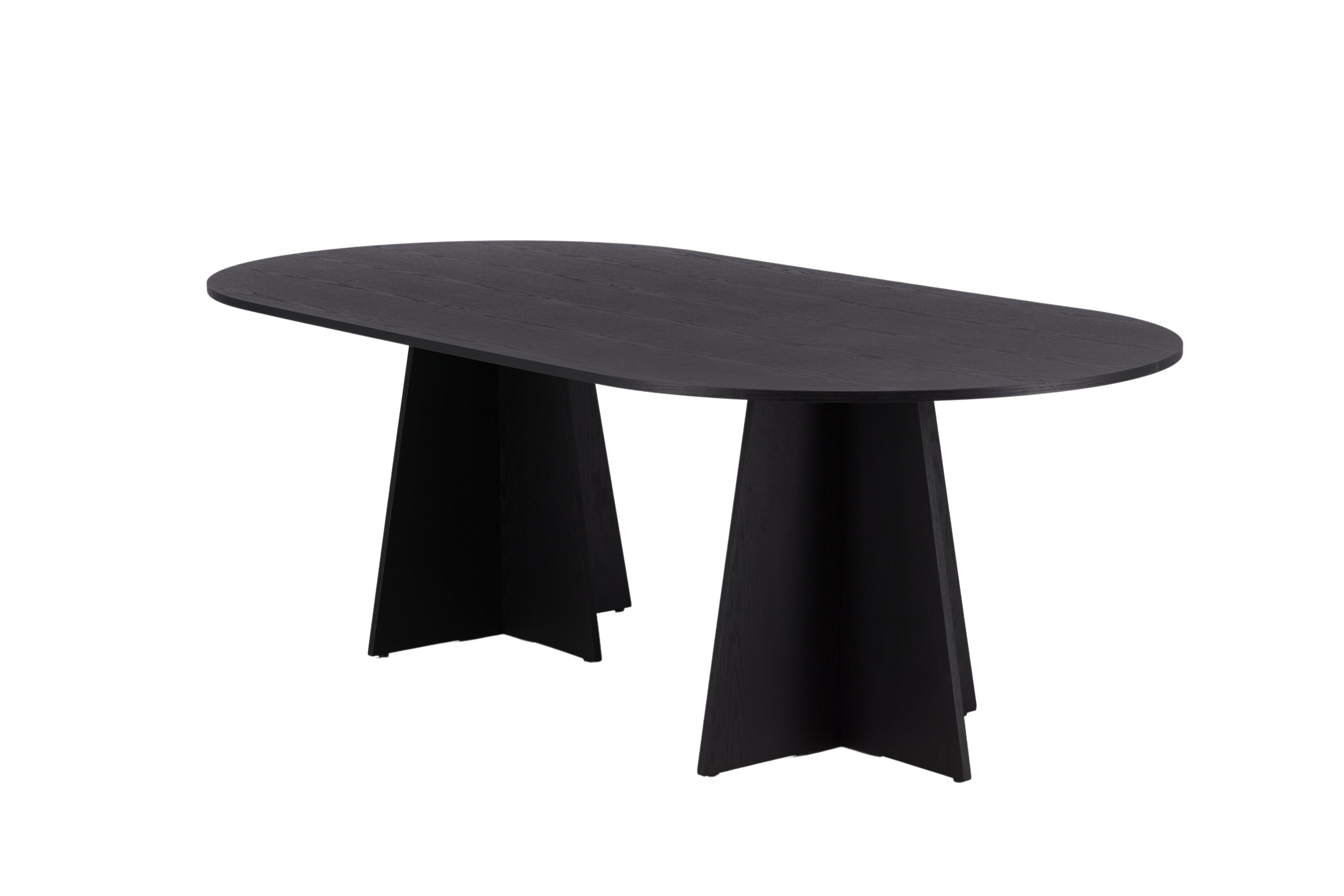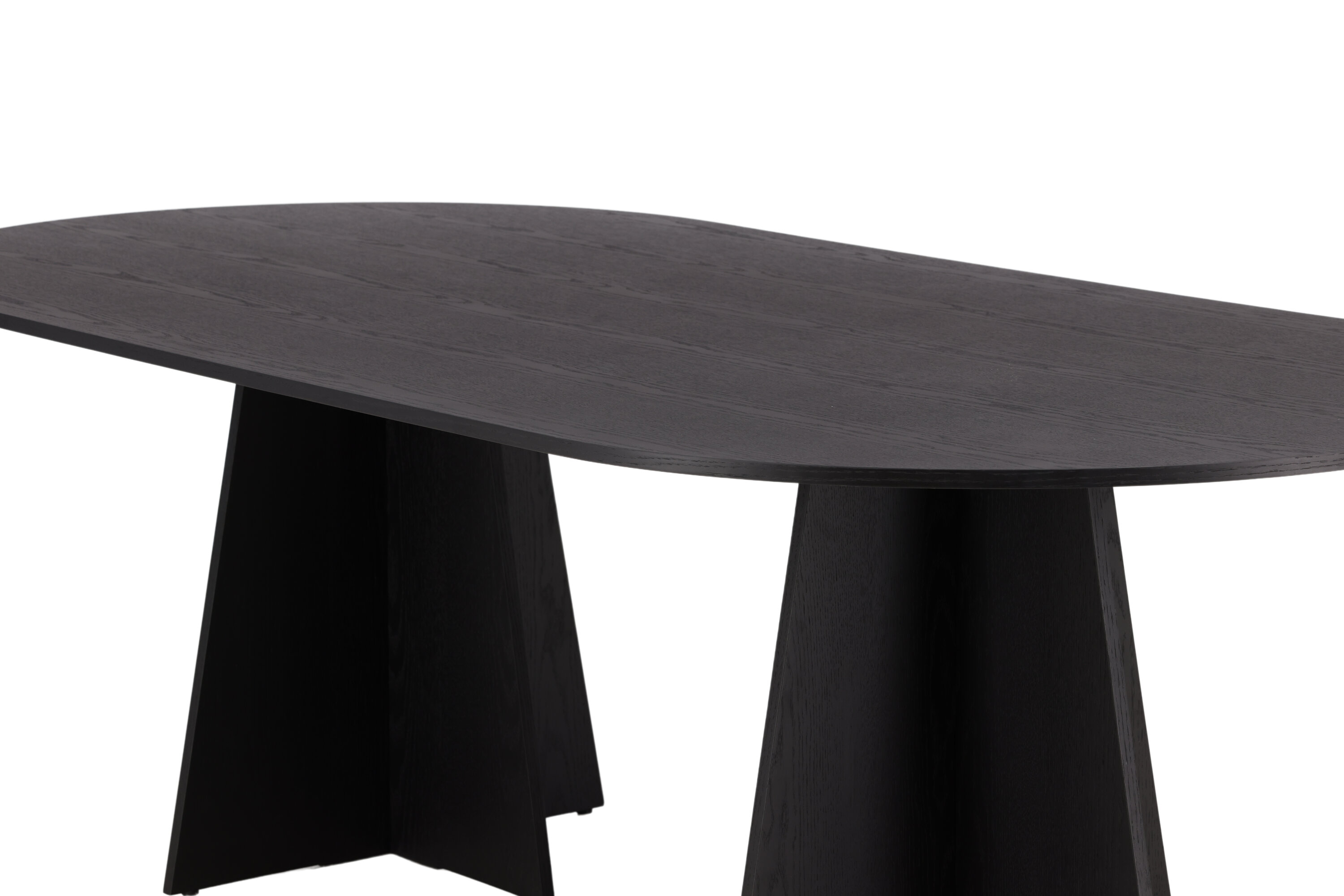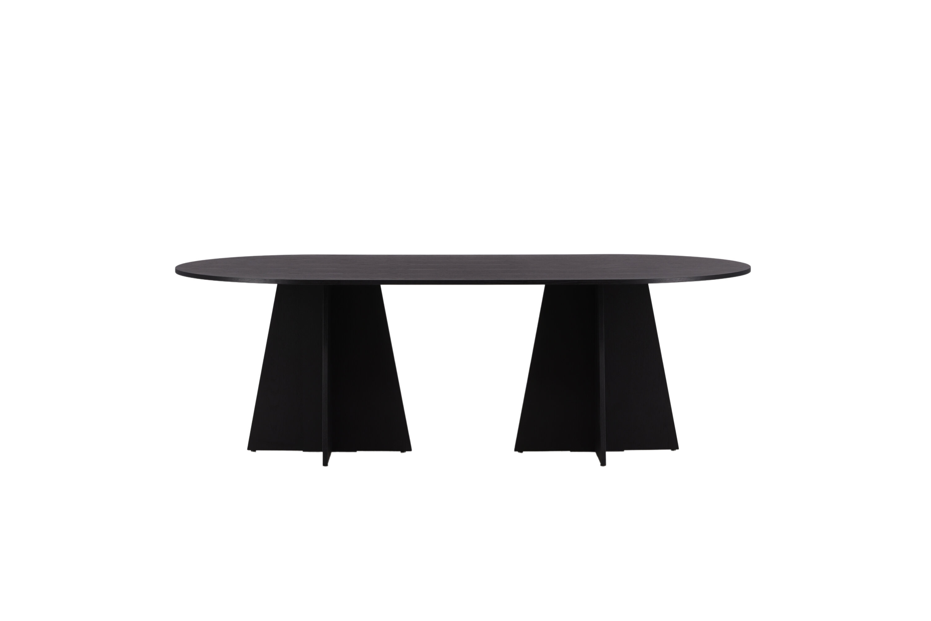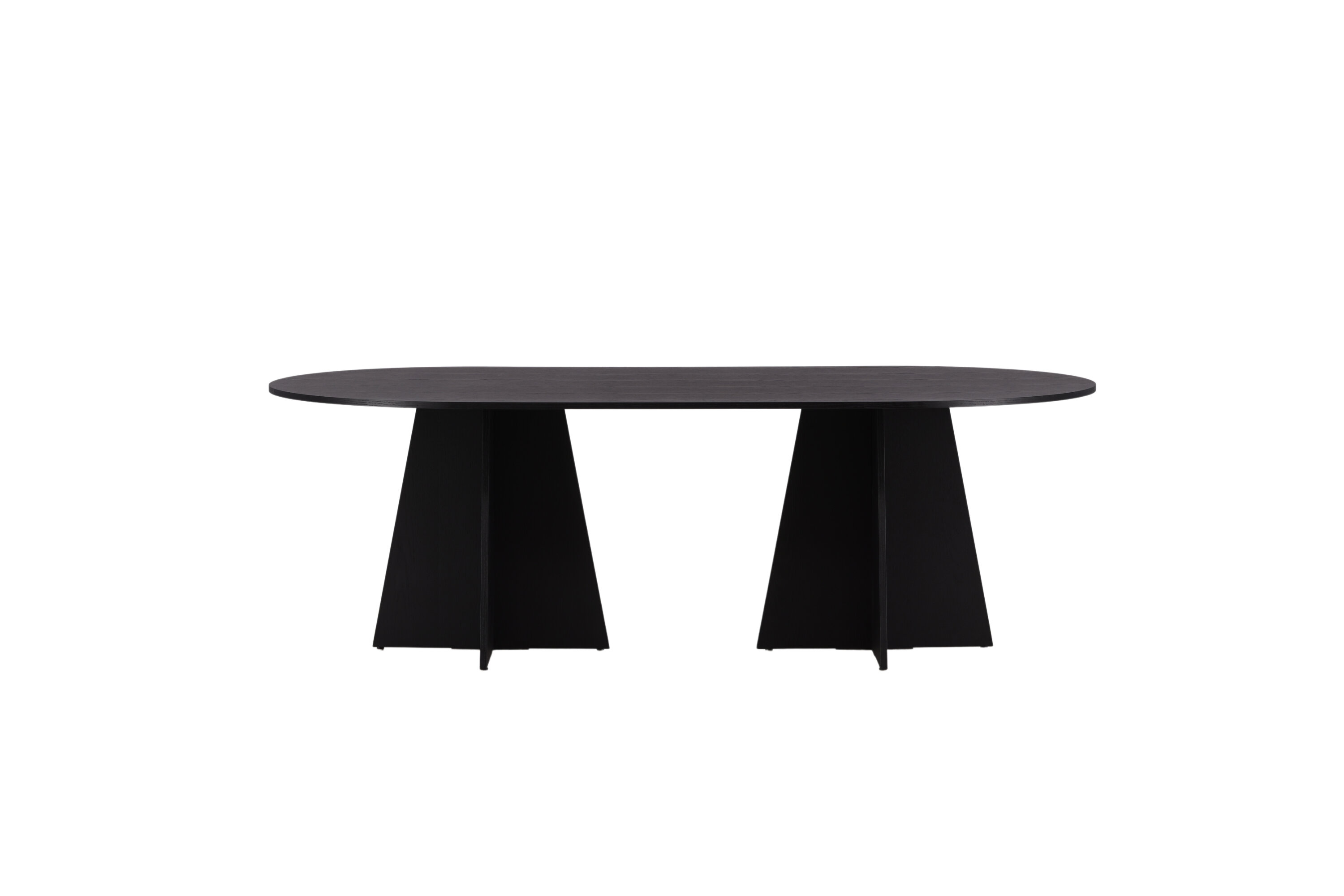 Statten Sie das Haus mit einem Esstisch aus, der beeindruckt! Bootcut hat ein einzigartiges Design mit einer ovalen Tischplatte aus schwarzem MDF mit Furnieren und einem eigenartigen Rahmen mit zwei kegelförmigen Beinen in offenem Design. Die dünne Tischplatte erzeugt einen minimalistischen Eindruck und bildet einen geschmackvollen Kontrast zum robusteren Rahmen. Kombinieren Sie mit ein paar bequemen Esszimmerstühlen und Sie erhalten eine komplette Essensgruppe, die im Laufe der Zeit steht!