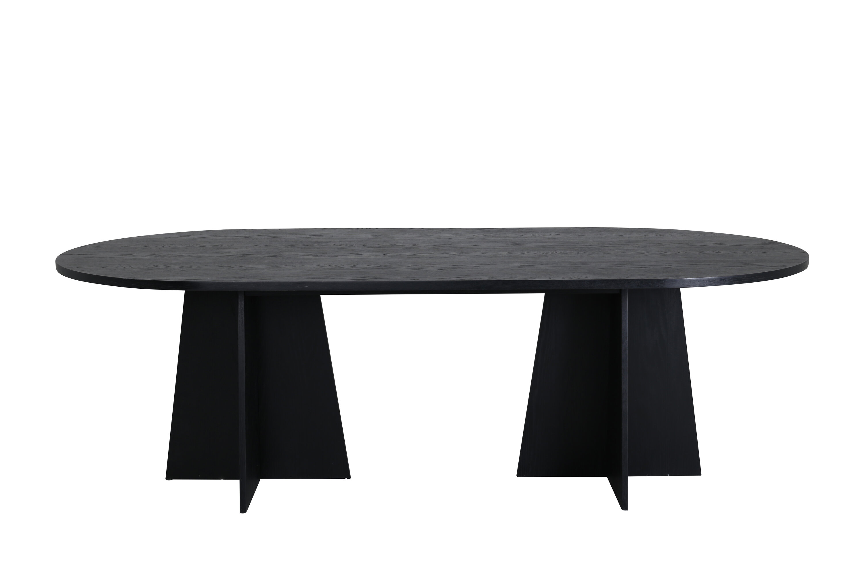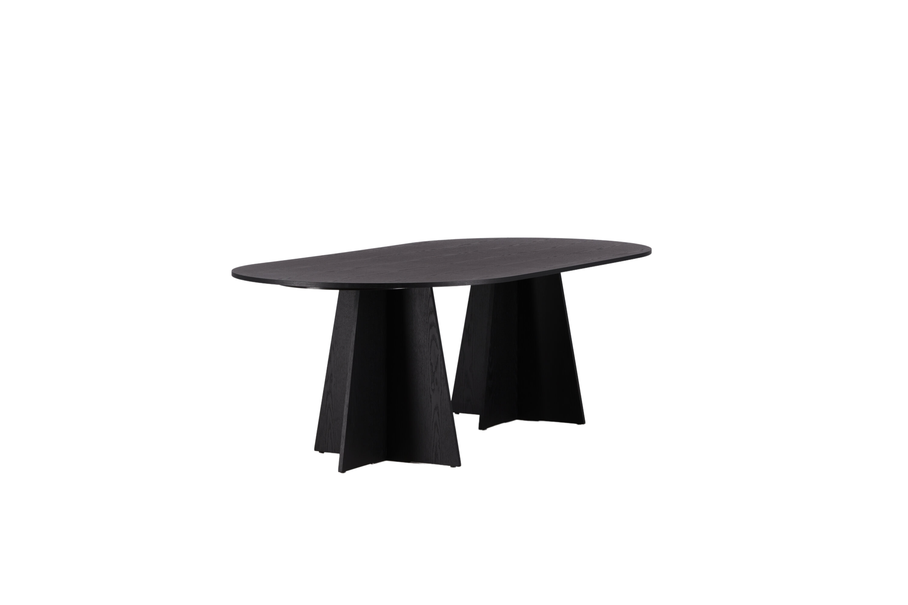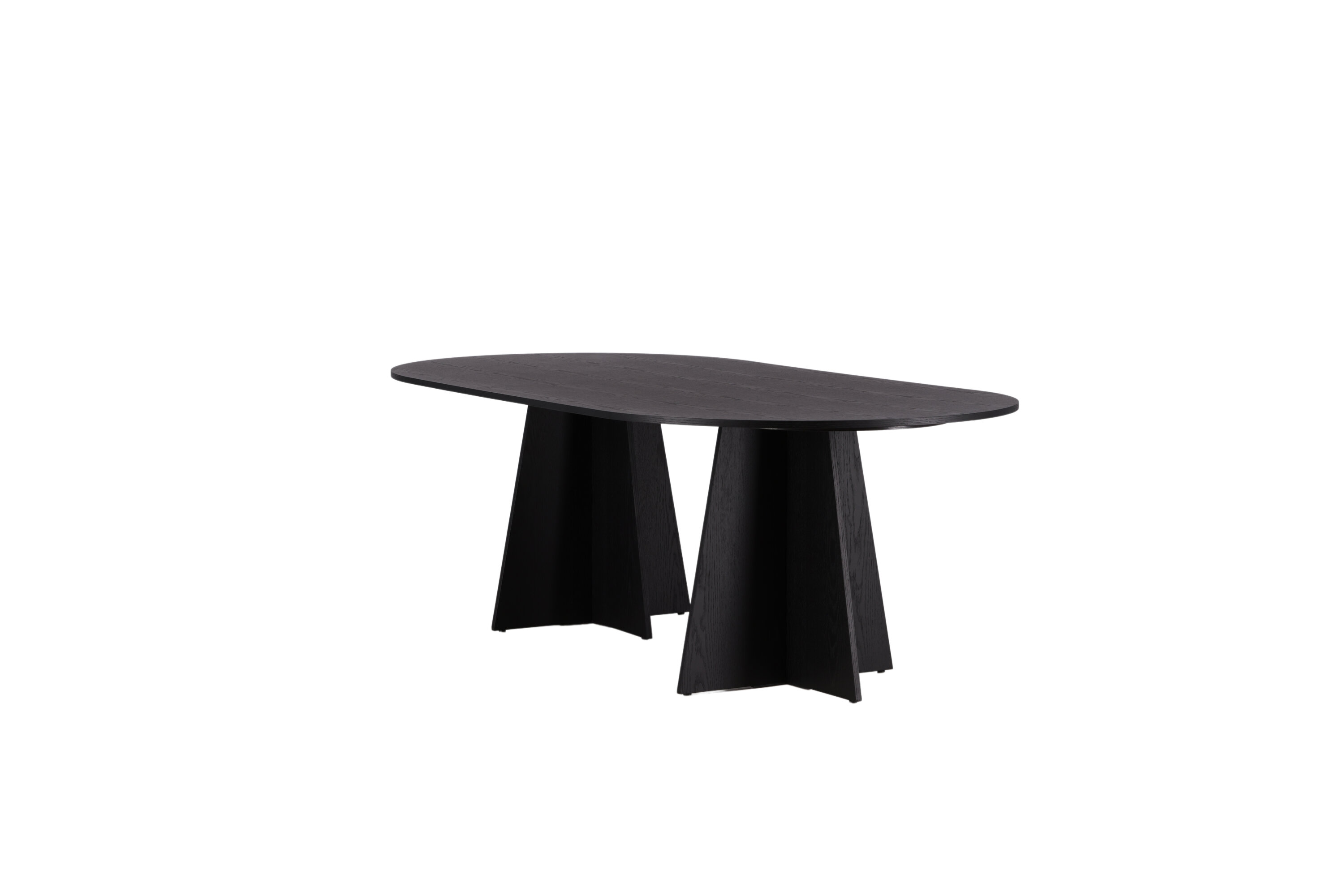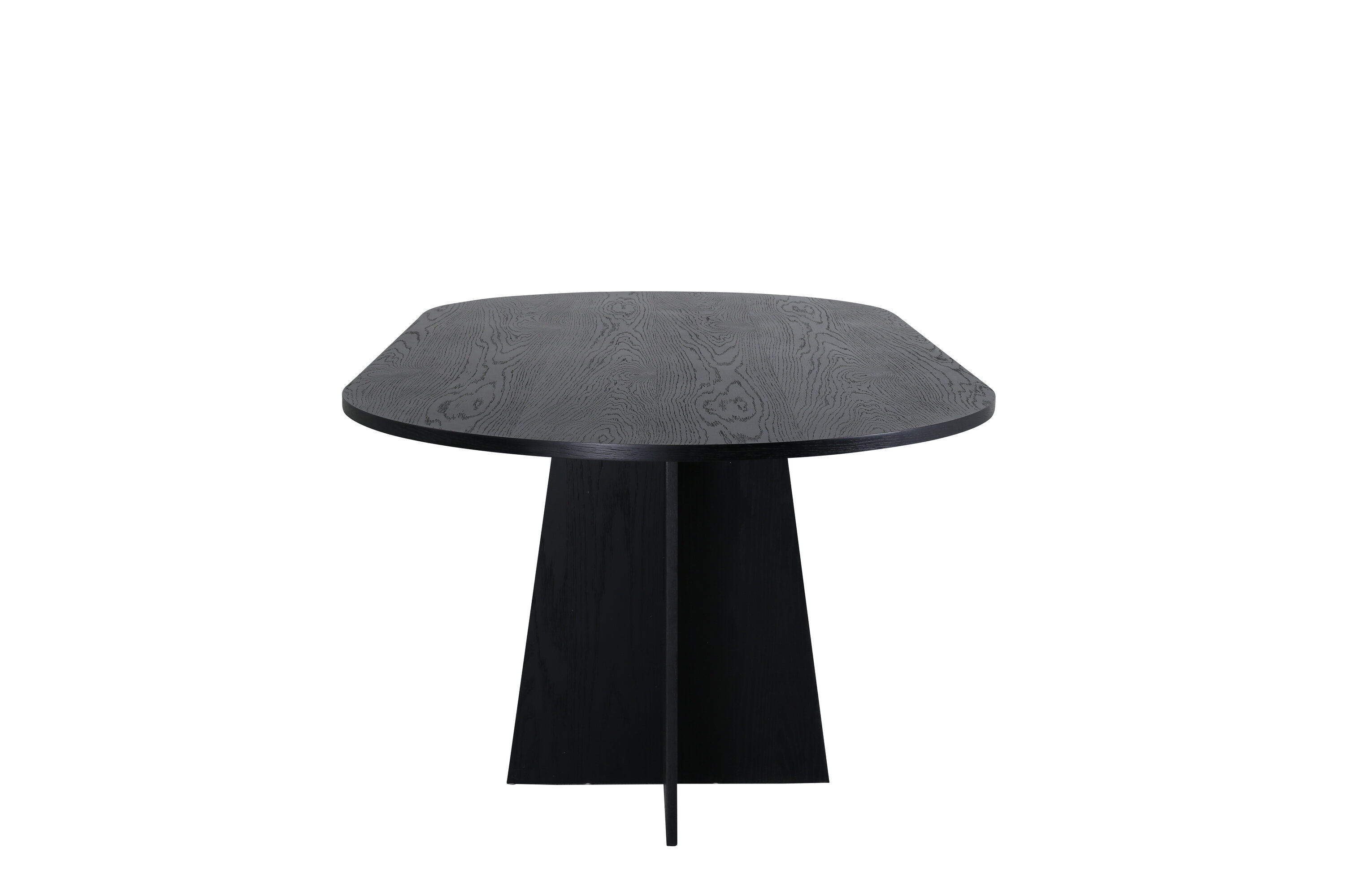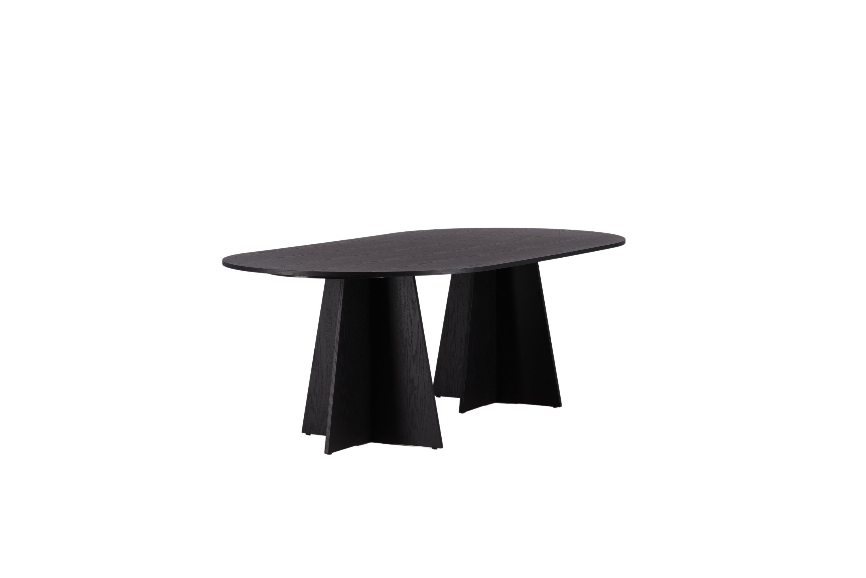 Statten Sie das Haus mit einem Esstisch aus, der beeindruckt! Bootcut hat ein einzigartiges Design mit einer ovalen Tischplatte aus schwarzem MDF mit Furnieren und einem eigenartigen Rahmen mit zwei kegelförmigen Beinen in offenem Design. Die dünne Tischplatte erzeugt einen minimalistischen Eindruck und bildet einen geschmackvollen Kontrast zum robusteren Rahmen. Kombinieren Sie mit ein paar bequemen Esszimmerstühlen und Sie erhalten eine komplette Essensgruppe, die im Laufe der Zeit steht!