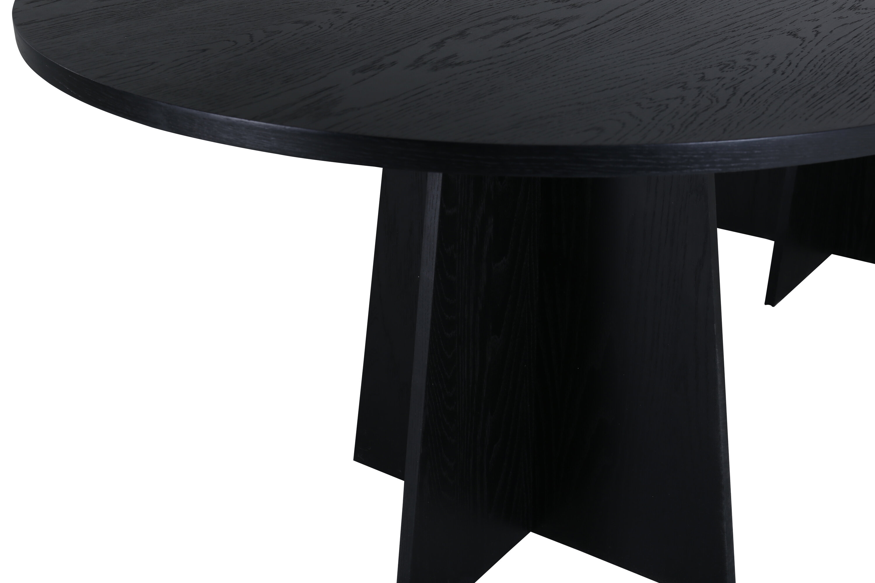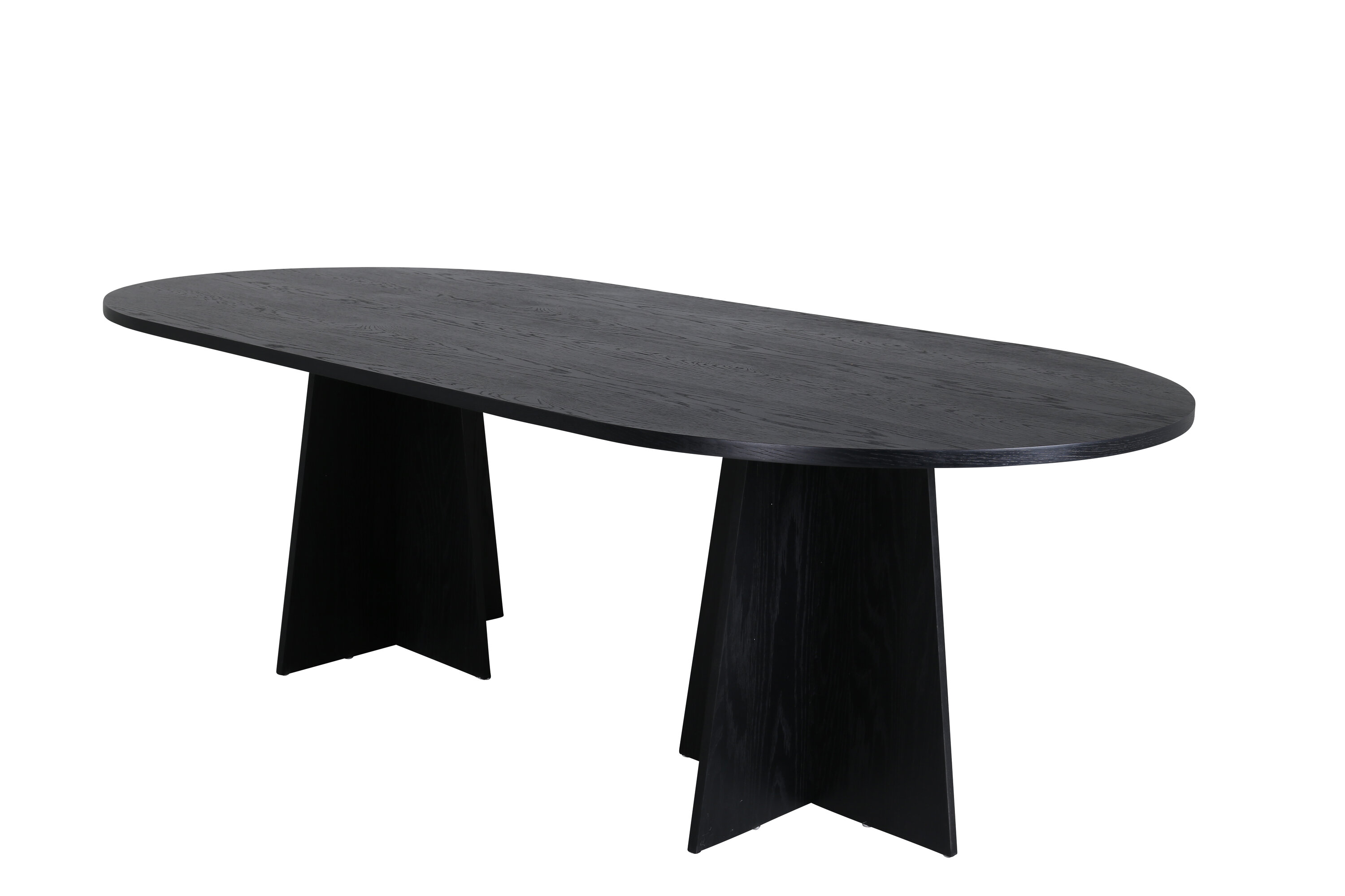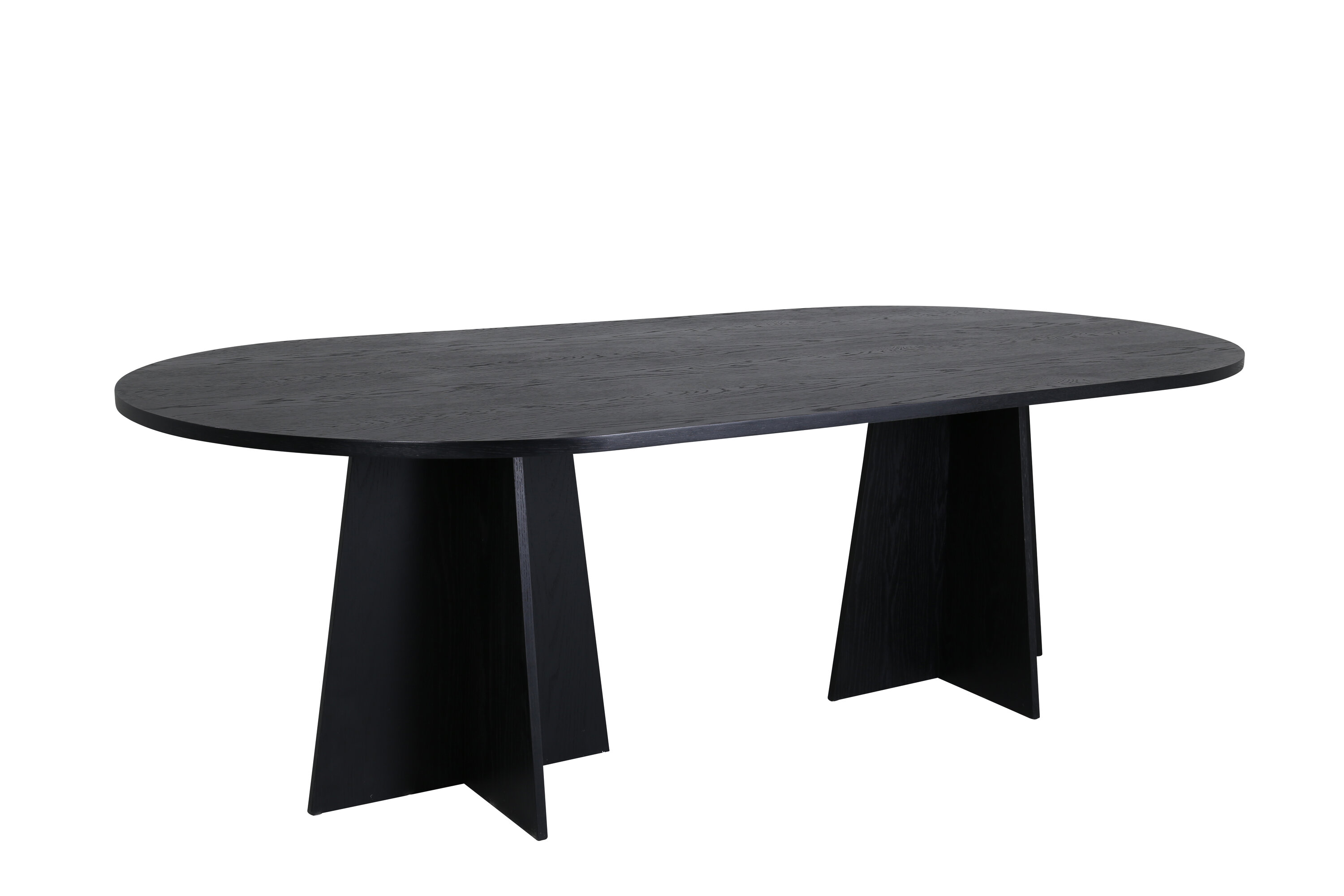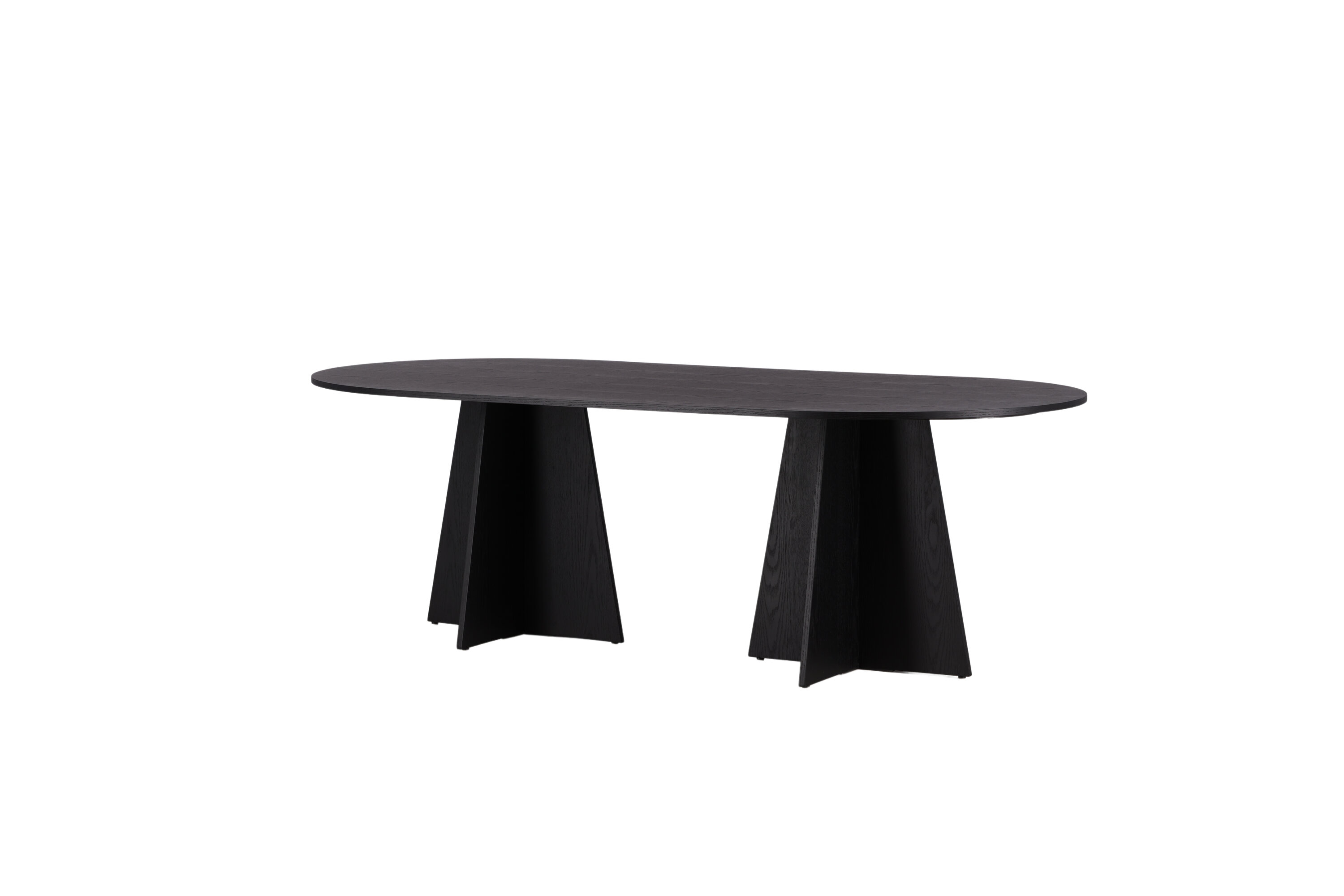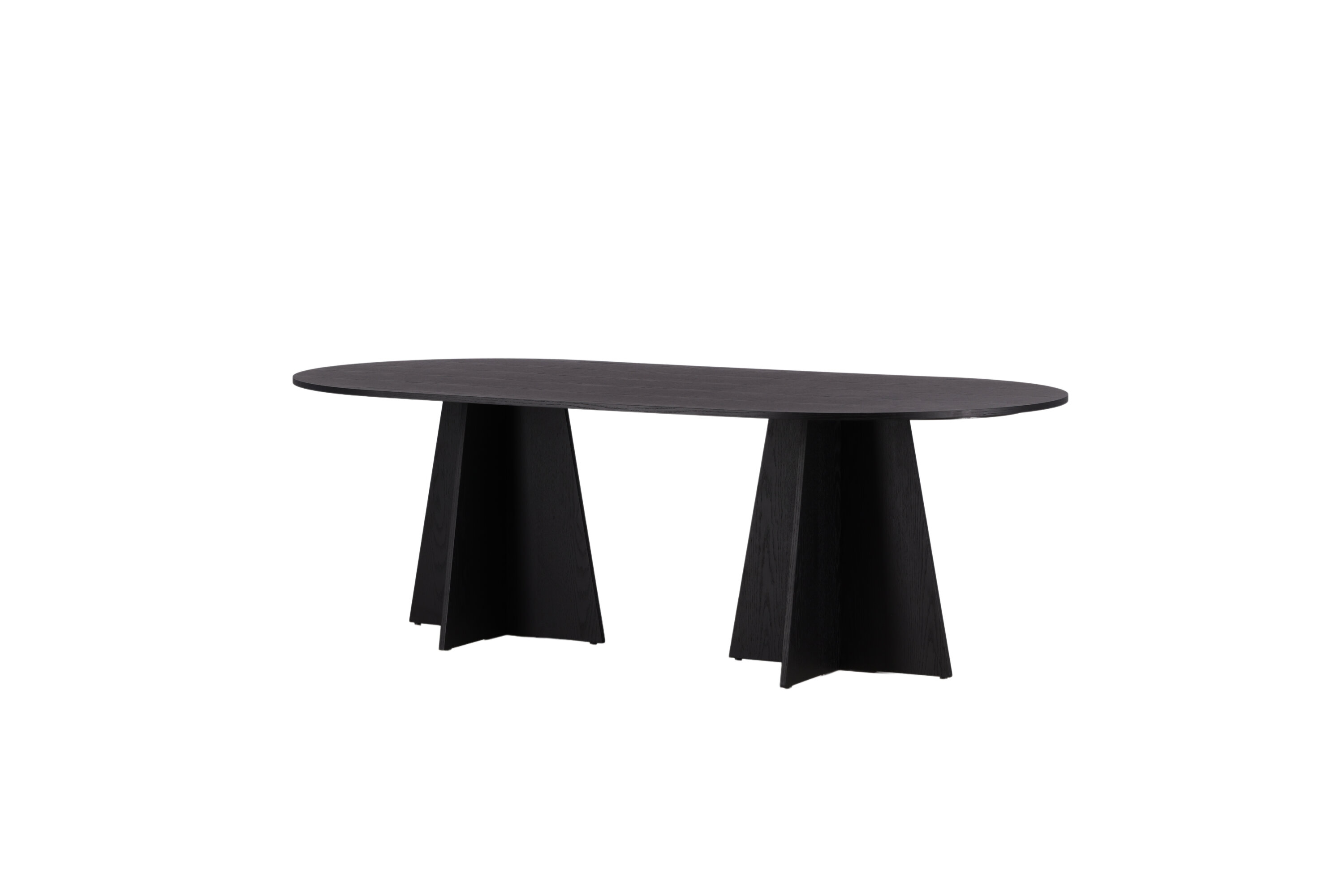 Statten Sie das Haus mit einem Esstisch aus, der beeindruckt! Bootcut hat ein einzigartiges Design mit einer ovalen Tischplatte aus schwarzem MDF mit Furnieren und einem eigenartigen Rahmen mit zwei kegelförmigen Beinen in offenem Design. Die dünne Tischplatte erzeugt einen minimalistischen Eindruck und bildet einen geschmackvollen Kontrast zum robusteren Rahmen. Kombinieren Sie mit ein paar bequemen Esszimmerstühlen und Sie erhalten eine komplette Essensgruppe, die im Laufe der Zeit steht!
