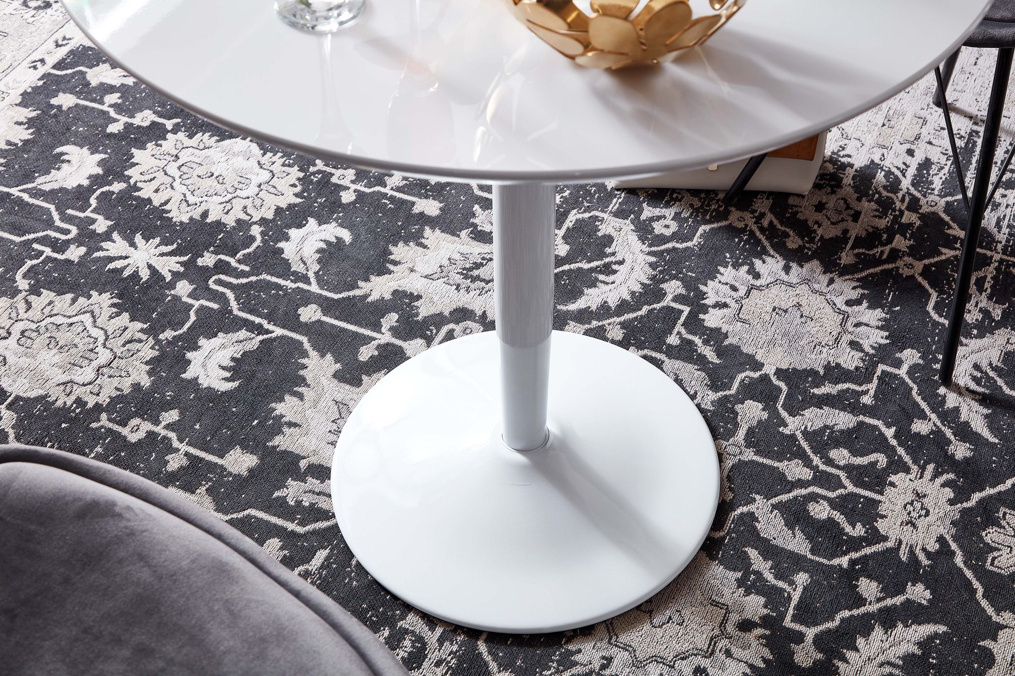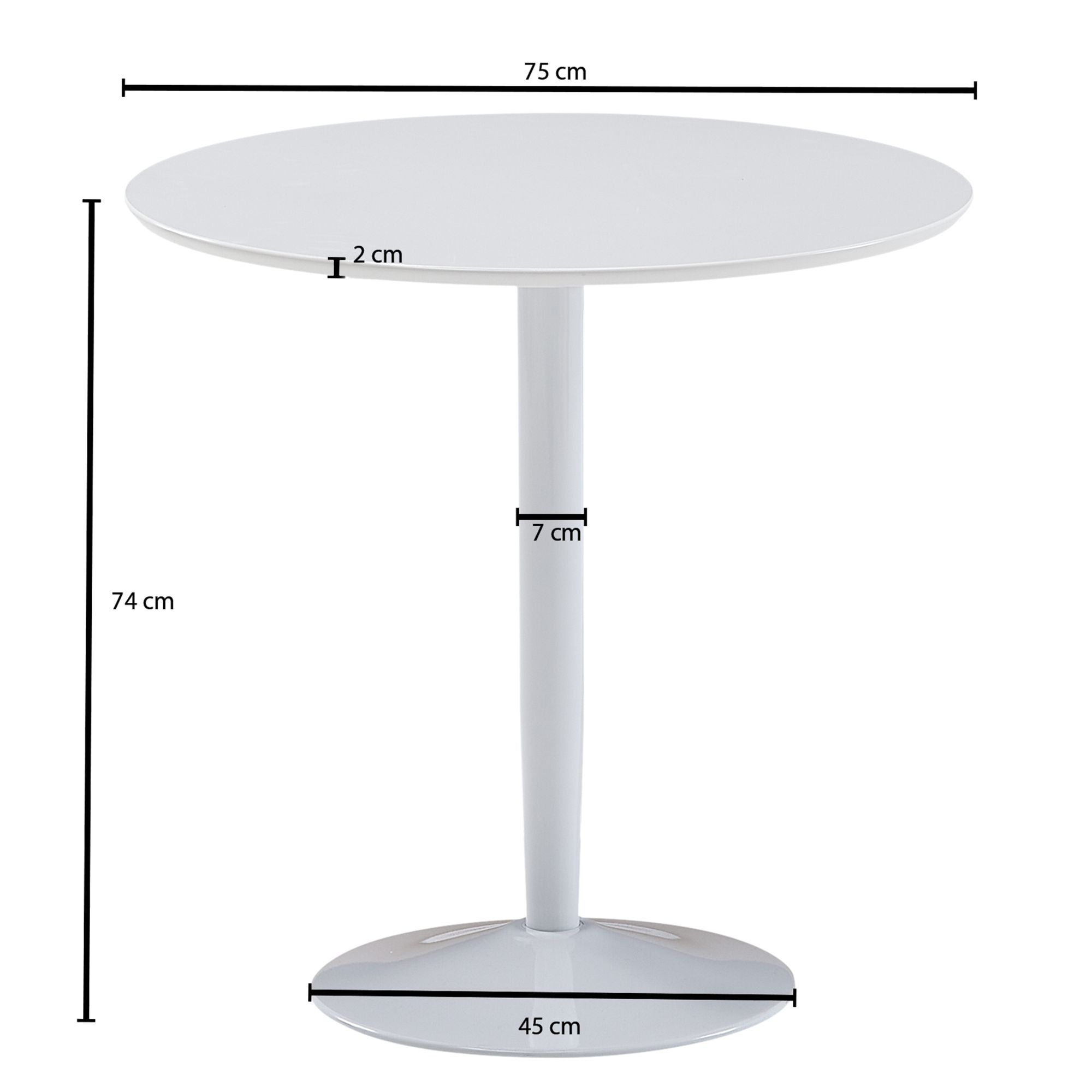 Runder Esstisch MDF Weiß Hochglanz | Weißes Metallgestell | Maße 75x75x74 cm