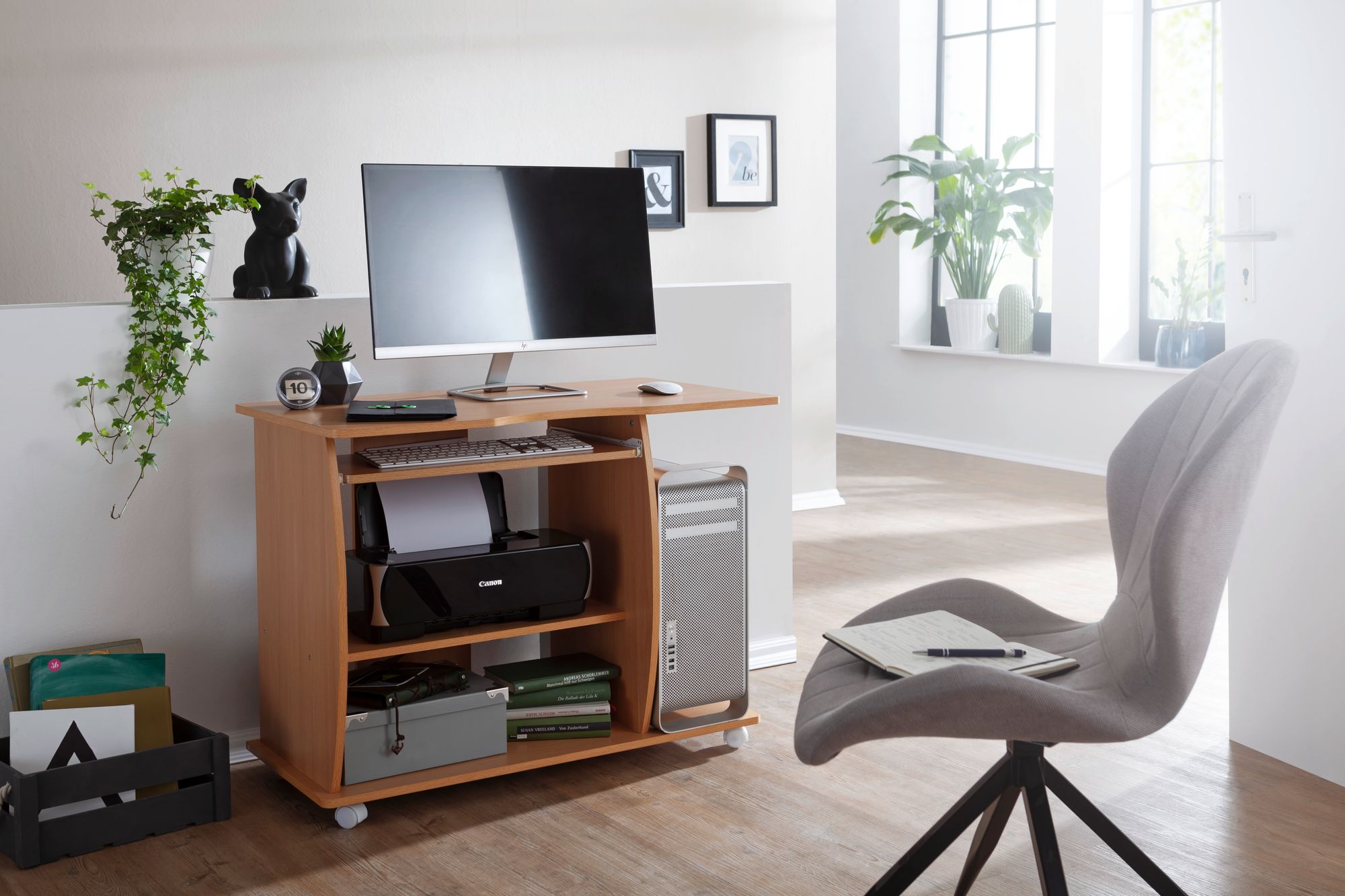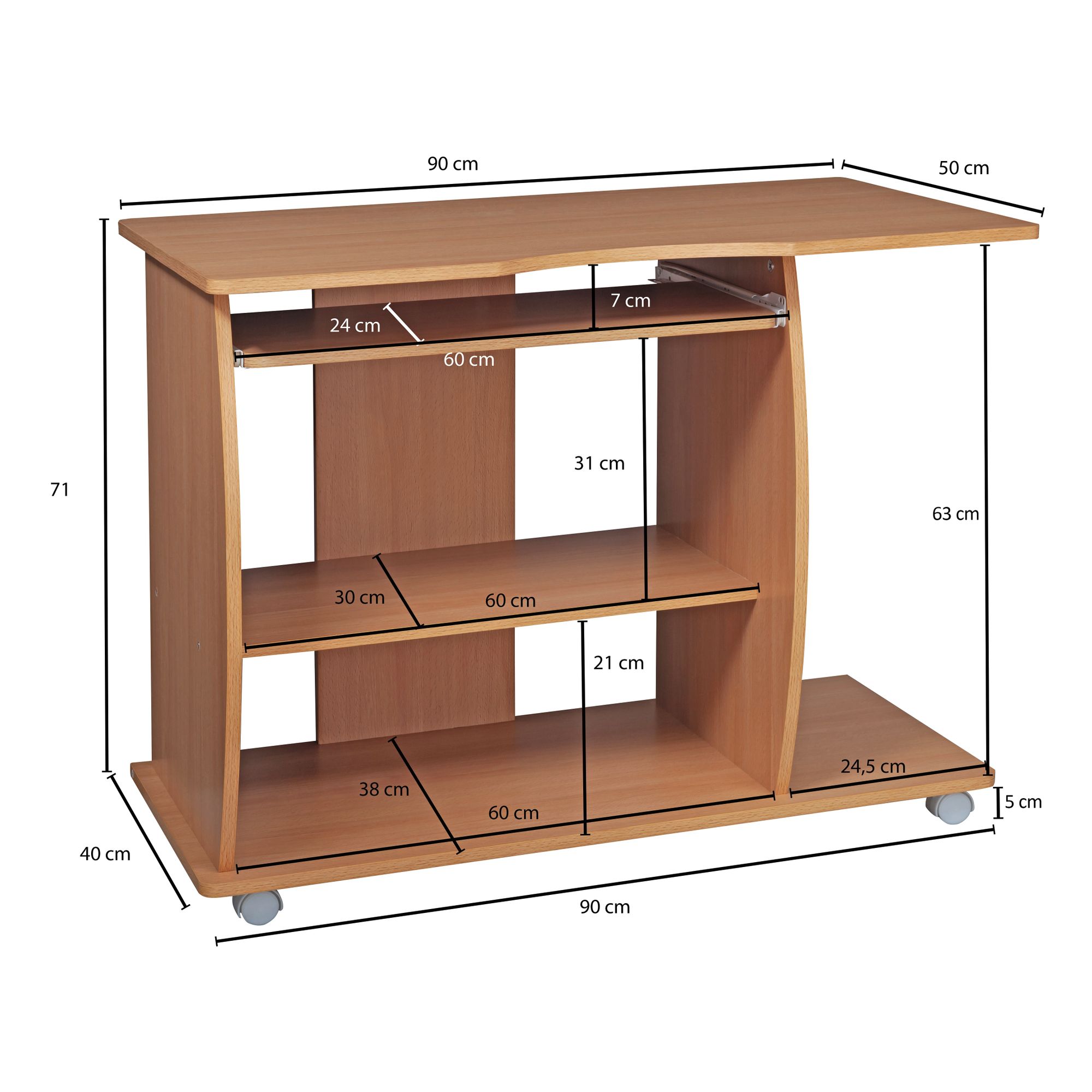 Produktinformationen "Computertisch GRASSE Buche 90 x 71 x 50 cm | Mit Tastaturauszug und feststellbaren Rollen"