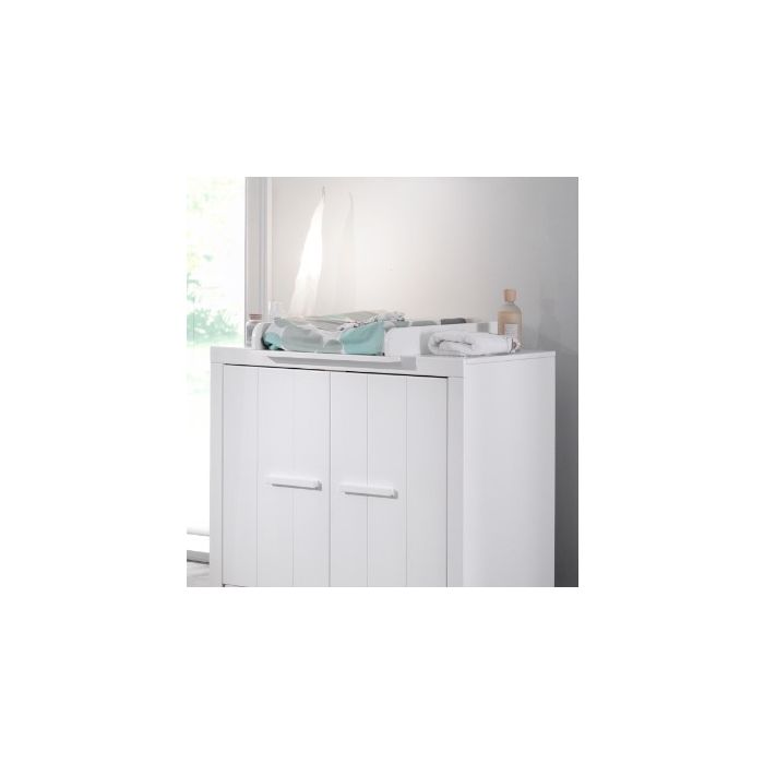 Passende Wickelauflage für die Kommode 2-trg., zum aufsetzen auf die Kommode Erik. Sie ist aus hochwertigem 18 mm starkem MDF und weiß lackiert. Die seitliche Umrandung schützt das Kind vor dem herunterrollen. Nach vorne ist die die Wickelauflage zur besseren Bedienbarkeit offen. Maße: B: 54 H: 10 T: 76 cm. Der Artikel ist zerlegt, zur einfachen Selbstmontage.